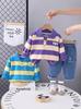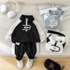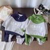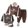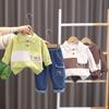 Traje de otoño para niño 2024, nuevo polo de solapa de estilo occidental a juego de colores para niños, ropa bonita de dos piezas para bebé