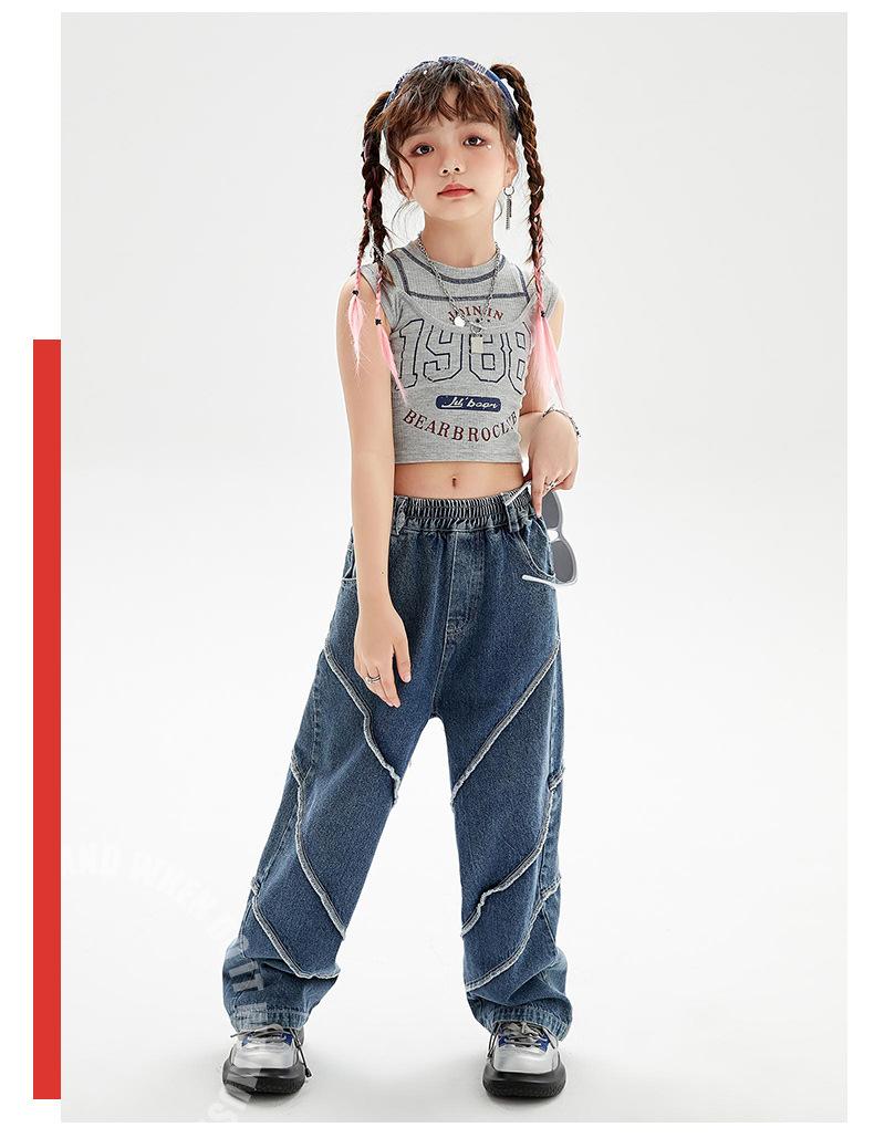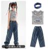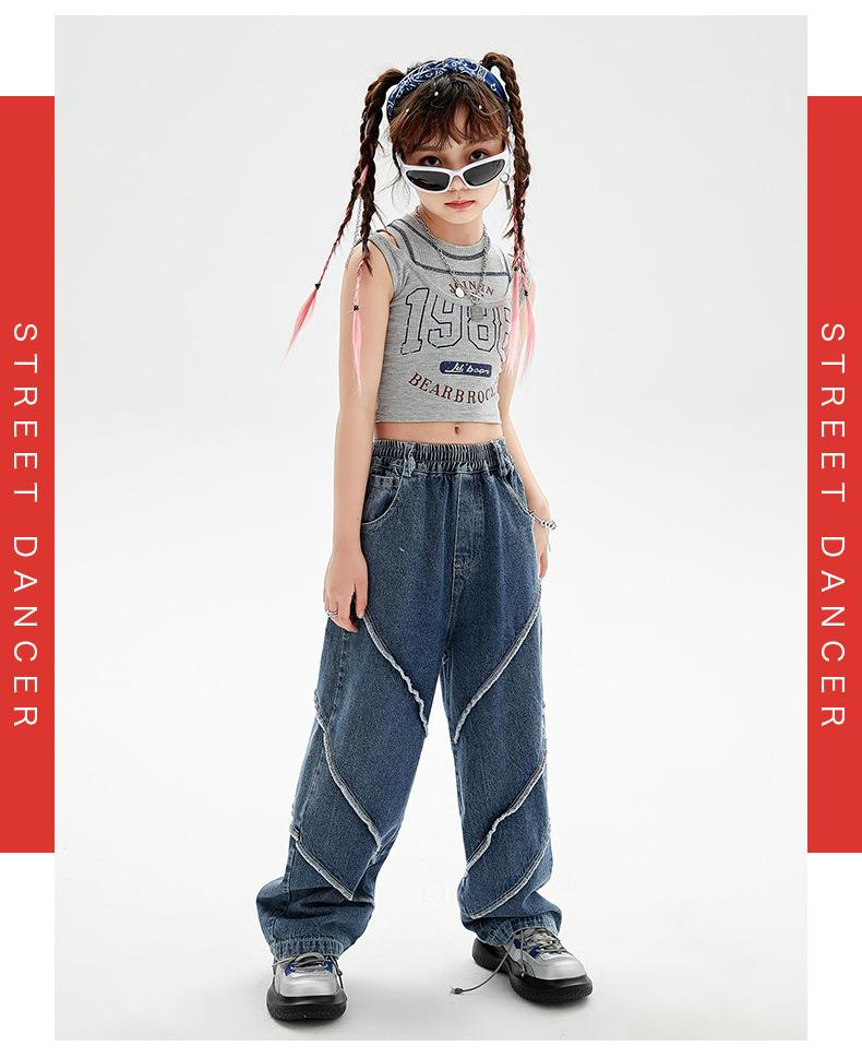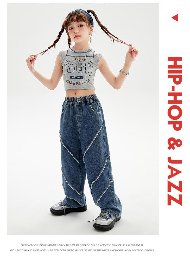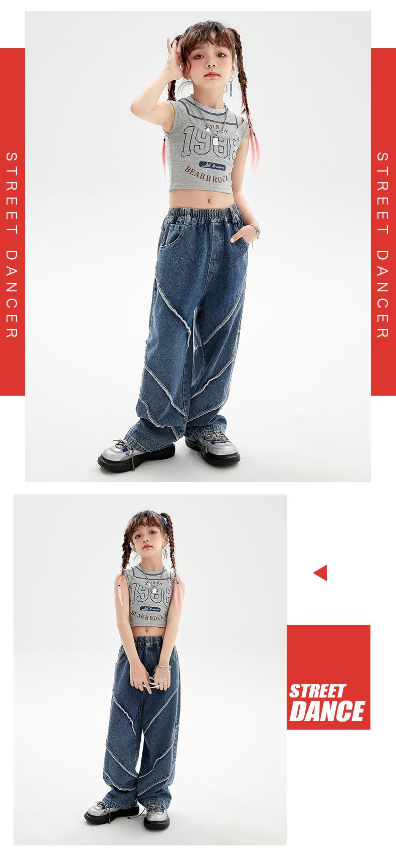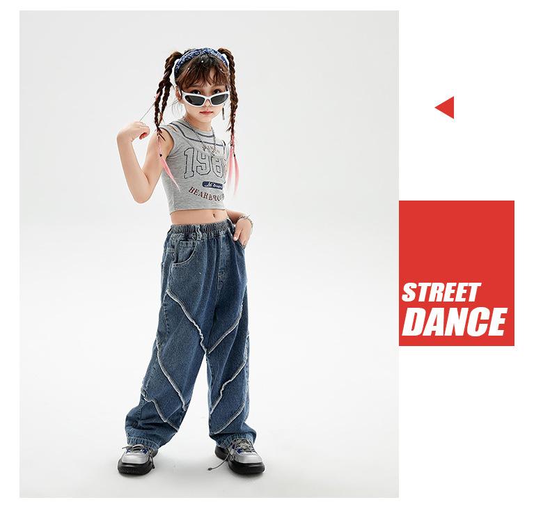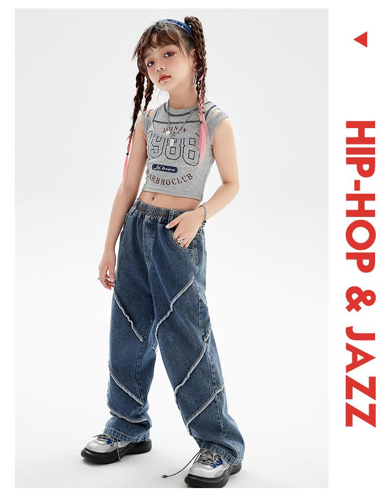 Traje de baile de jazz para niñas, pantalones vaqueros de baile callejero de hip hop para niños, traje de actuación de baile de hip hop para niñas, ropa de moda de verano
