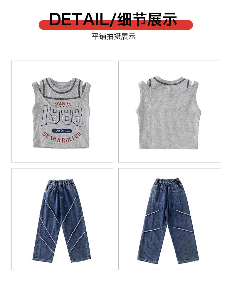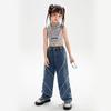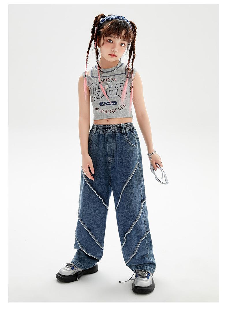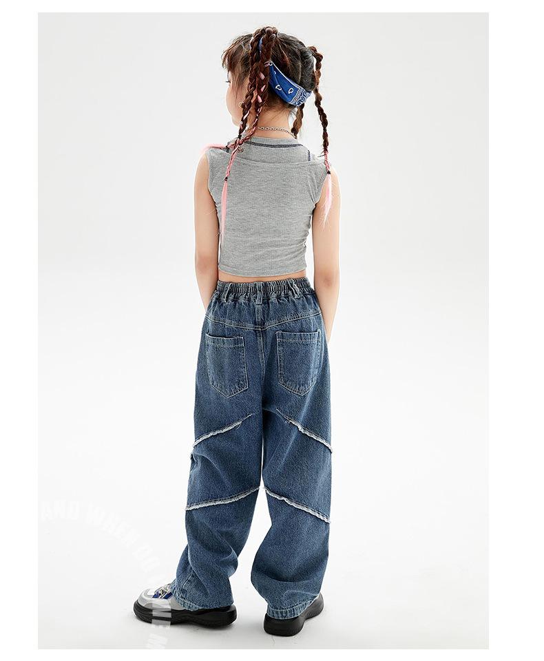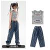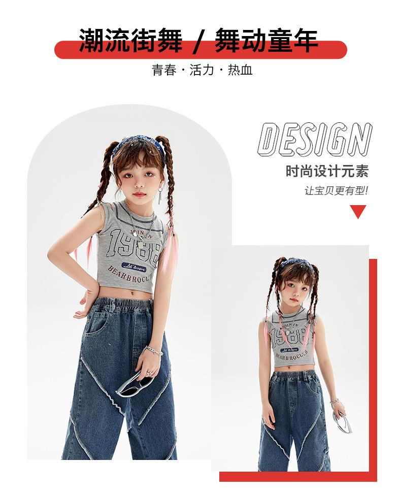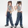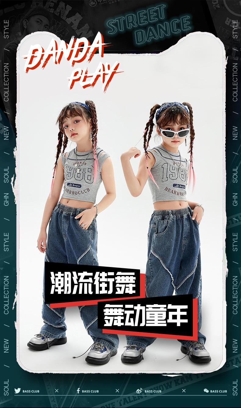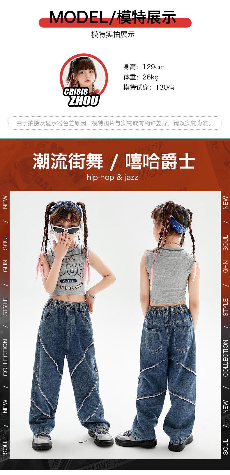 Traje de baile de jazz para niñas, pantalones vaqueros de baile callejero de hip hop para niños, traje de actuación de baile de hip hop para niñas, ropa de moda de verano