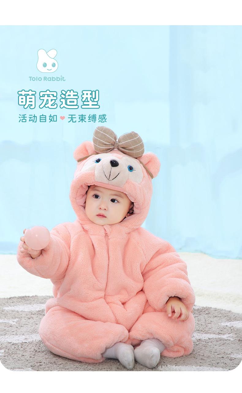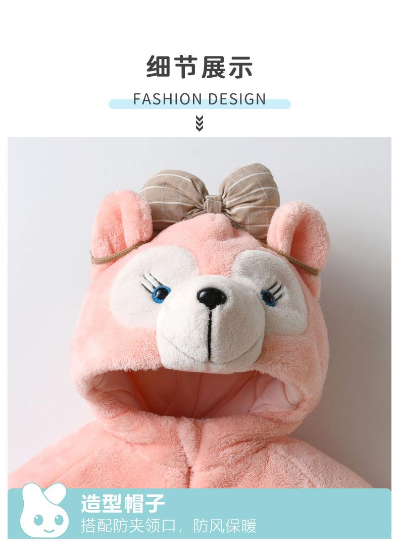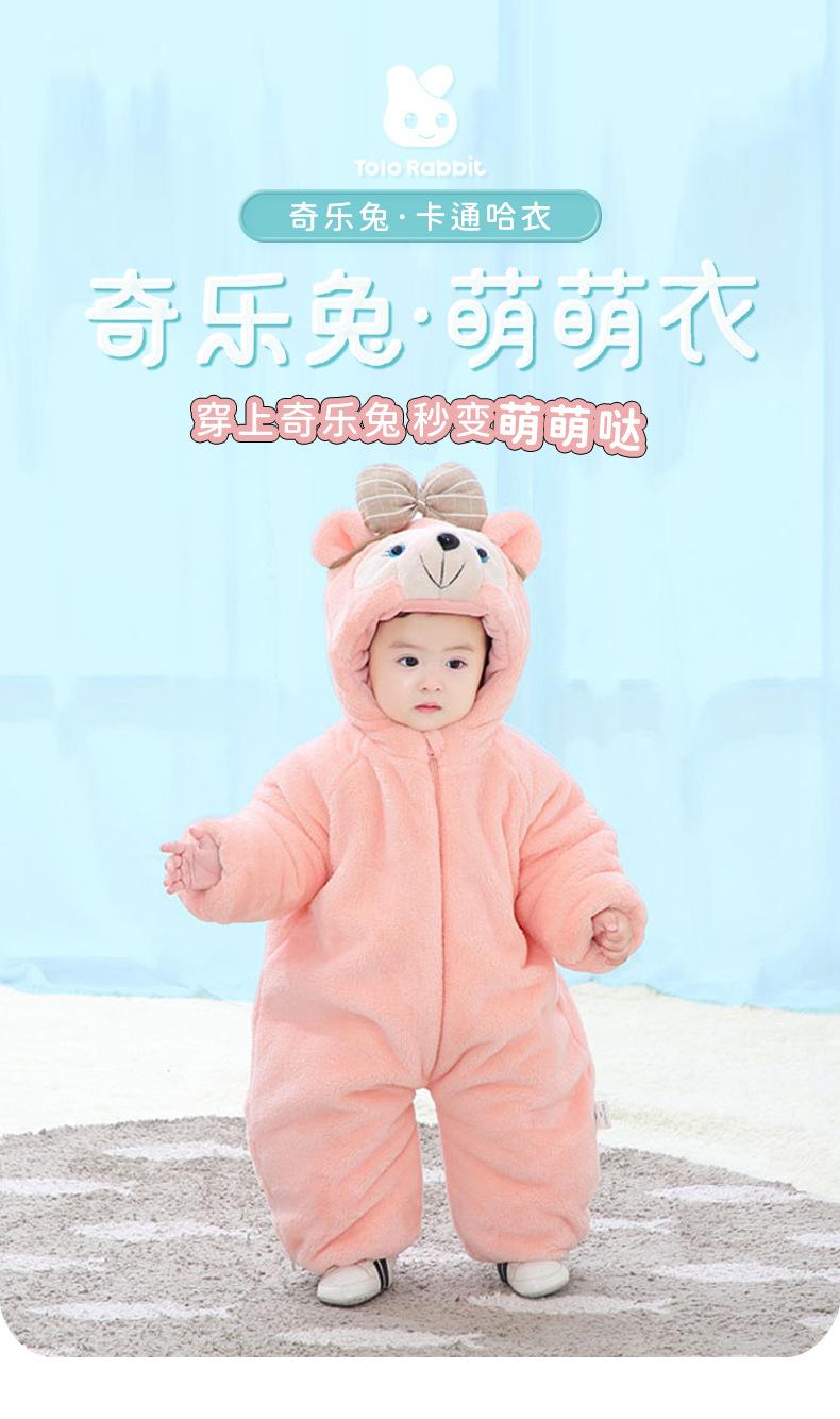 Qilutu invierno nuevo bebé niña rosa lindo oso suelto doble cremallera mameluco acolchado de algodón