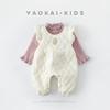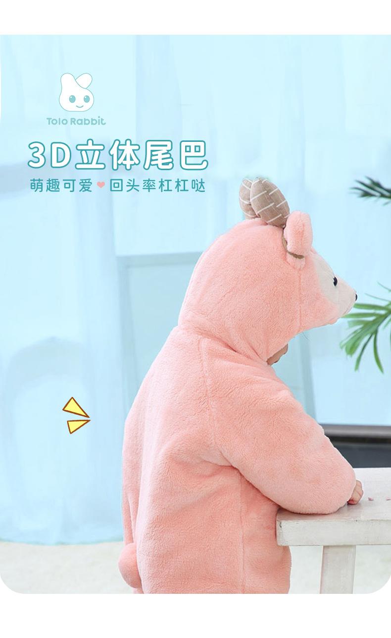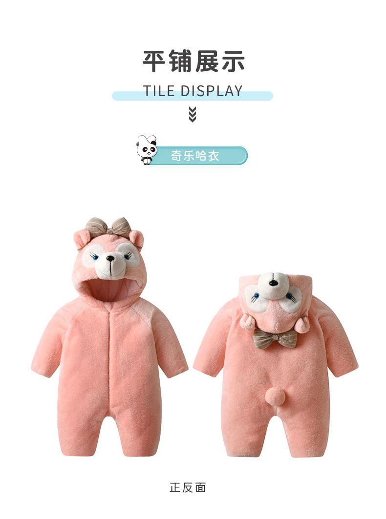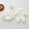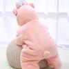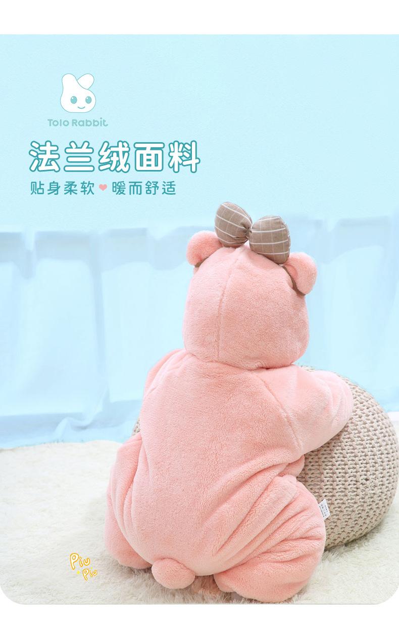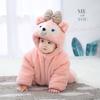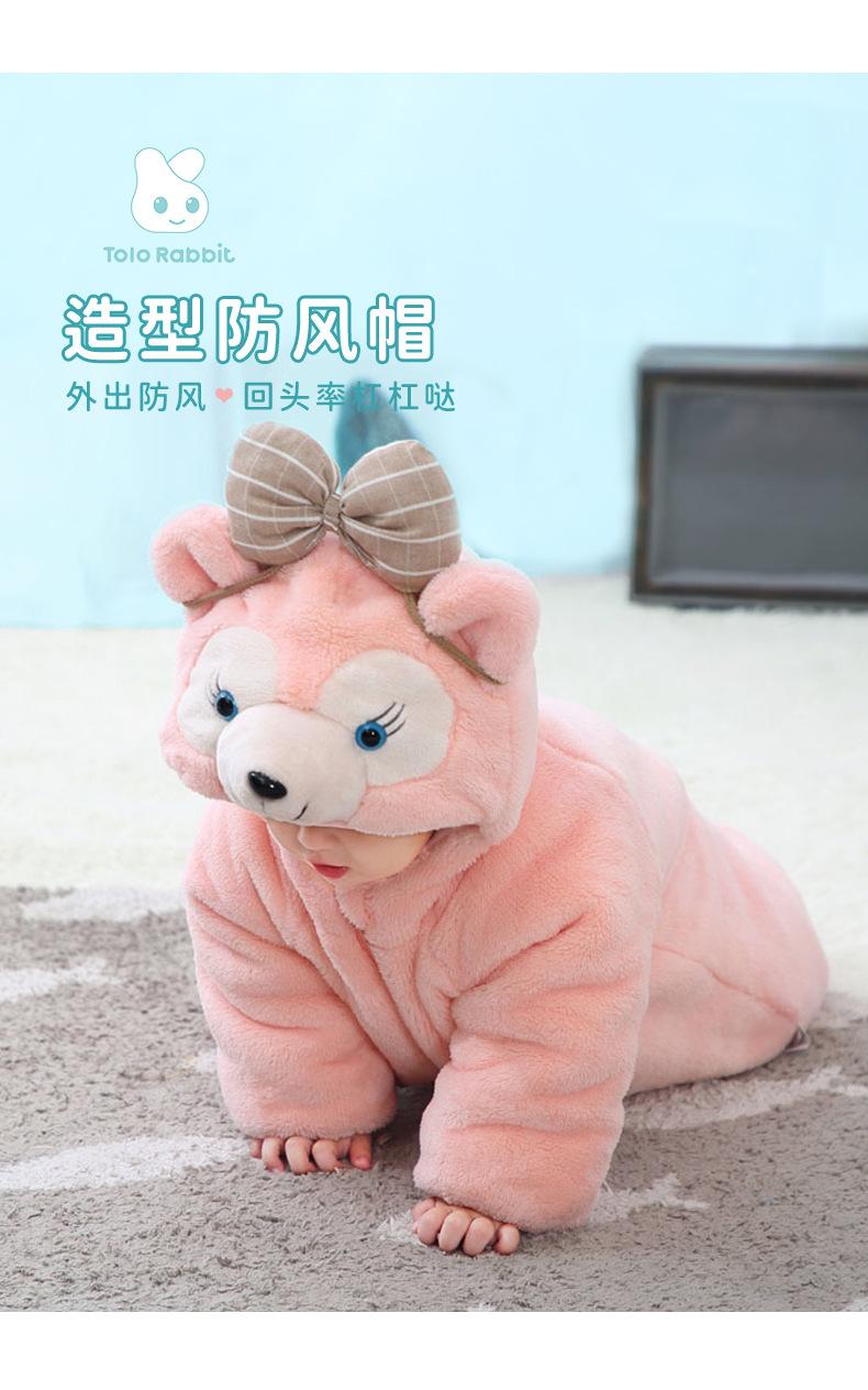 Qilutu invierno nuevo bebé niña rosa lindo oso suelto doble cremallera mameluco acolchado de algodón