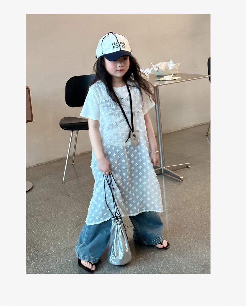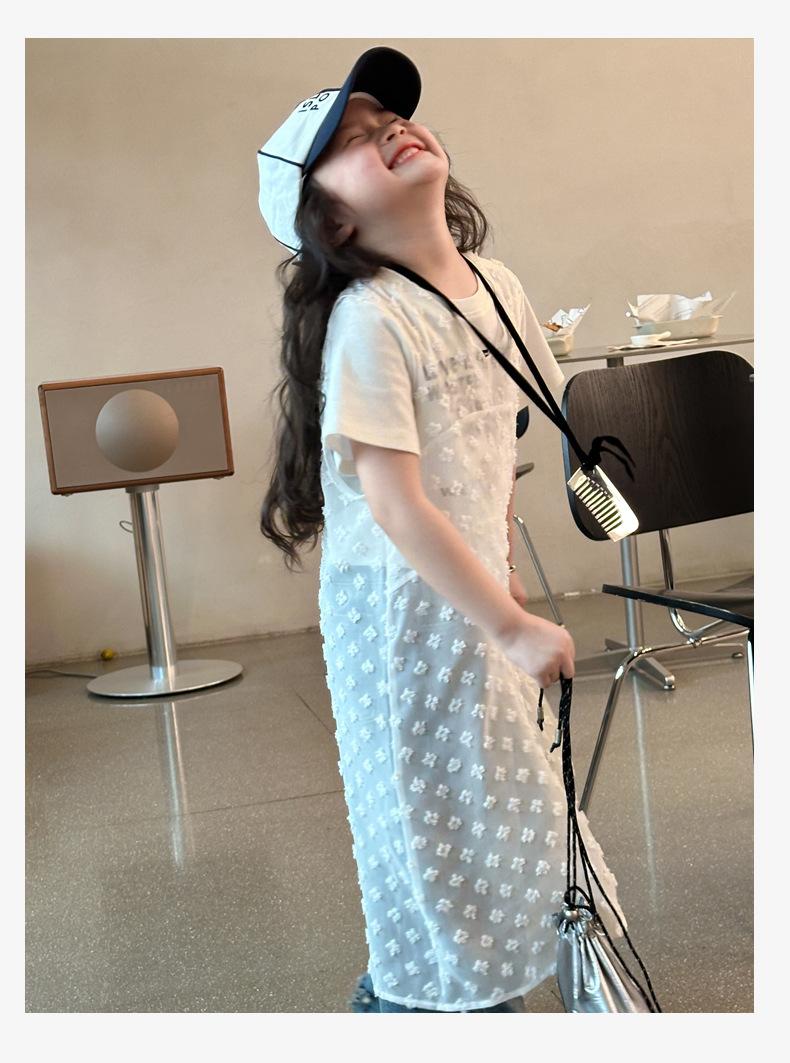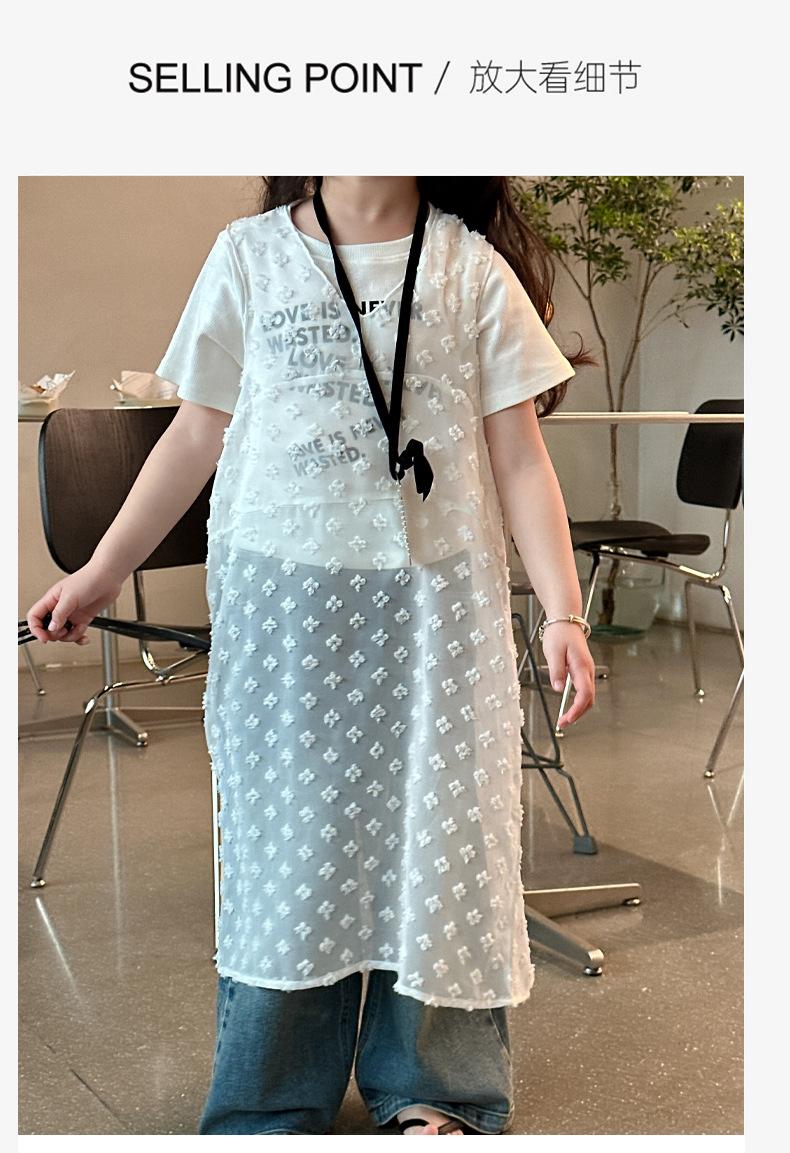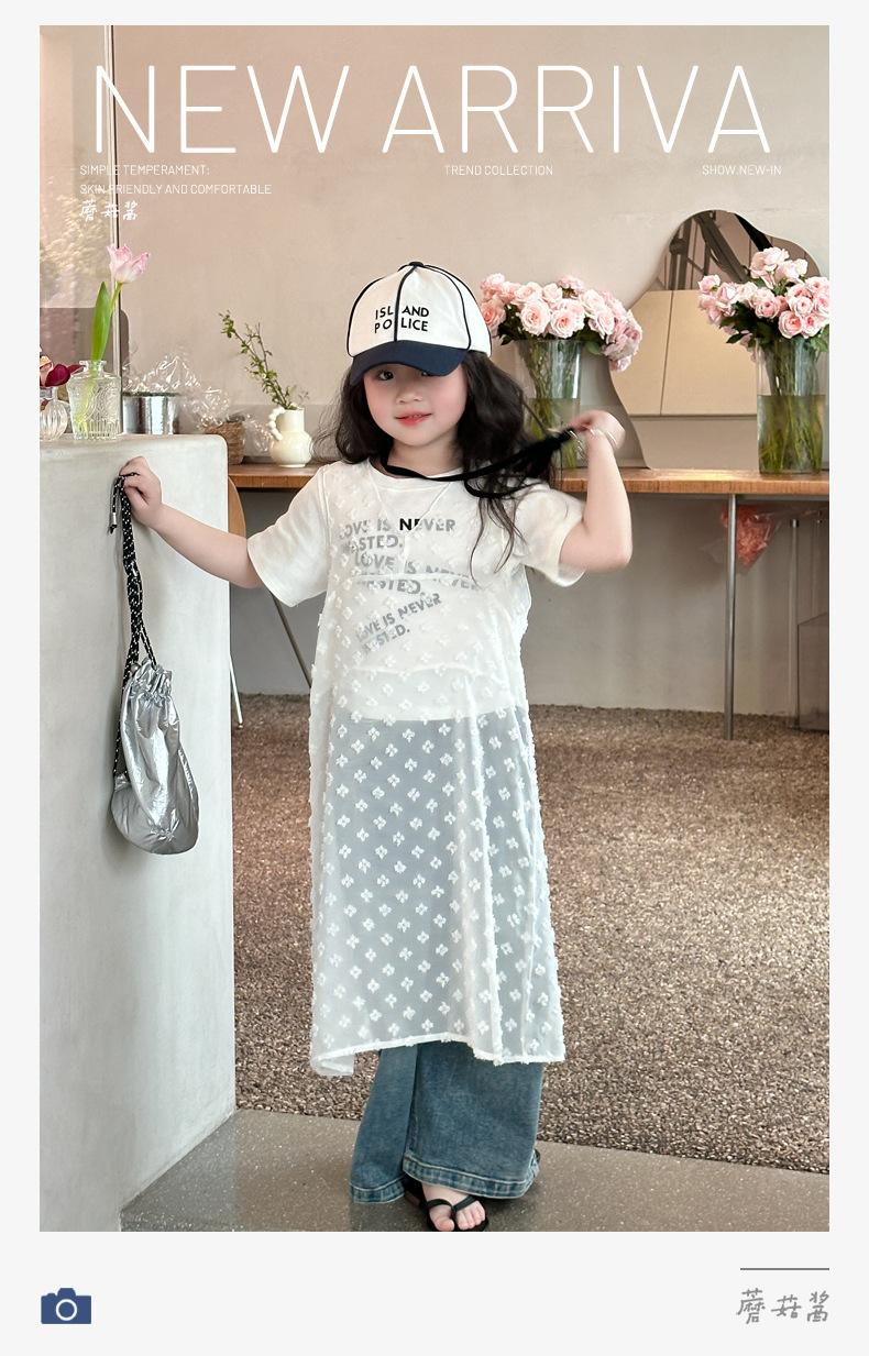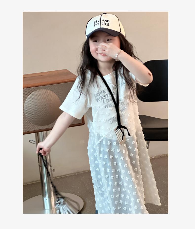 Vestido de Manga Corta para Niñas 2025 Verano Nuevo Estilo Vestido de Princesa Estilo Coreano para Niños Medianos y Grandes Vestido Delgado de Gasa