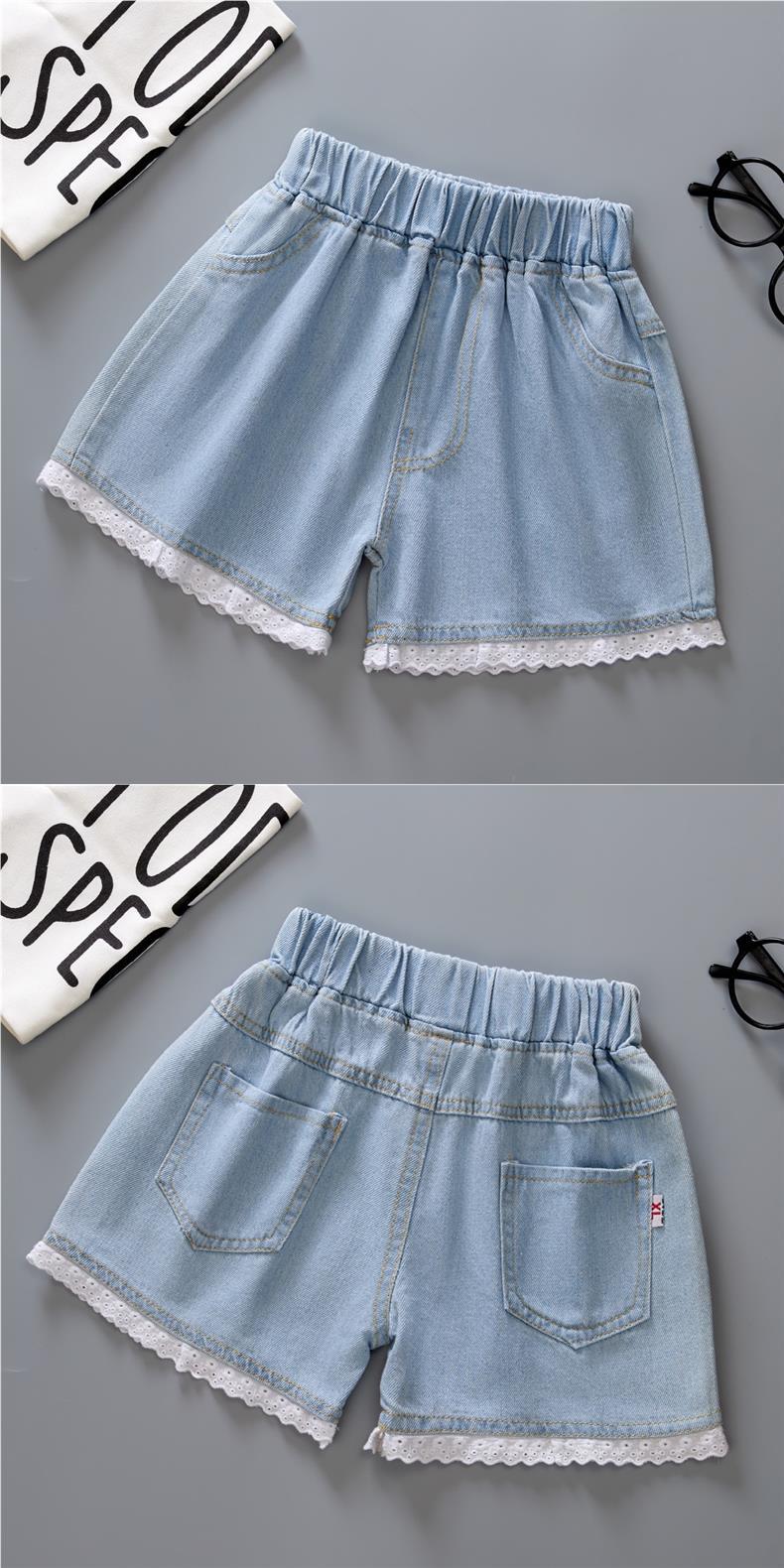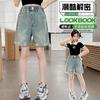 Nuevo Estilo Verano 2025 para Niñas Estilo Occidental Ropa Exterior Shorts Casual para Niños Medianos y Grandes Pantalones Cortos de Mezclilla Holgados para Niñas
