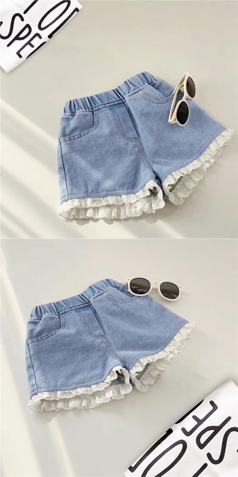 Lace shorts, Patch love shorts, Orange floral shorts, Big butterfly shorts, Blue three-button shorts, Blue bow...