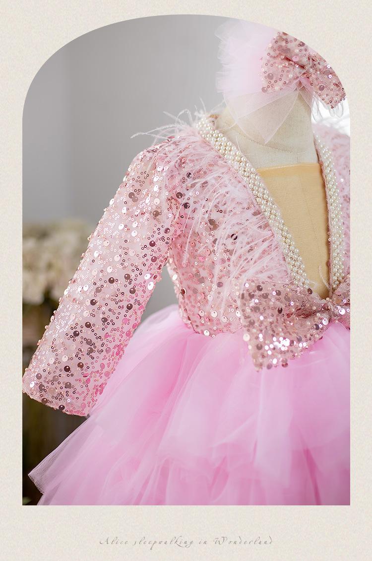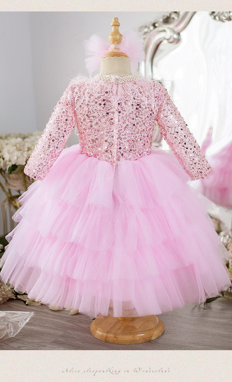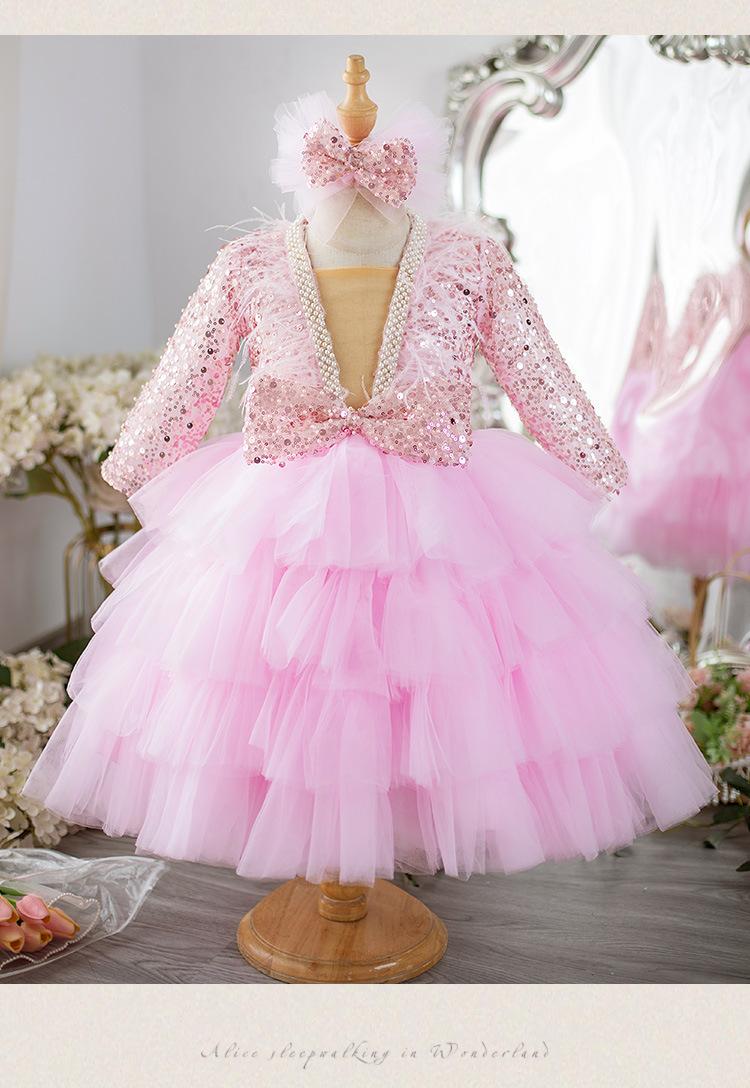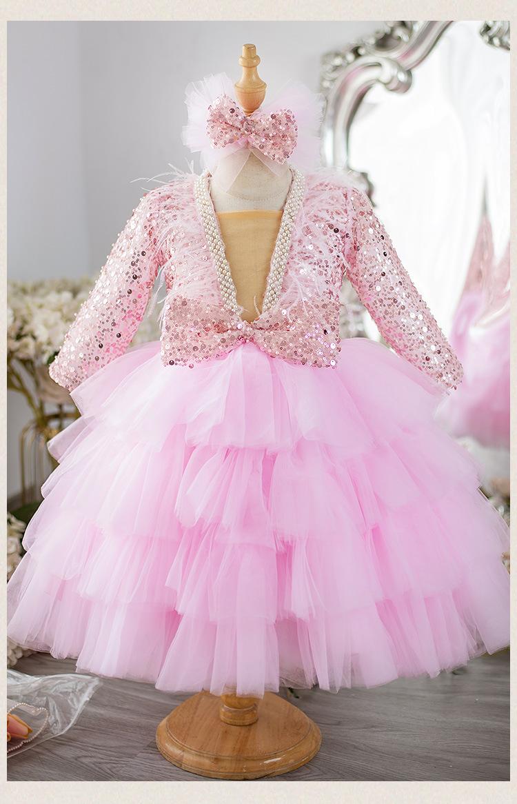 Vestido de princesa para niñas, vestido con cuello en V, vestido de piano para anfitriona, vestido de malla con lentejuelas para bebé niña de las flores