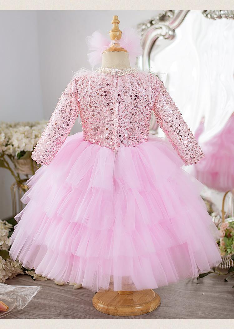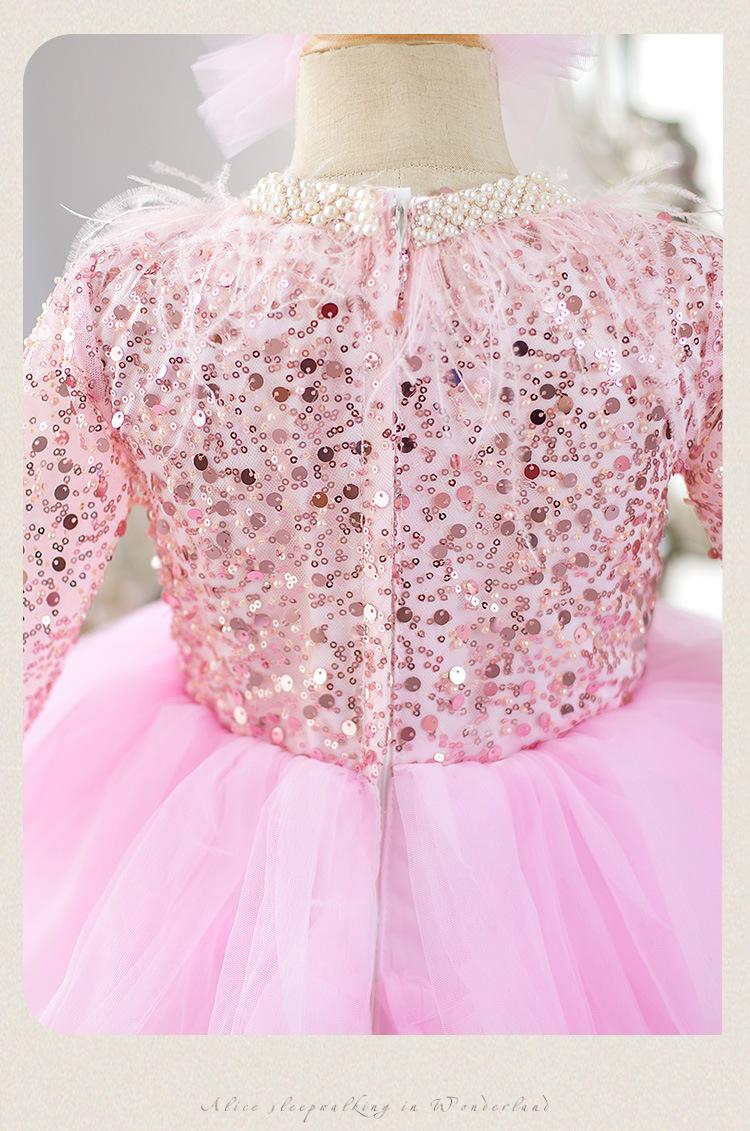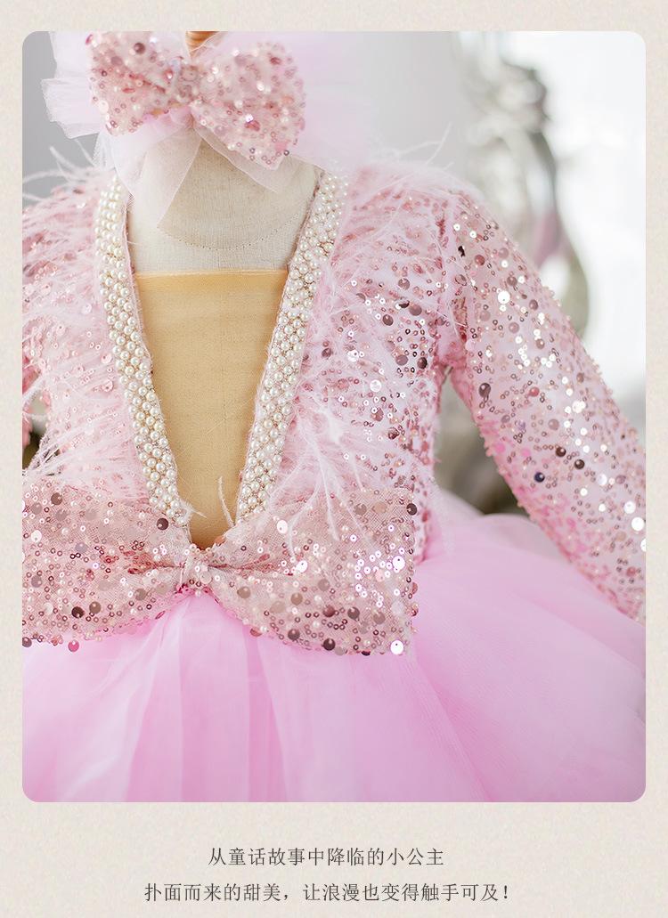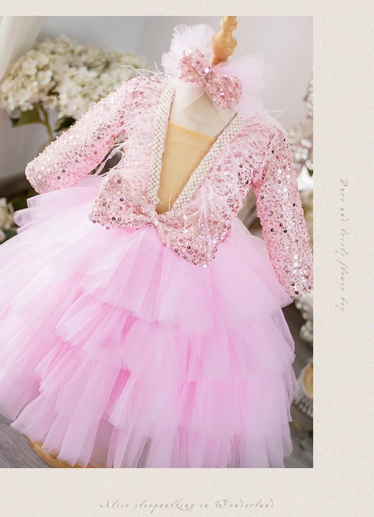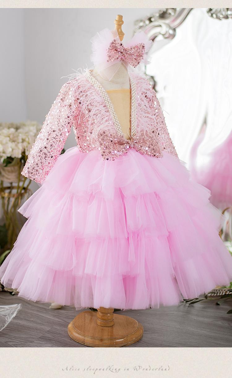 Vestido de princesa para niñas, vestido con cuello en V, vestido de piano para anfitriona, vestido de malla con lentejuelas para bebé niña de las flores