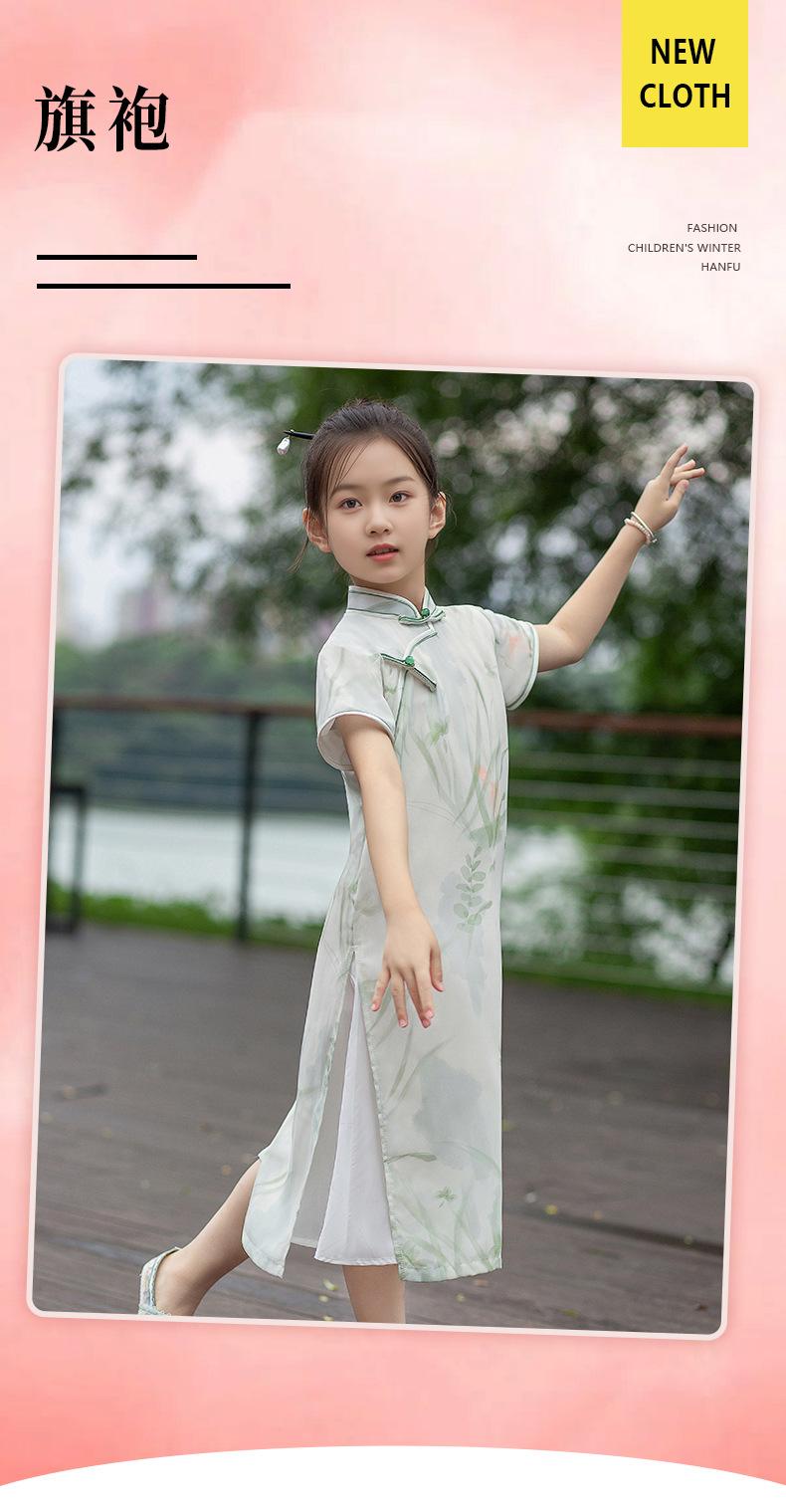 Cheongsam fino de verano para niñas, estilo chino 2024, nuevo vestido Hanfu, ropa de actuación infantil antigua mejorada