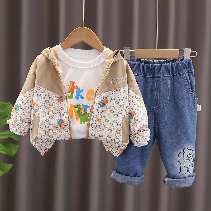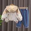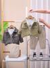 Traje para niño Primavera y Otoño 2024 Nuevo Otoño Abrigo de Doble Capa Bebé de un año 2 Bebé 3 Manga Larga Conjunto de Tres Piezas para Cabello