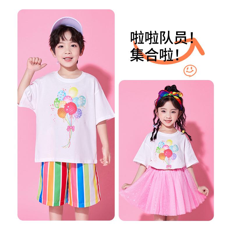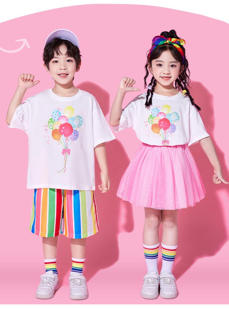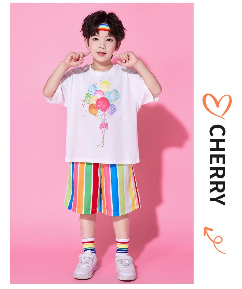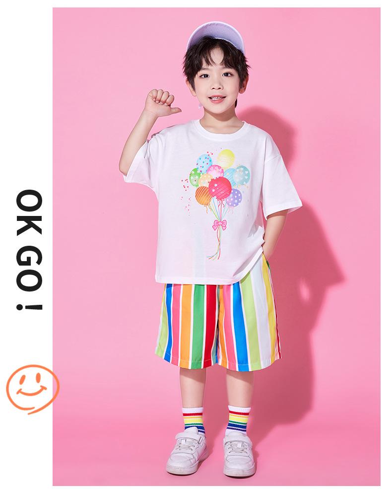 763 color balloon white short sleeves + 776 color striped shorts, 763 color balloon white short sleeves + 776 ...