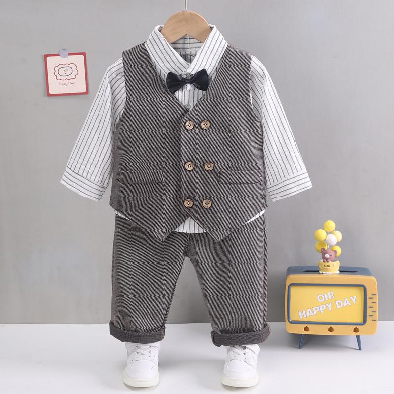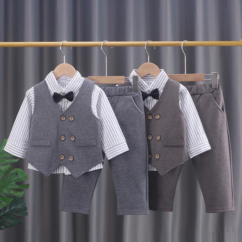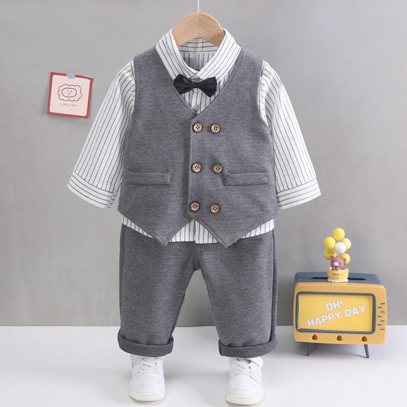Traje de otoño para niño 2023, nueva ropa de bebé, traje cruzado de primavera y otoño para niño, conjunto de tres piezas