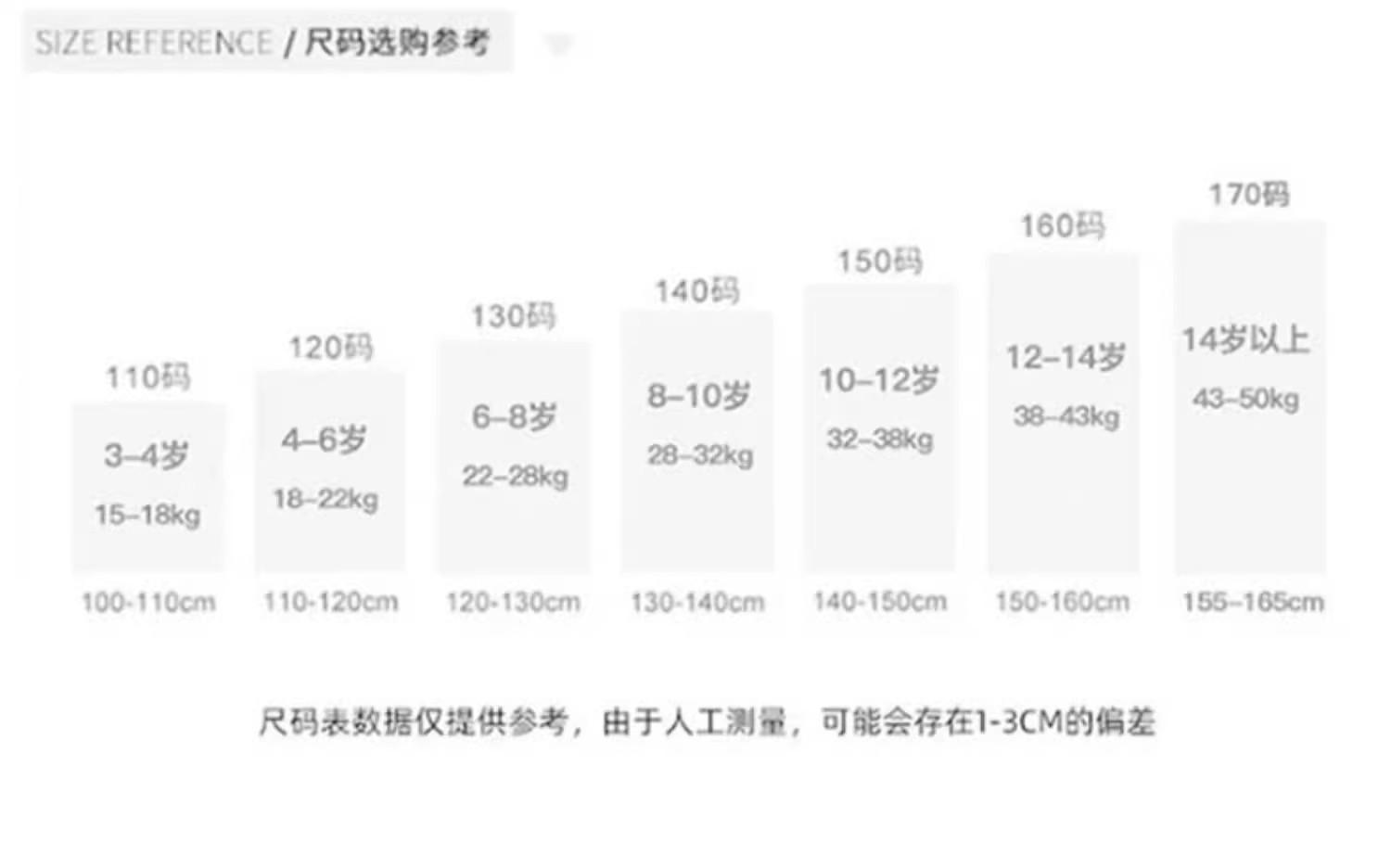 100cm, 110cm, 120cm, 130cm, 140cm, 150cm, 160cm