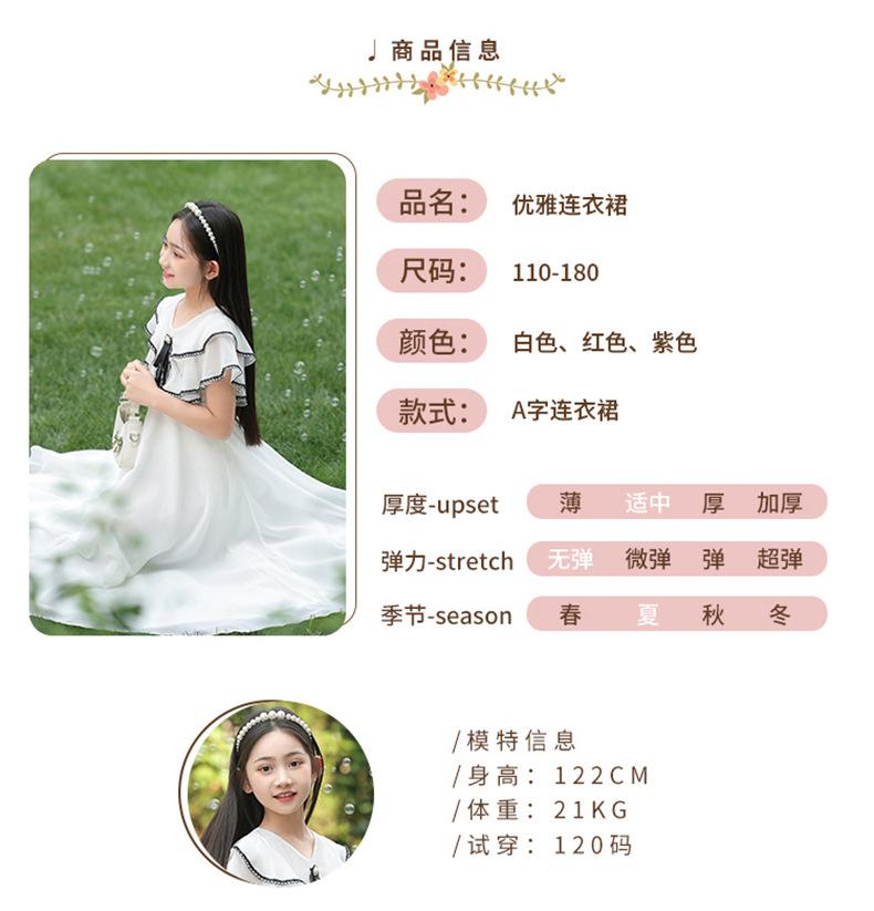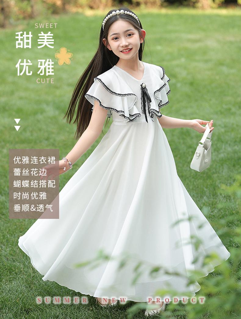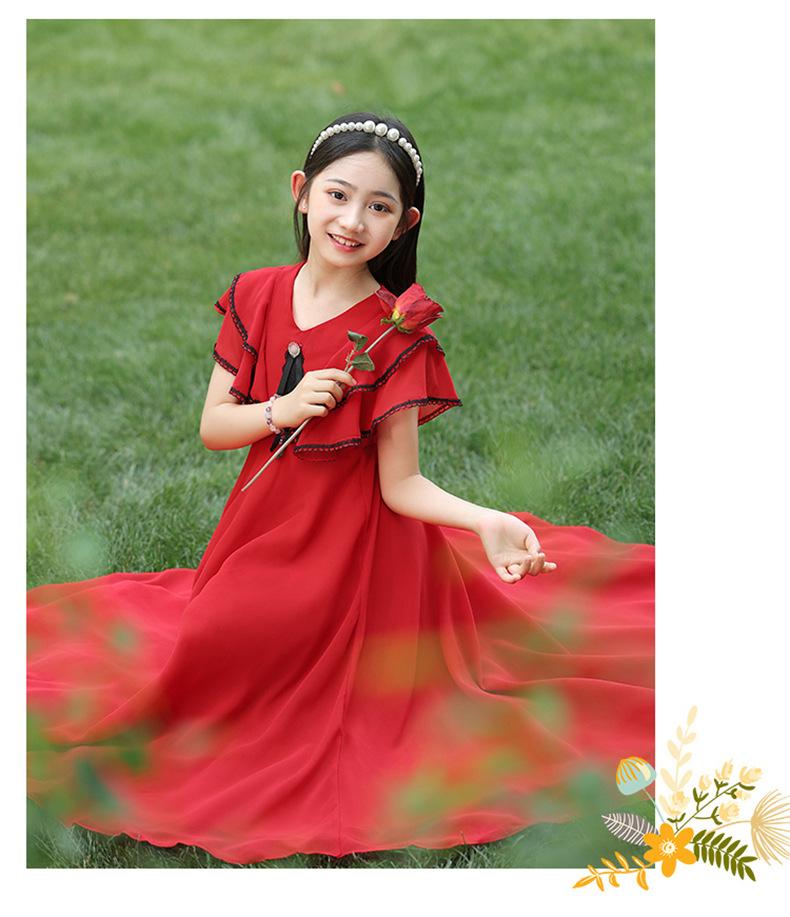 Vestido de Playa para Niña/Niño Grande Vestido Largo de Princesa Vestido de Verano Nuevo Estilo Coreano para Niño Grande Falda Infantil Estilo Occidental