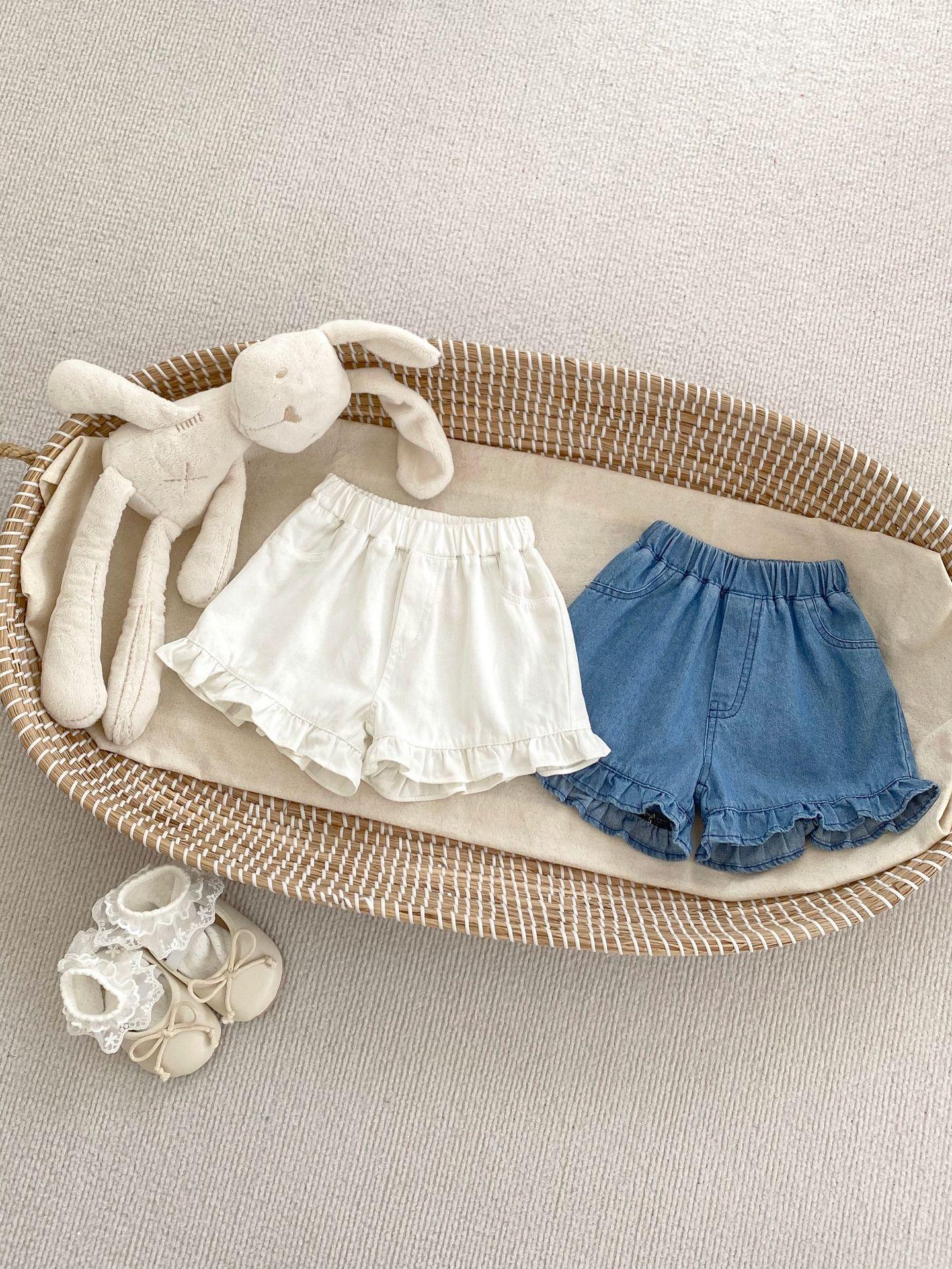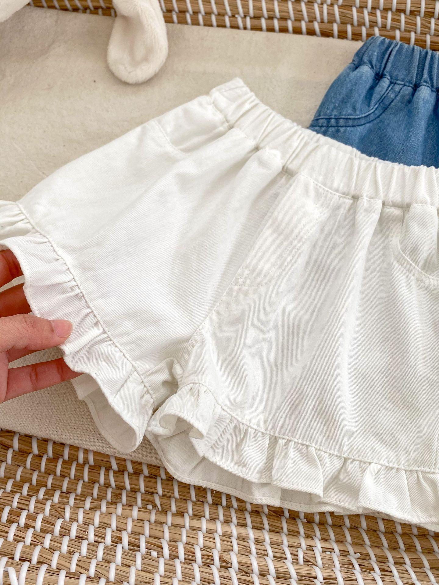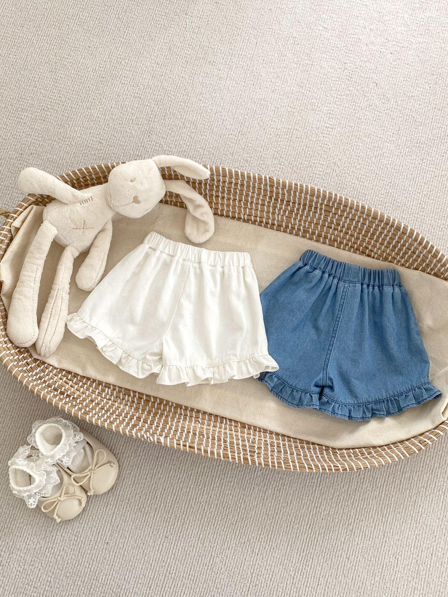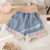 Shorts de mezclilla con encaje para bebé niña 2024 Nuevo Ropa de verano para bebé Combinación con todo Niños 1-3 años Estilo occidental Shorts delgados