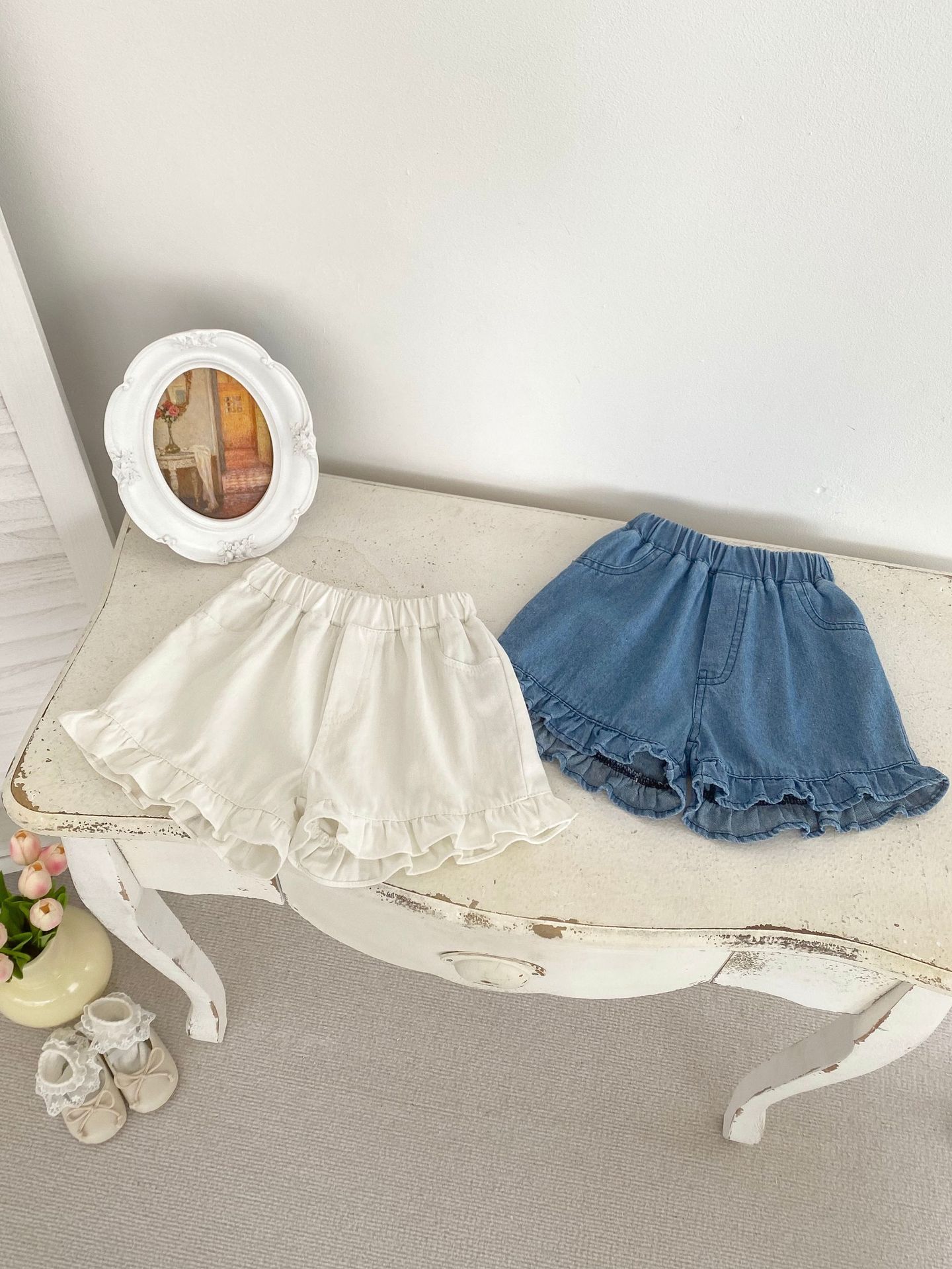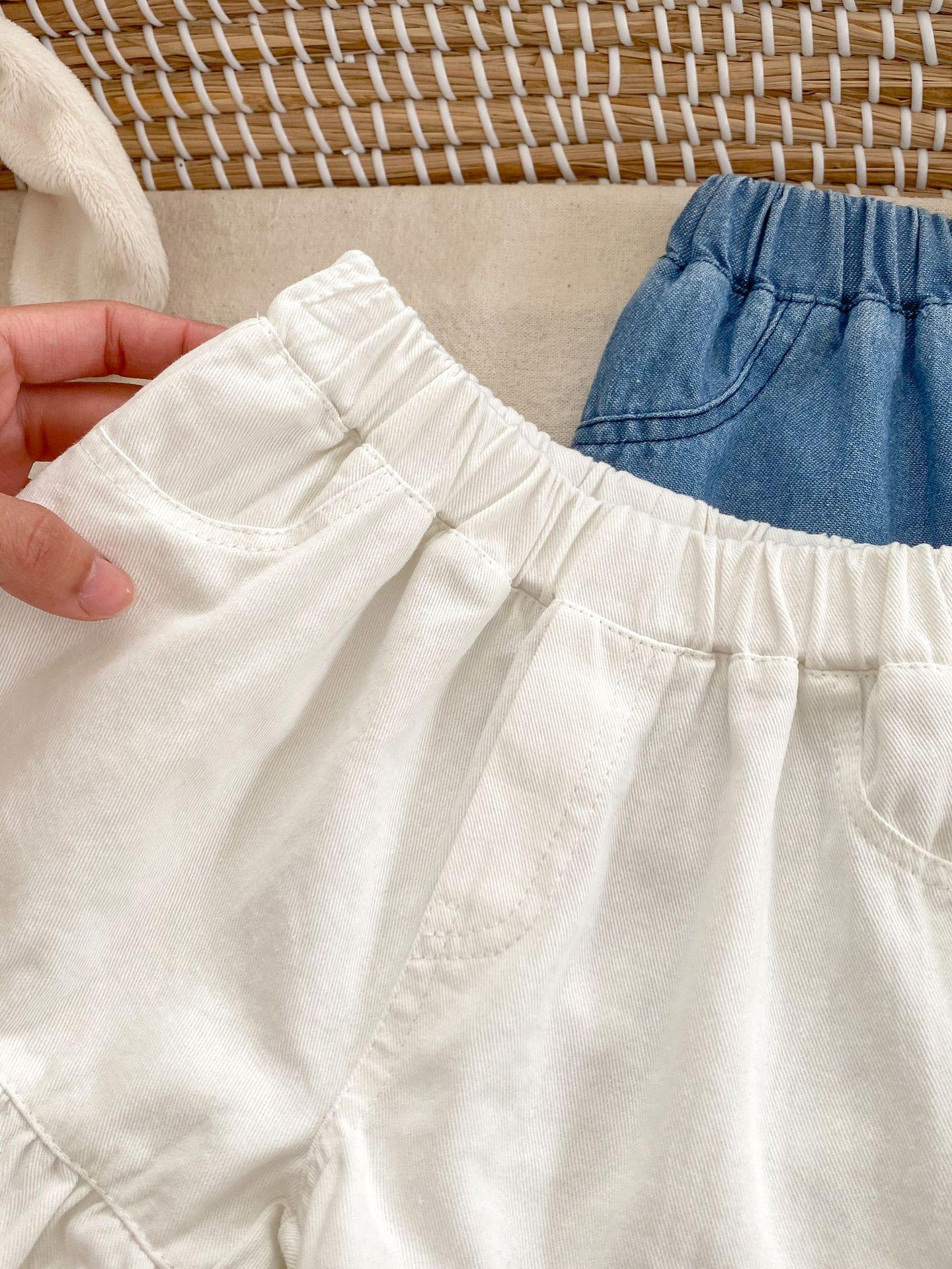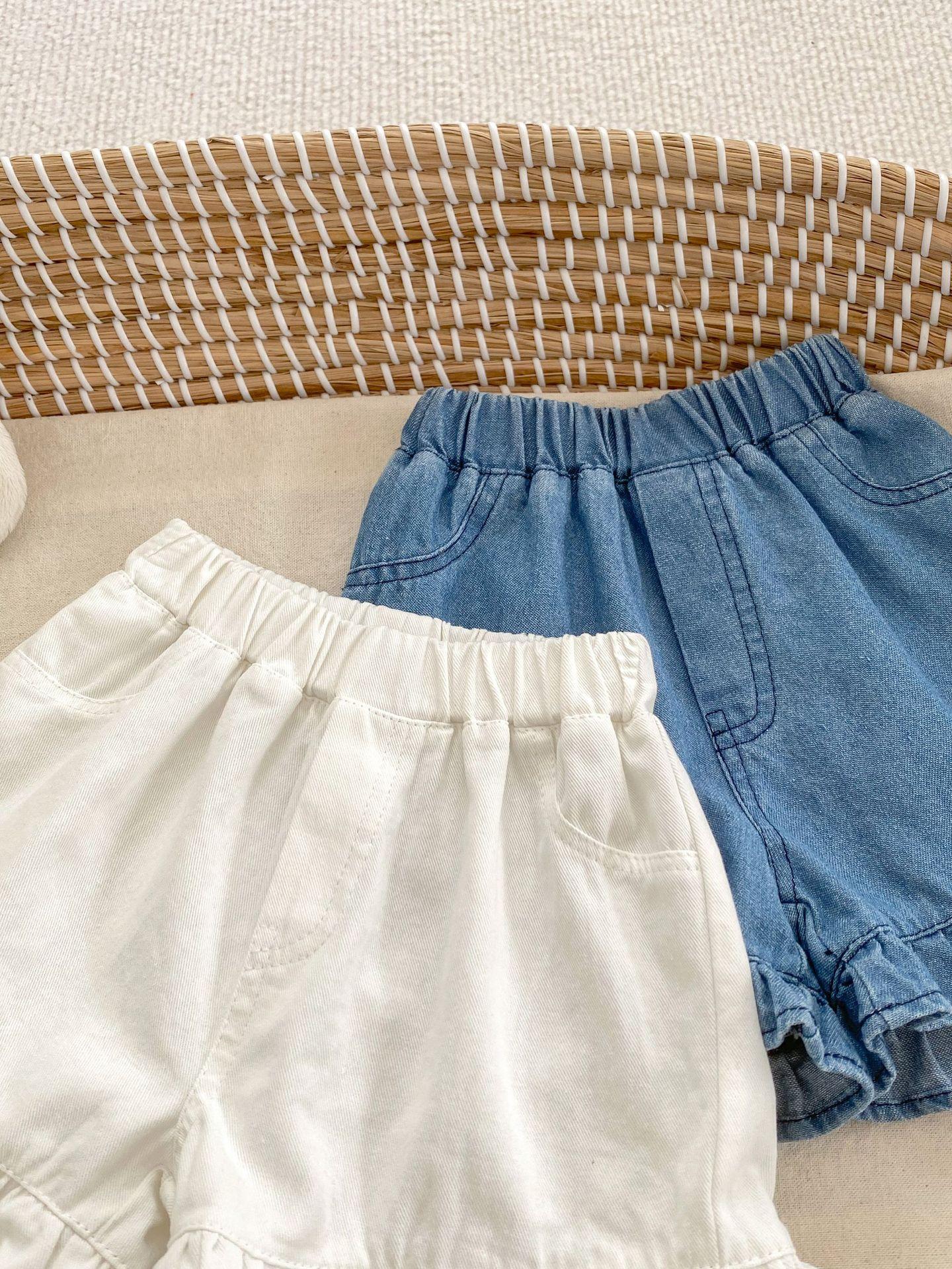 Shorts de mezclilla con encaje para bebé niña 2024 Nuevo Ropa de verano para bebé Combinación con todo Niños 1-3 años Estilo occidental Shorts delgados