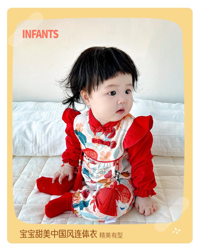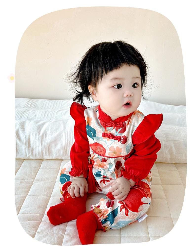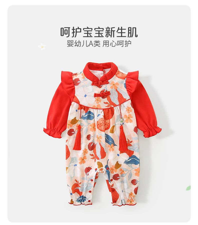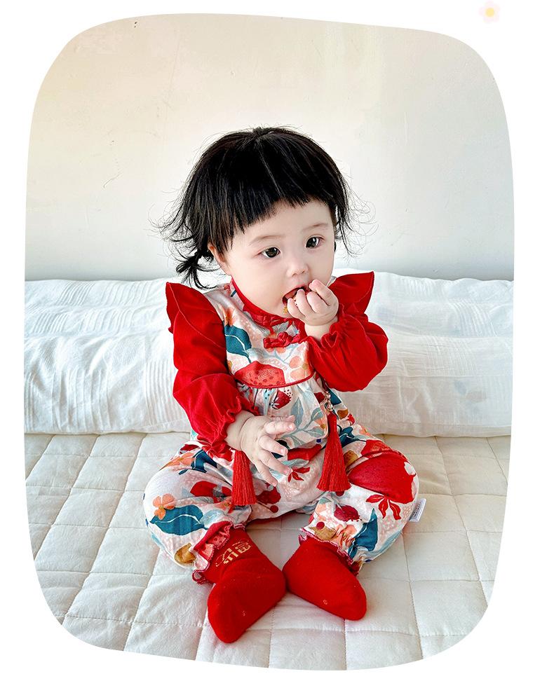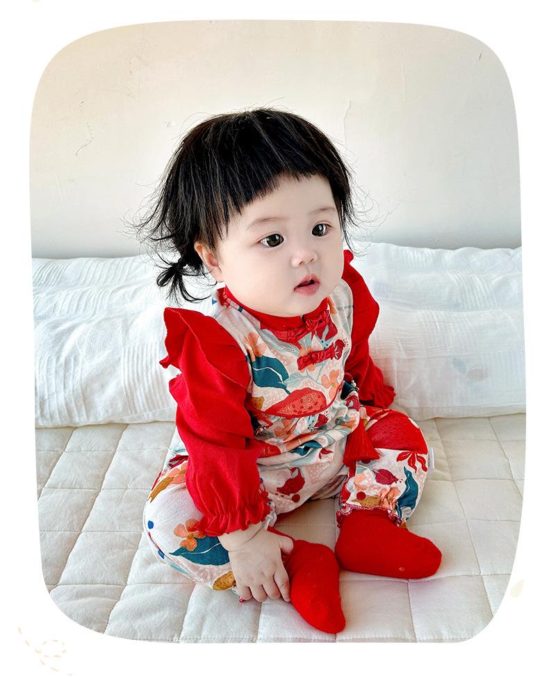 Ropa de bebé de algodón de otoño de un solo cuerpo 2025, estilo chino para niña de un año, ropa de escalada de luna llena, primavera y otoño, recién nacida 3238