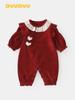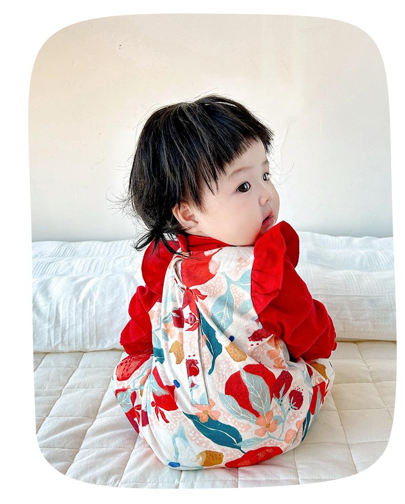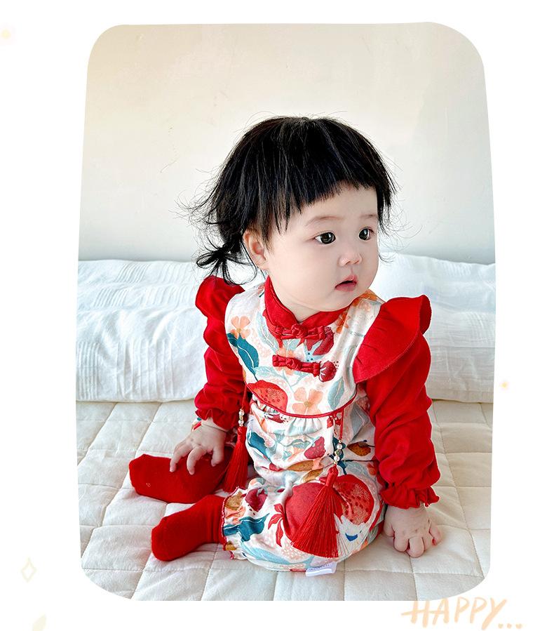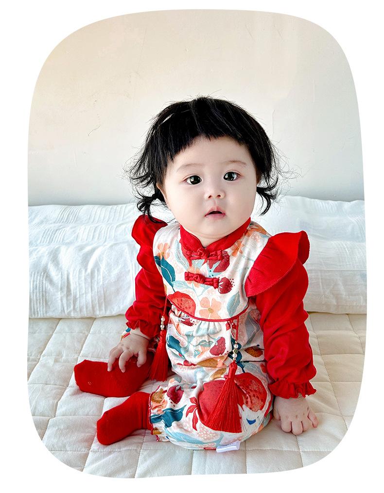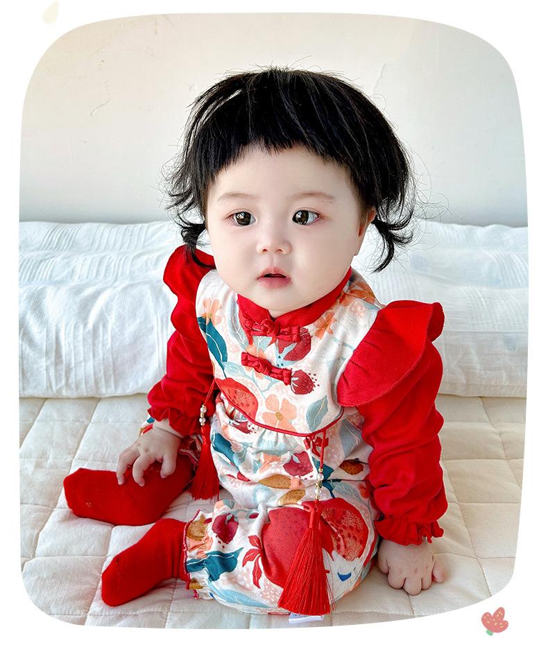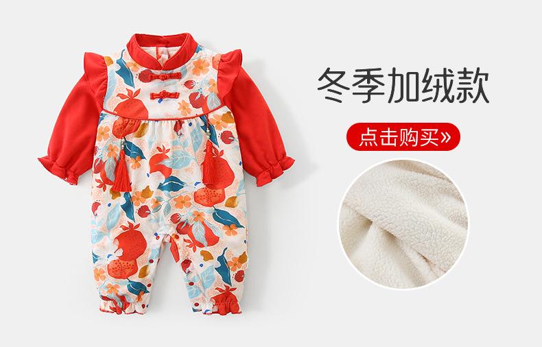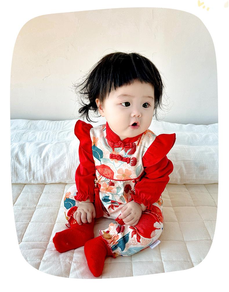 Ropa de bebé de algodón de otoño de un solo cuerpo 2025, estilo chino para niña de un año, ropa de escalada de luna llena, primavera y otoño, recién nacida 3238