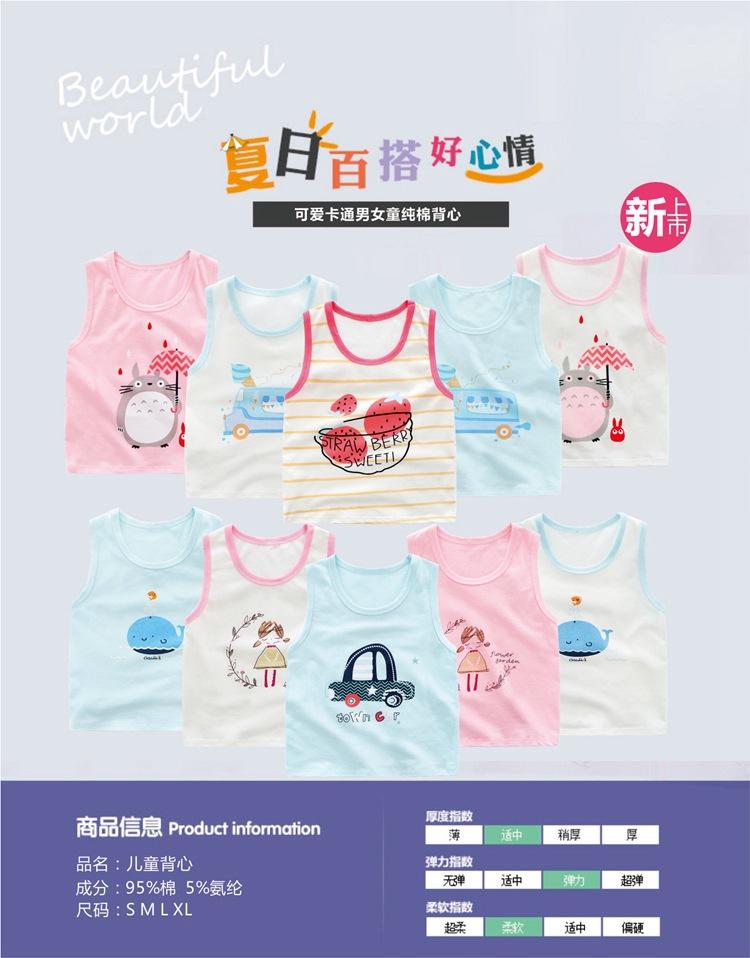 Versión coreana de chaleco de algodón de verano para niños, camisola de algodón 95% para niños y niñas, fuente principal del puesto de bebé