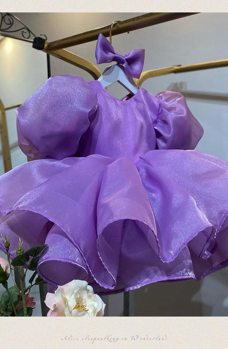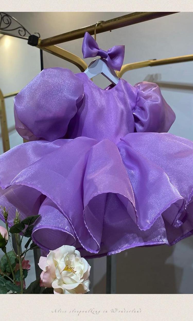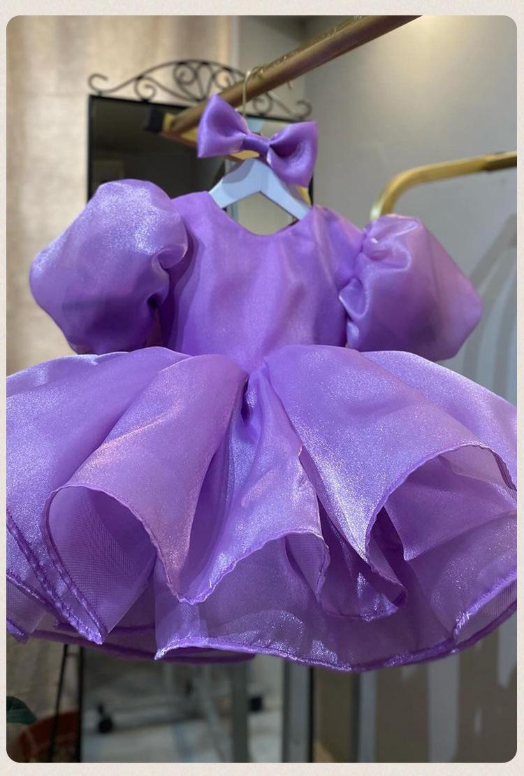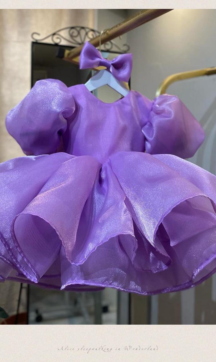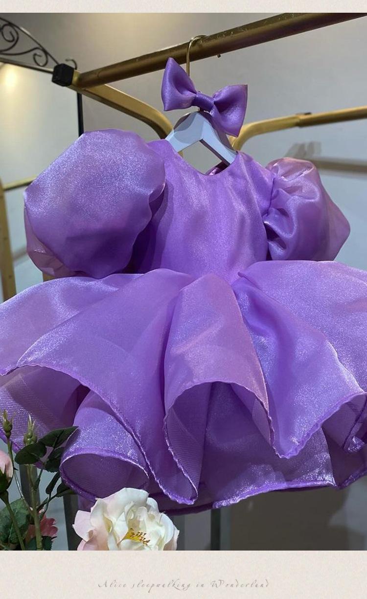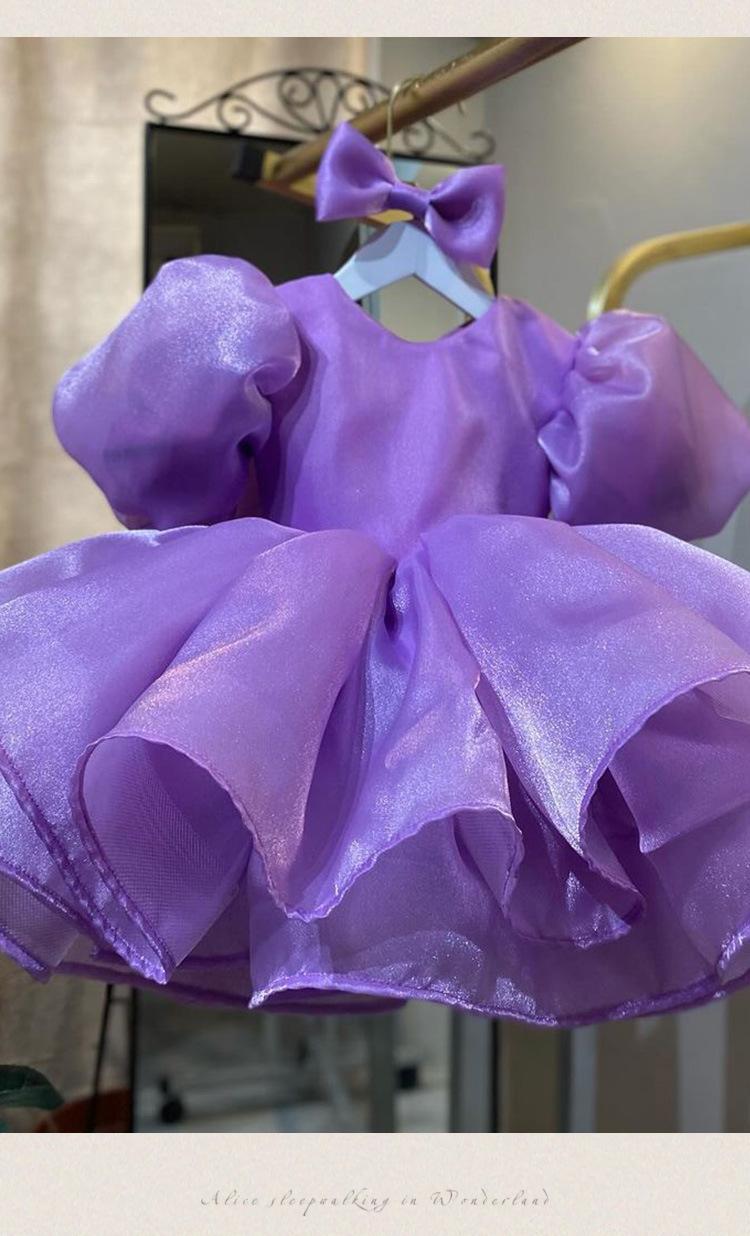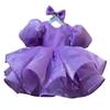 Vestido de princesa morado con mangas abullonadas y lazo para niña, vestido de princesa para primer cumpleaños.