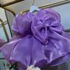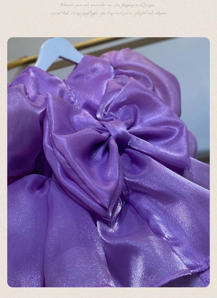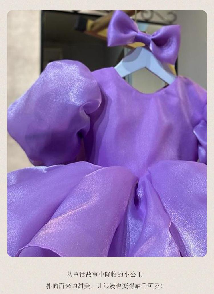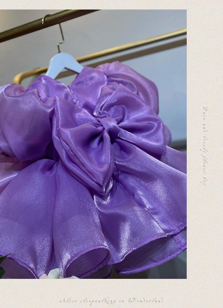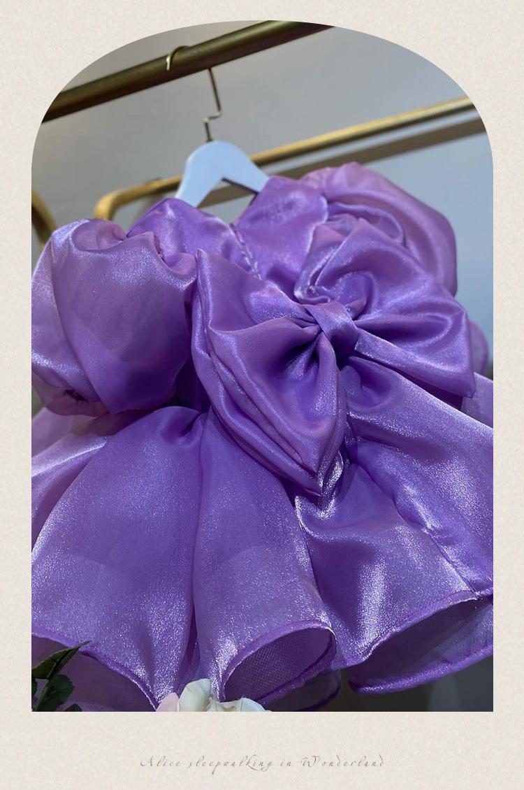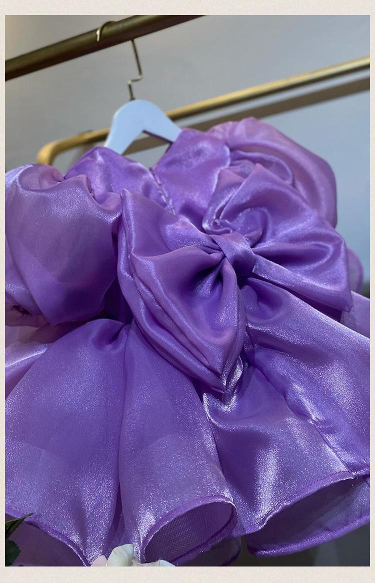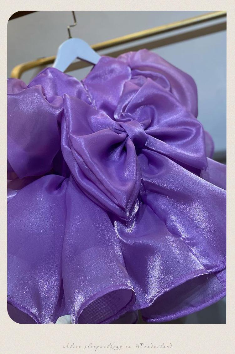 Vestido de princesa morado con mangas abullonadas y lazo para niña, vestido de princesa para primer cumpleaños.