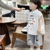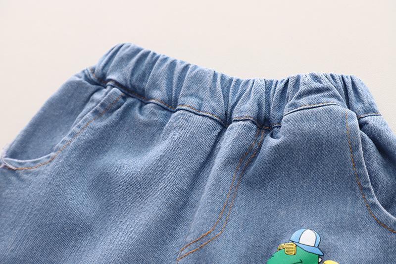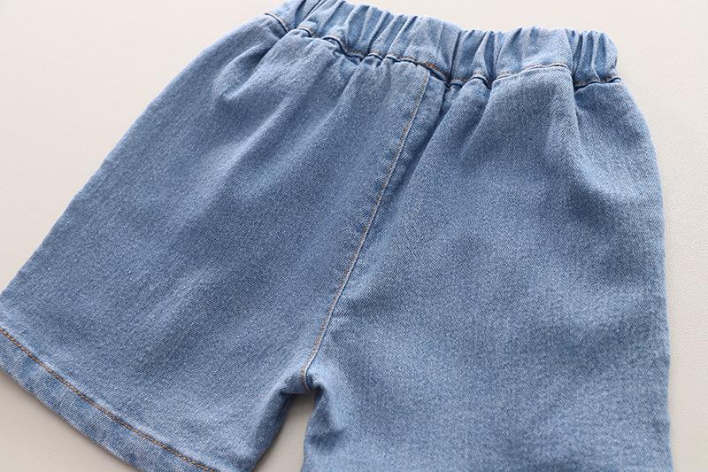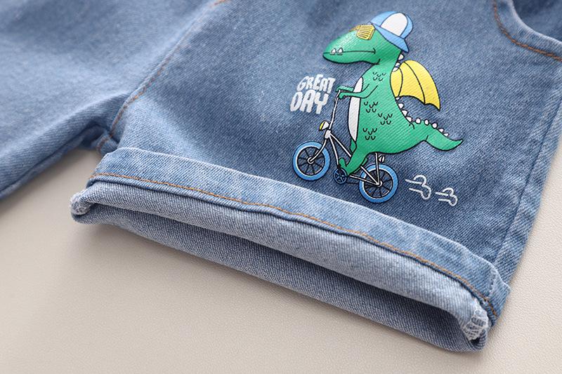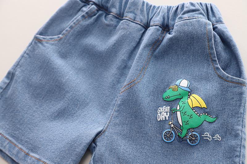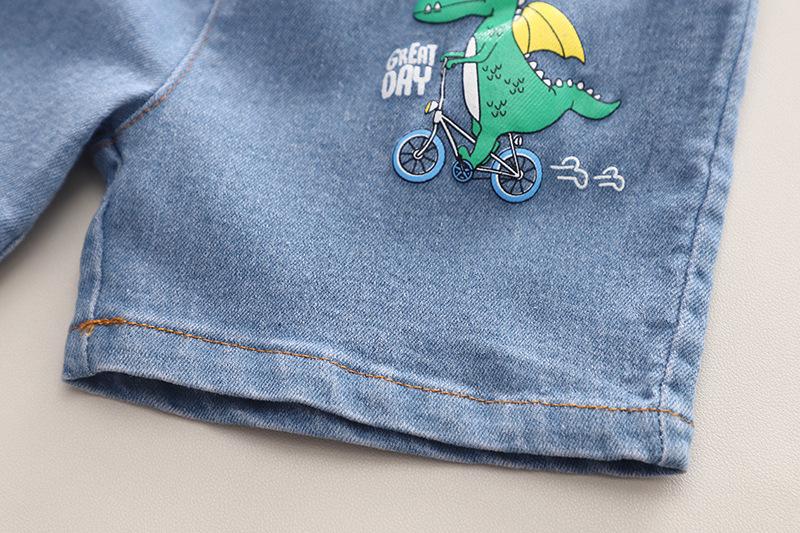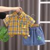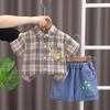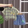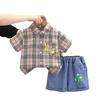 Ropa infantil comercio exterior verano nuevo niños caricatura camisa de cuadros manga corta pantalones cortos de mezclilla dos piezas fábrica mayoreo marea