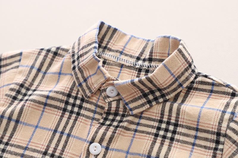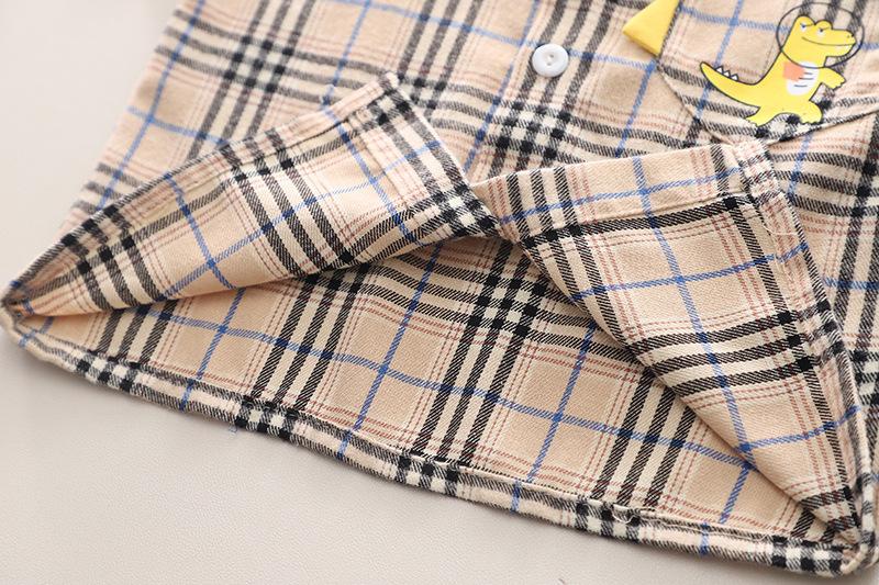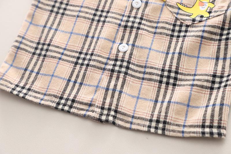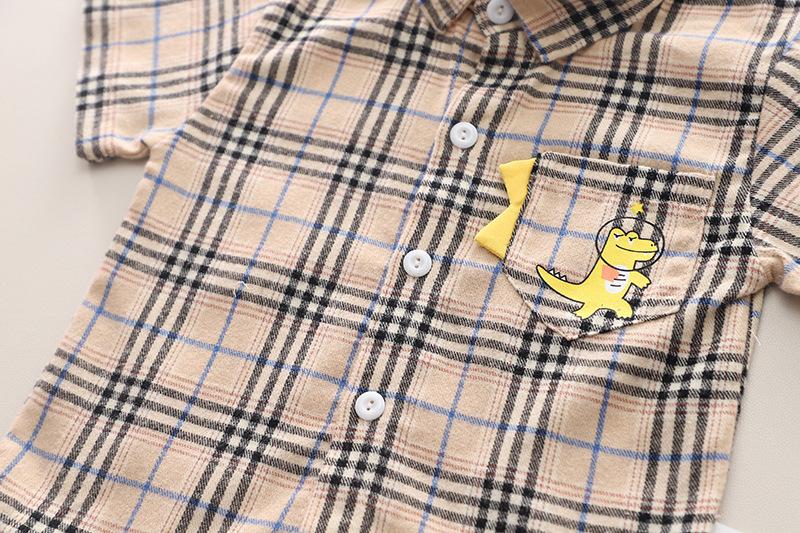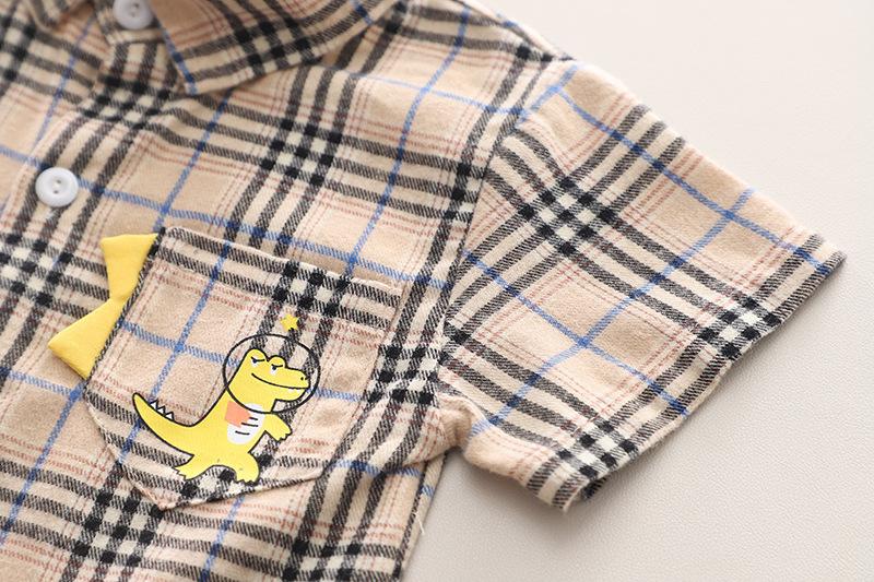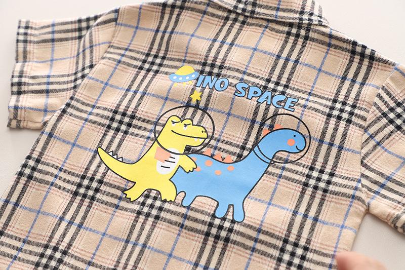 Khaki plaid dinosaur shirt short sleeve suit, Yellow plaid dinosaur shirt short sleeve suit, Green plaid dinos...