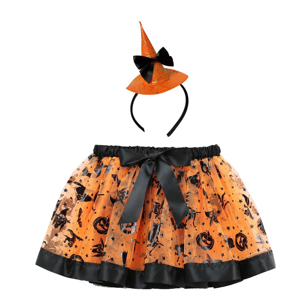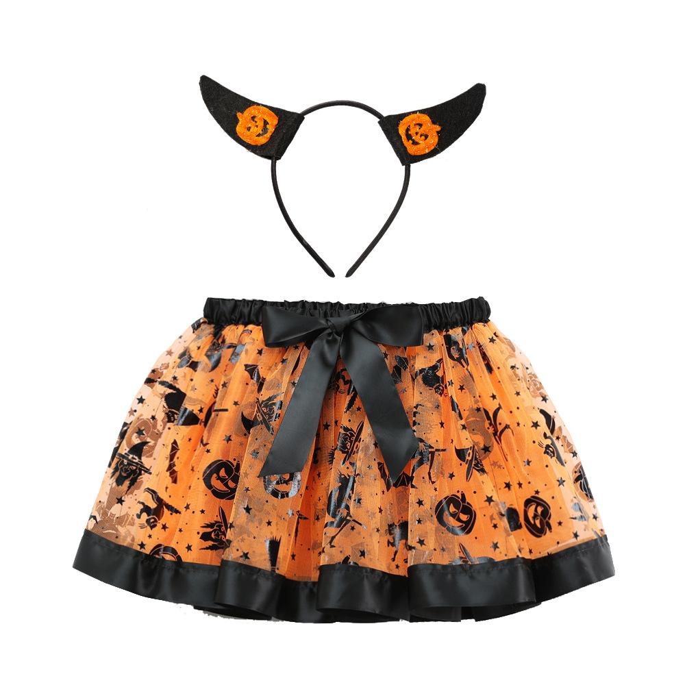 Falda tutú infantil con estampado de Halloween, forrada, corta, estilo europeo y americano, con pomposidad, para niños de tallas pequeñas y medianas.