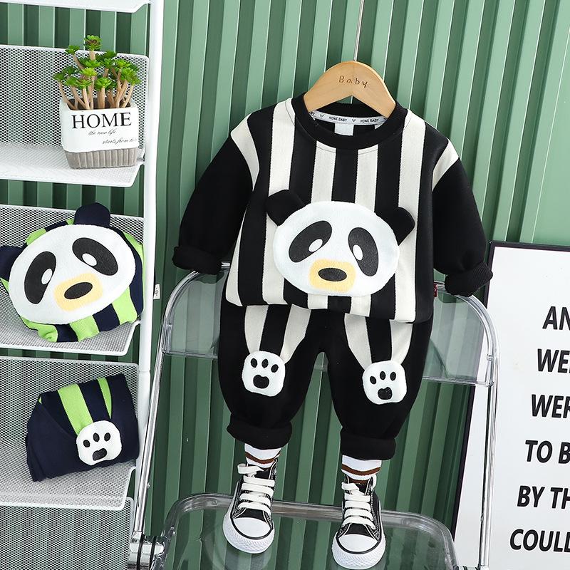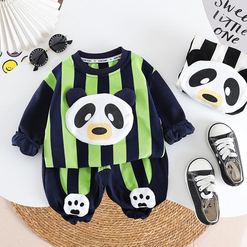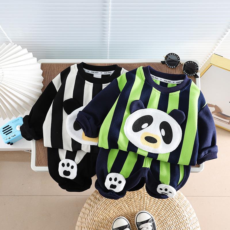 230301 vertical bar Panda two-piece black, 230301 vertical bar Panda two-piece set Green