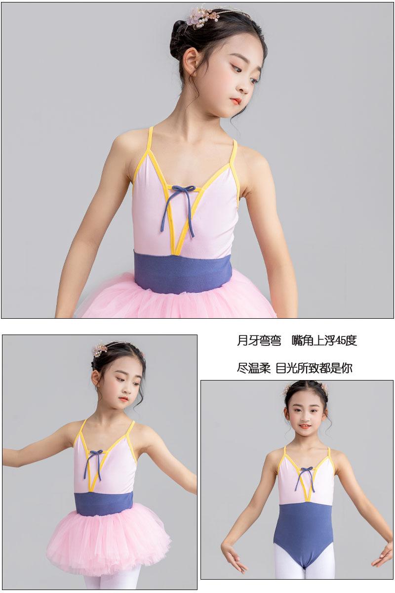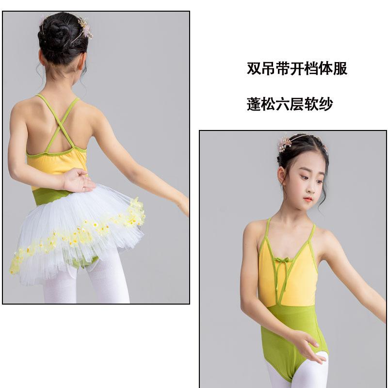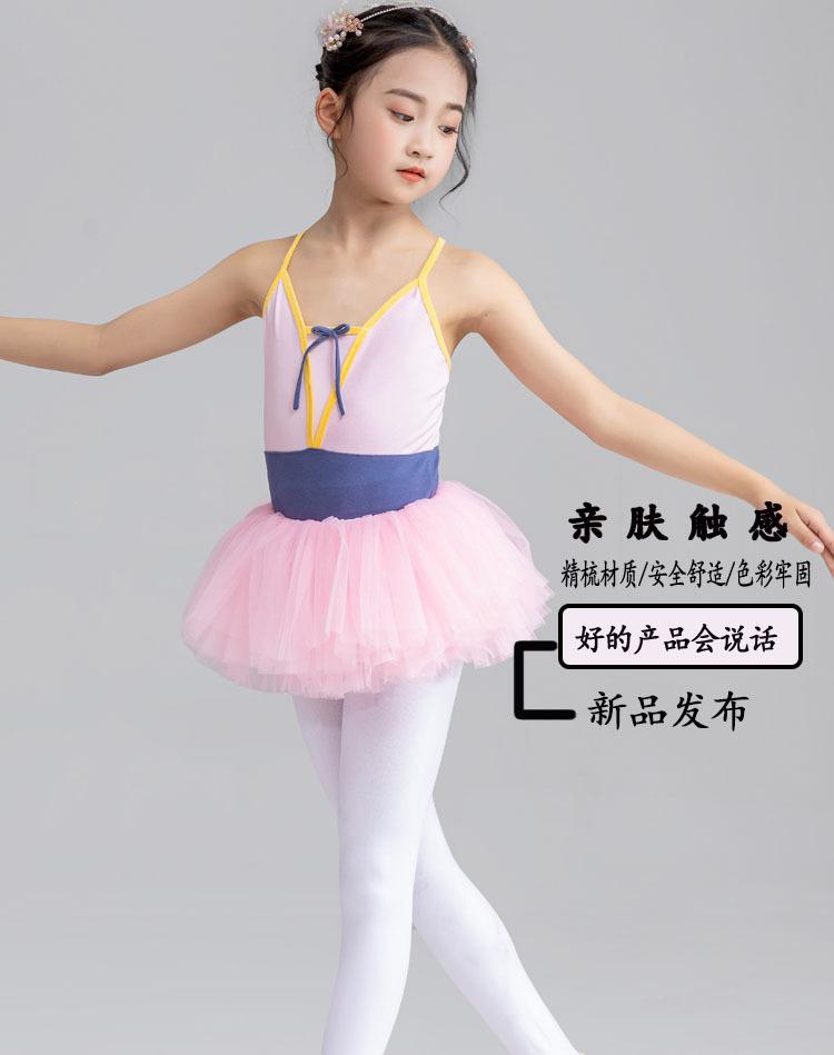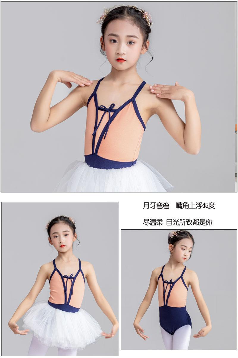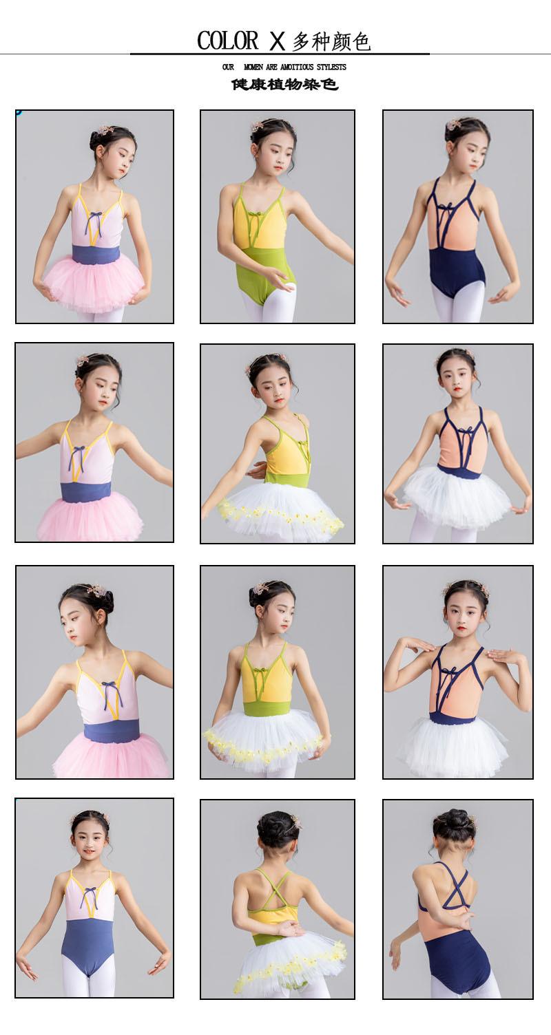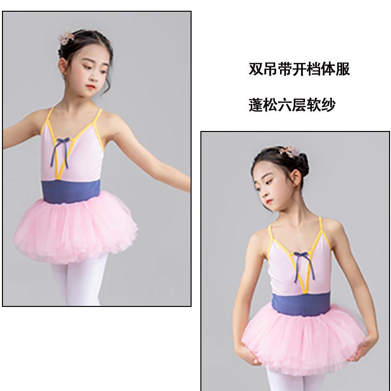 Nueva ropa deportiva de baile sin espalda con tirantes de colores a juego para niñas, ropa de ballet para pruebas de grado infantil, ropa de práctica para estudiantes.