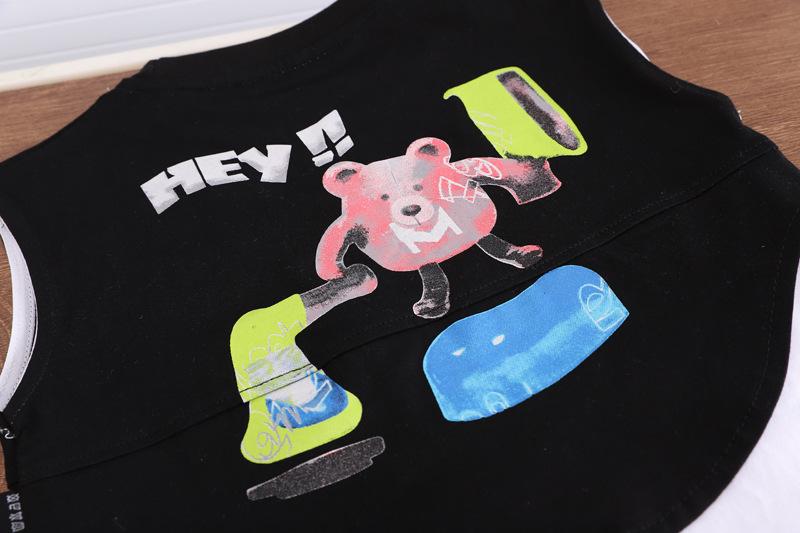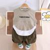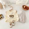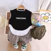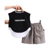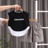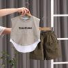 Traje de chaleco inglés de verano para niños, estilo occidental, informal, cuello redondo, ropa fina, conjunto de dos piezas de verano para bebés y niños