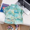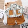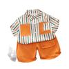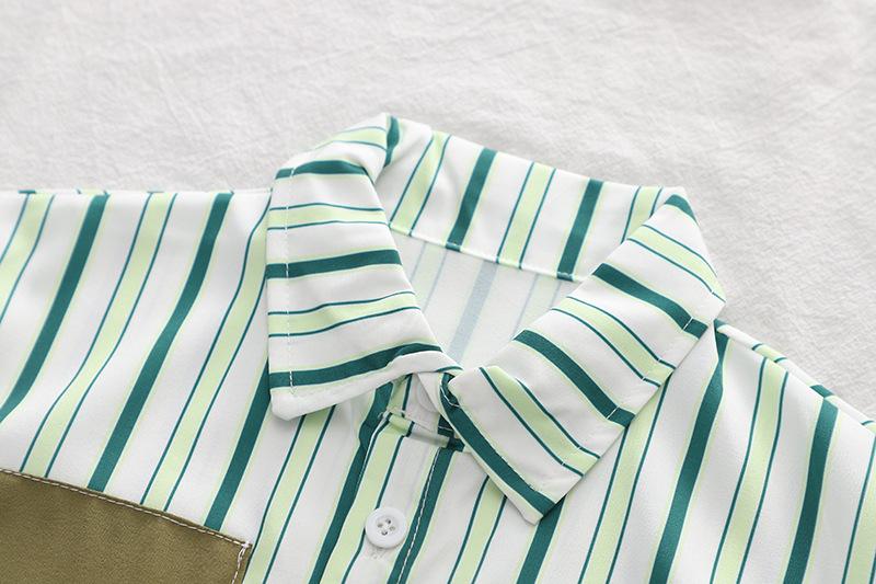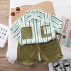 Traje de verano para niños 2024, nuevo conjunto de dos piezas de manga corta con camisa recta y estilo occidental para bebés.