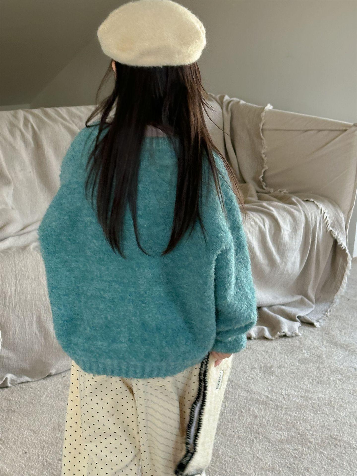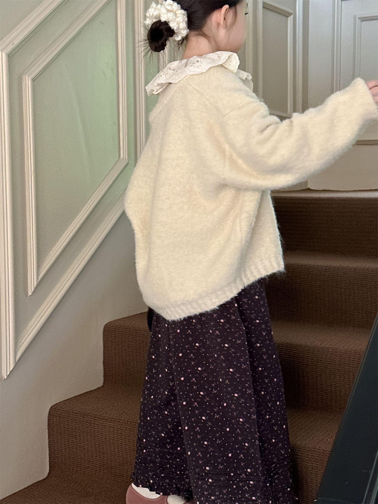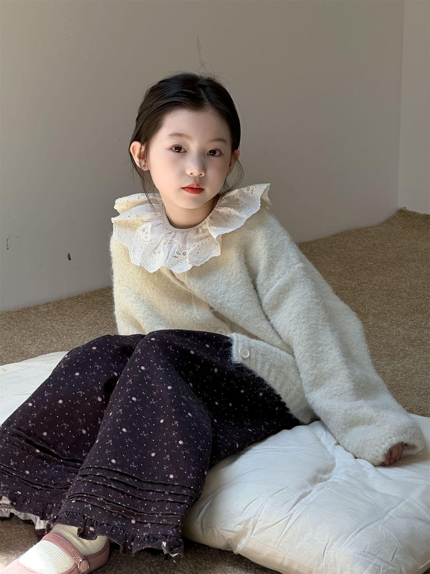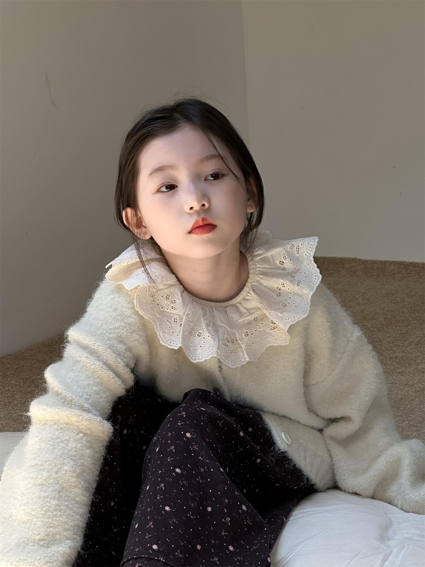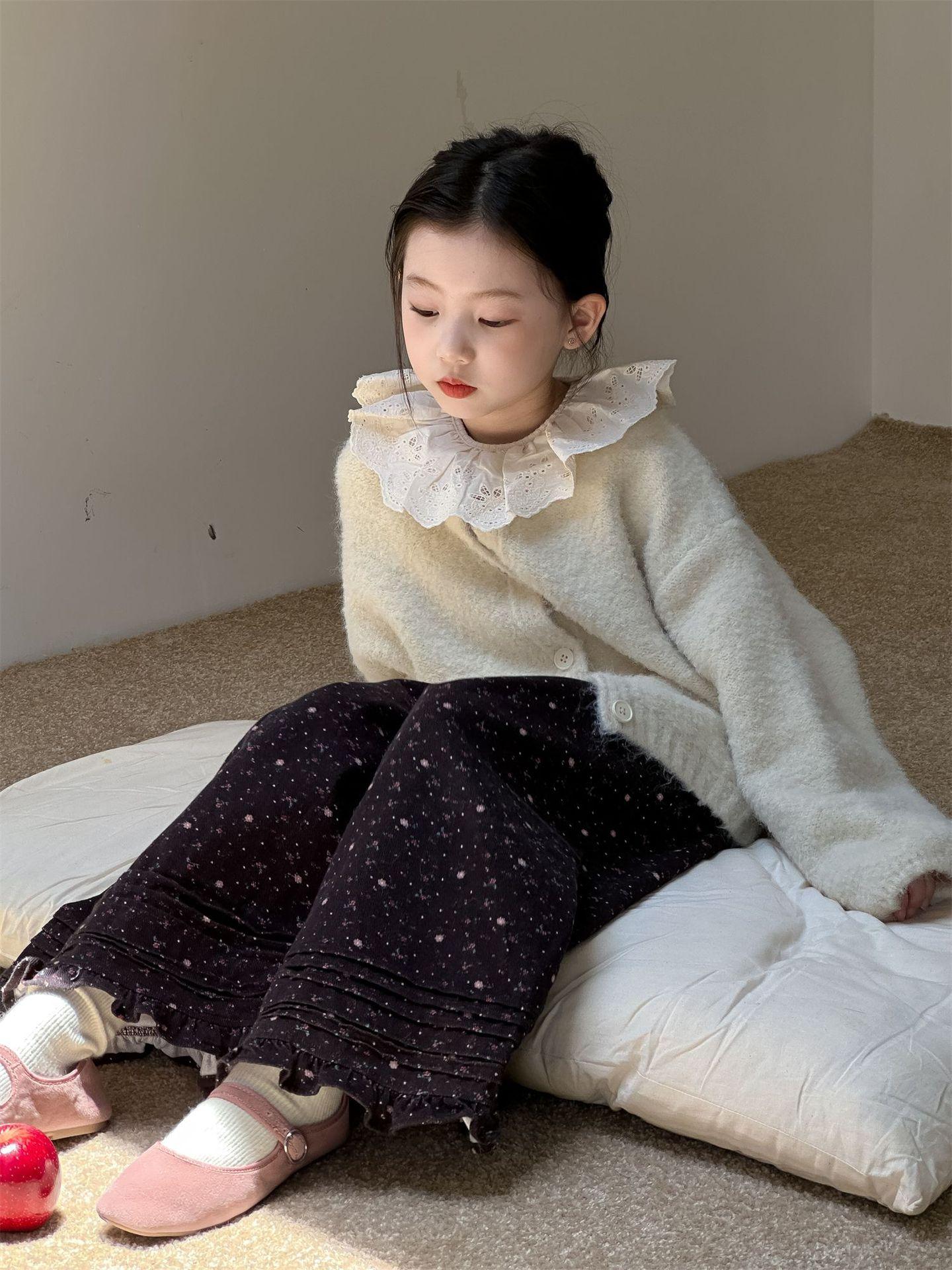 Flor y Ropa Infantil de Aspecto Cárdigan de Mohair para Niñas Otoño 2024 Nuevo Estilo Coreano Suéter Suave y Ceroso para Niños Bebés