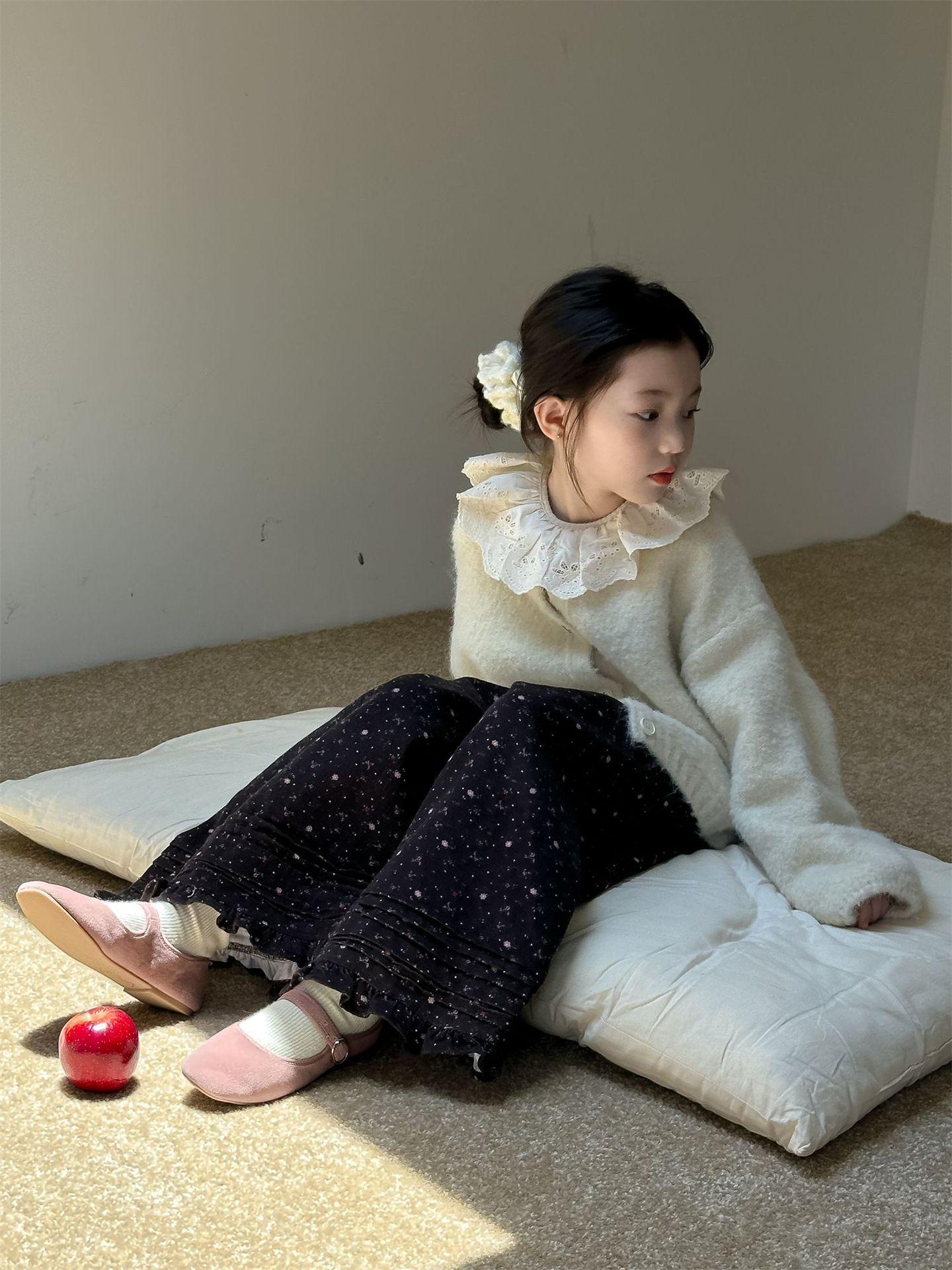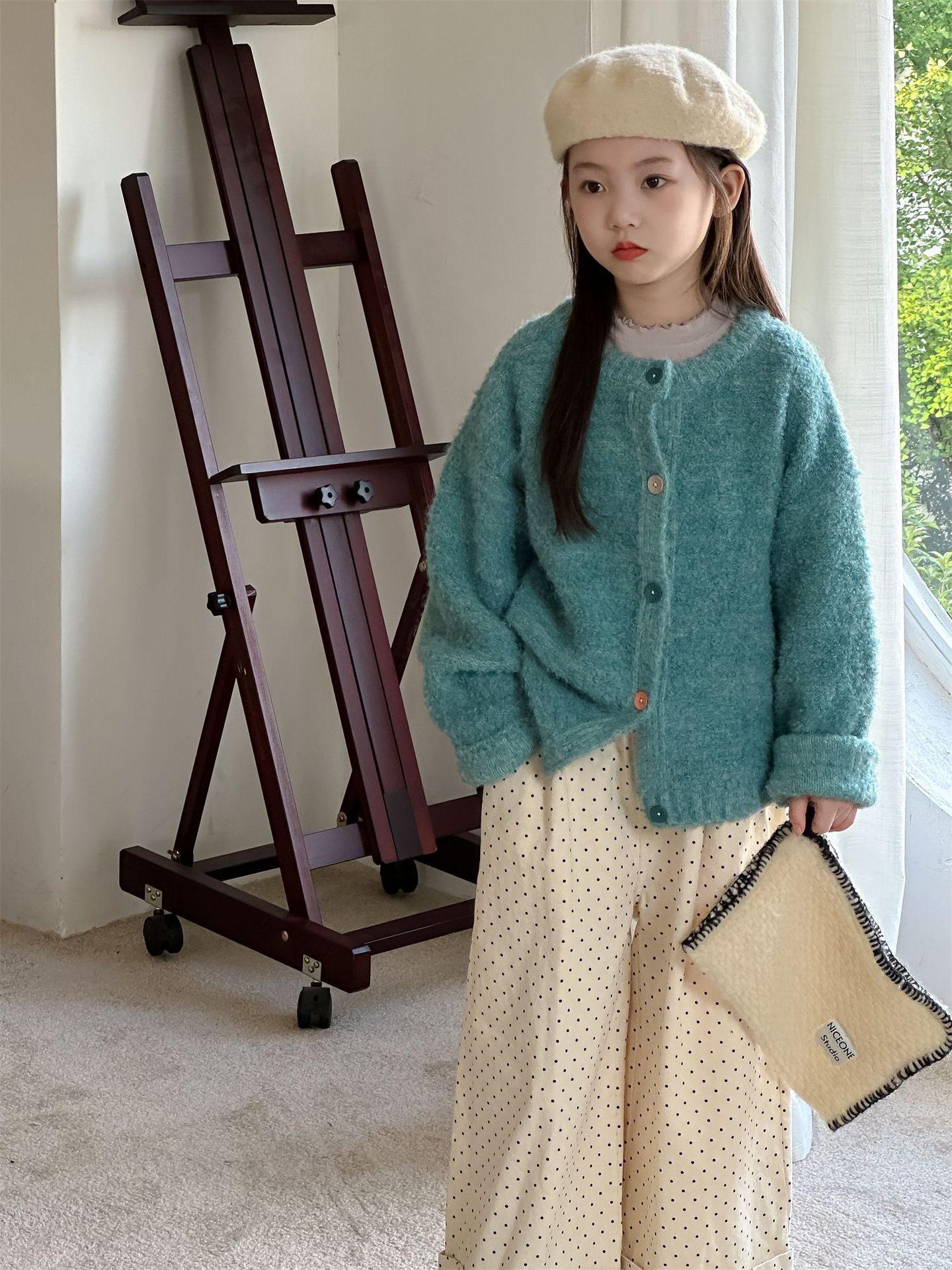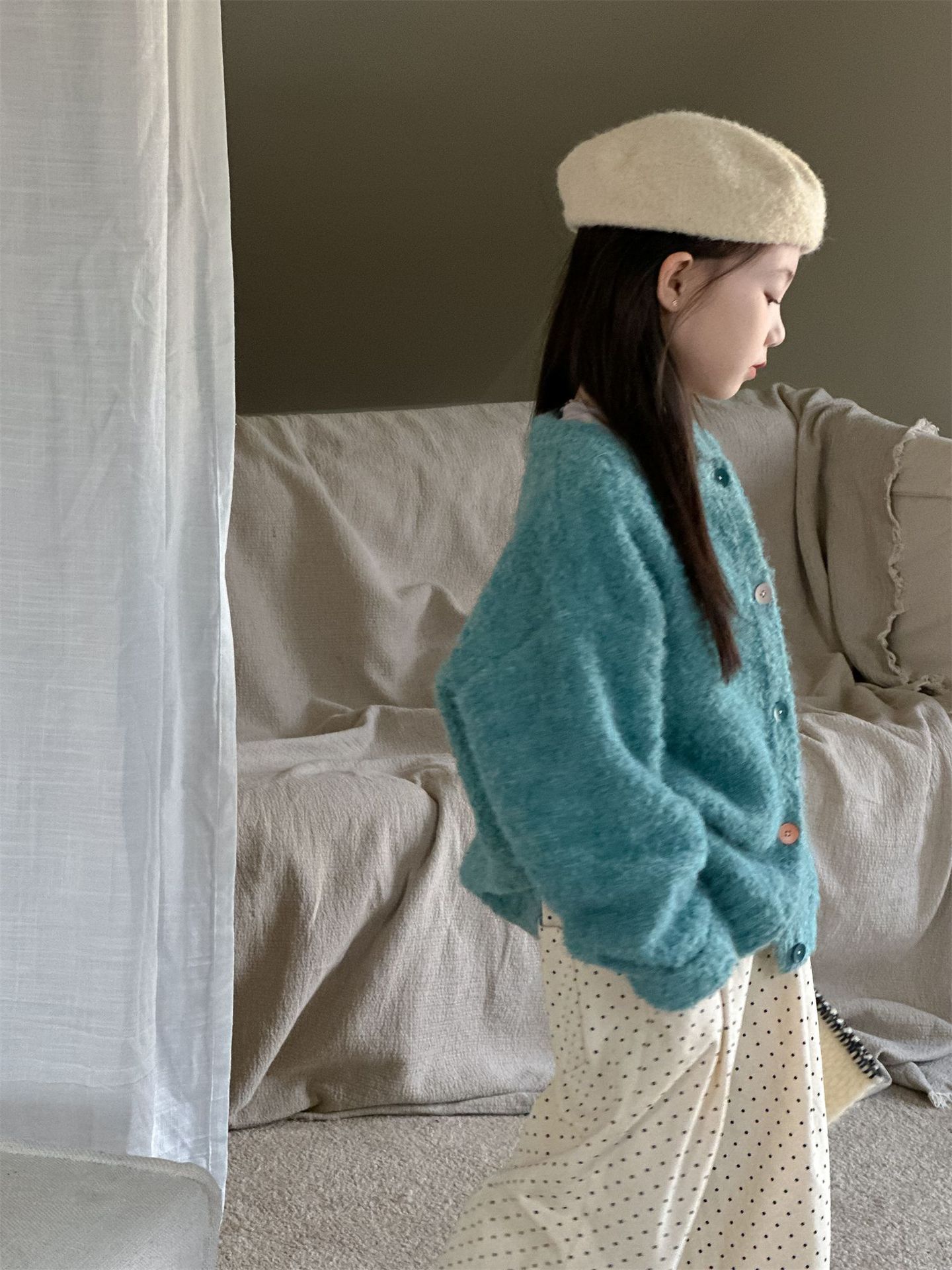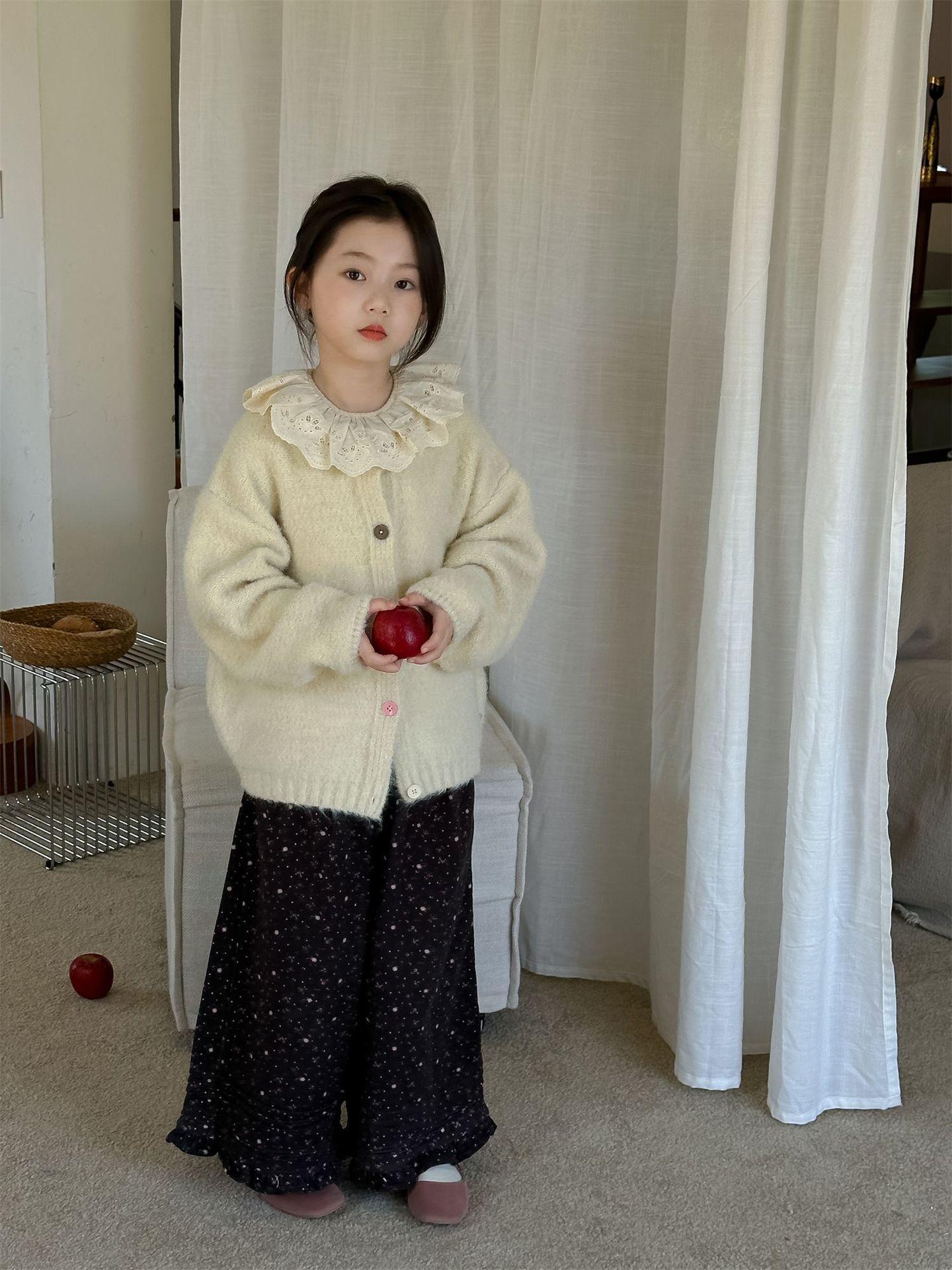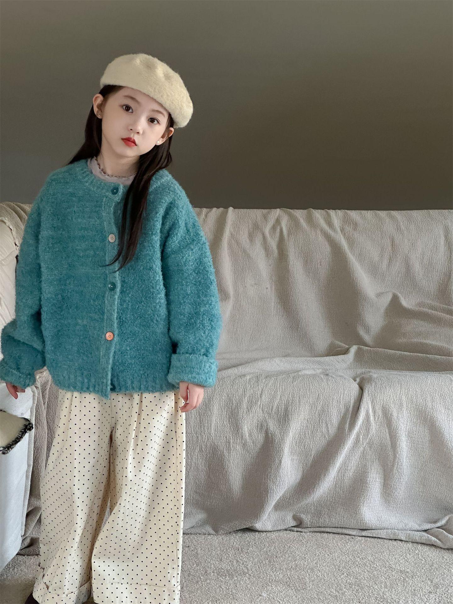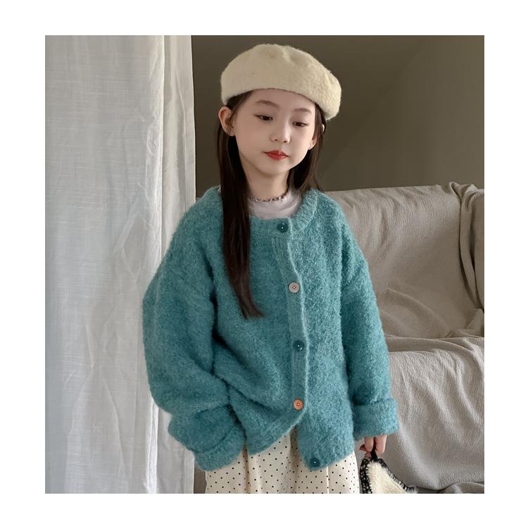 Flor y Ropa Infantil de Aspecto Cárdigan de Mohair para Niñas Otoño 2024 Nuevo Estilo Coreano Suéter Suave y Ceroso para Niños Bebés