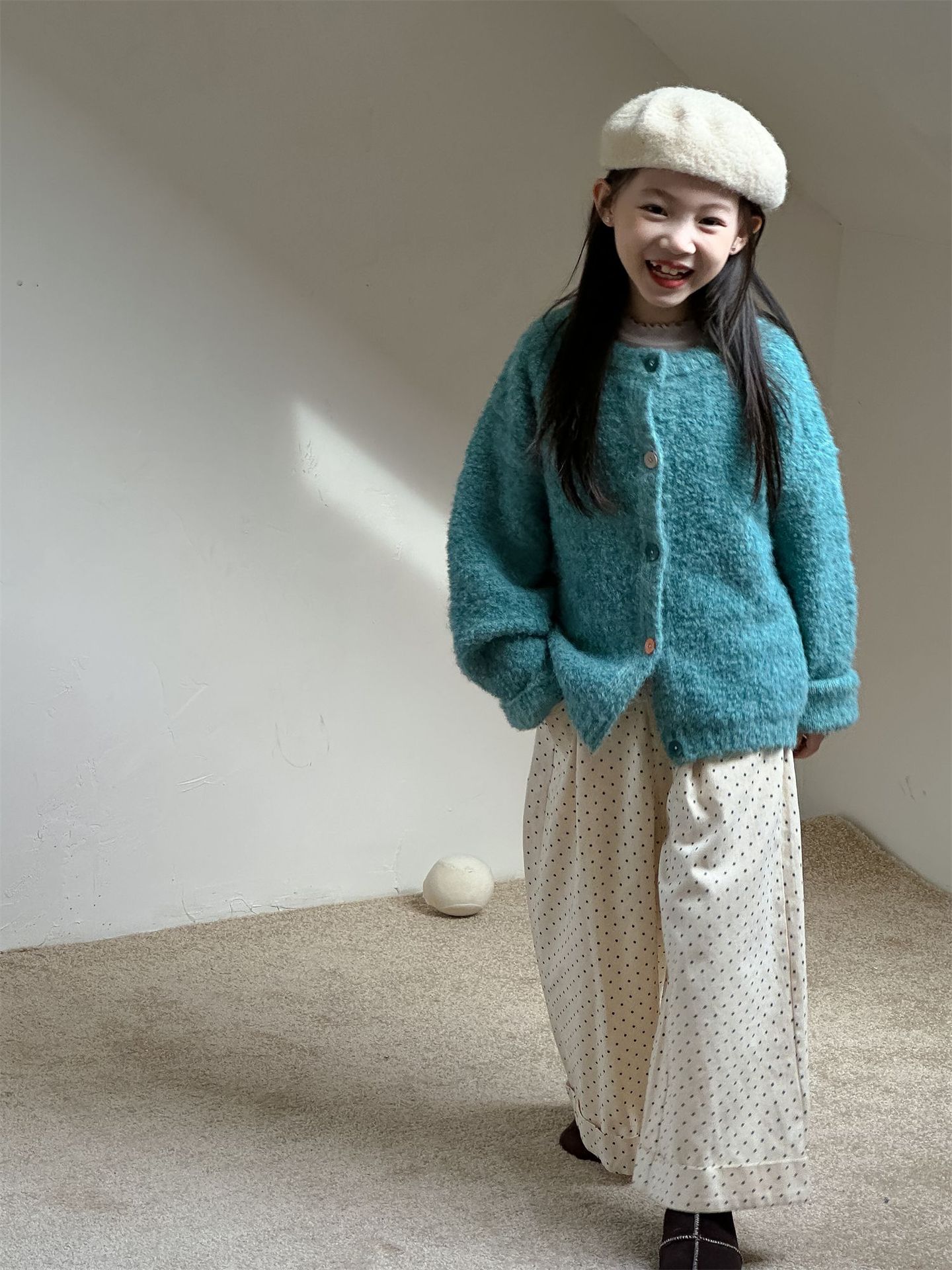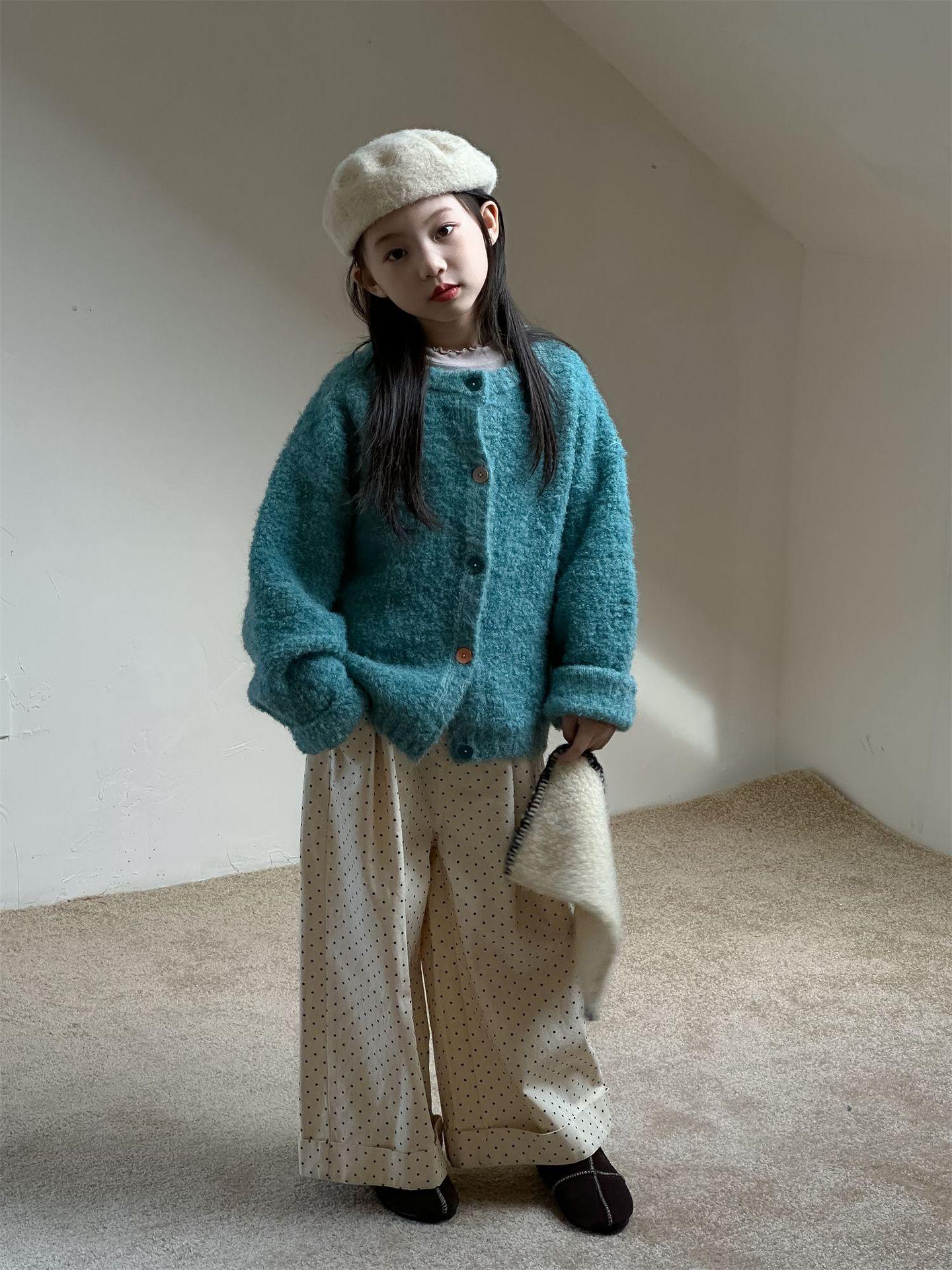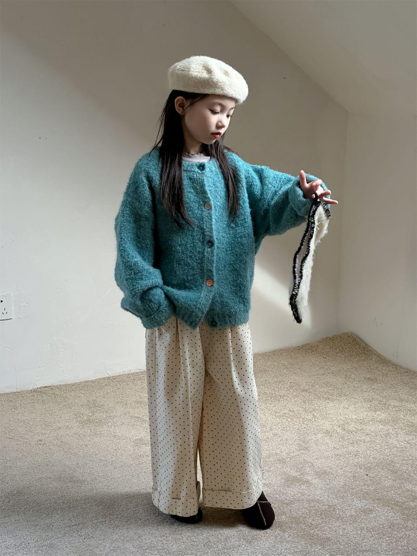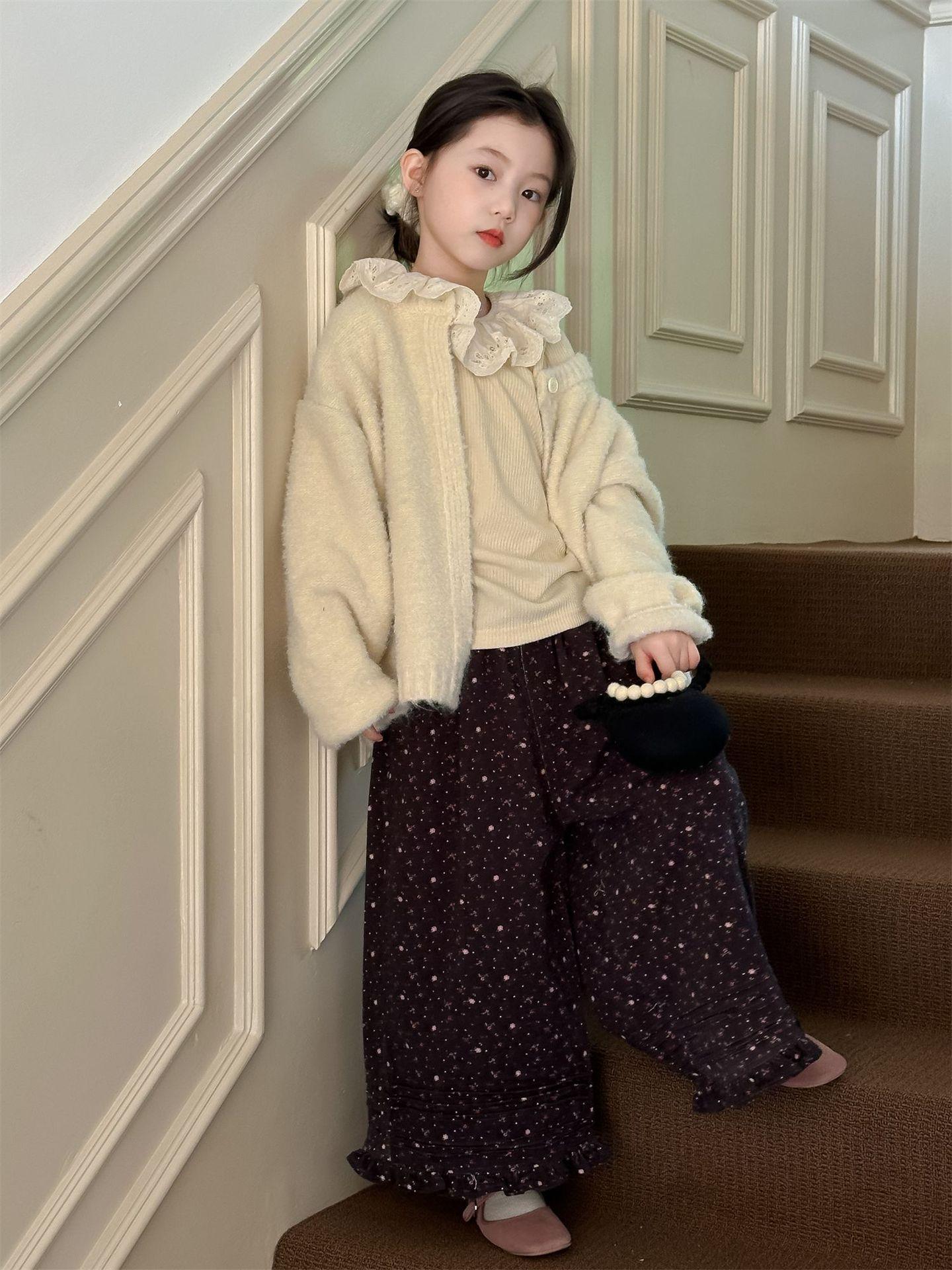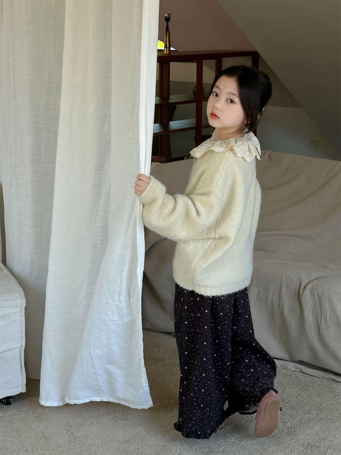 Flor y Ropa Infantil de Aspecto Cárdigan de Mohair para Niñas Otoño 2024 Nuevo Estilo Coreano Suéter Suave y Ceroso para Niños Bebés