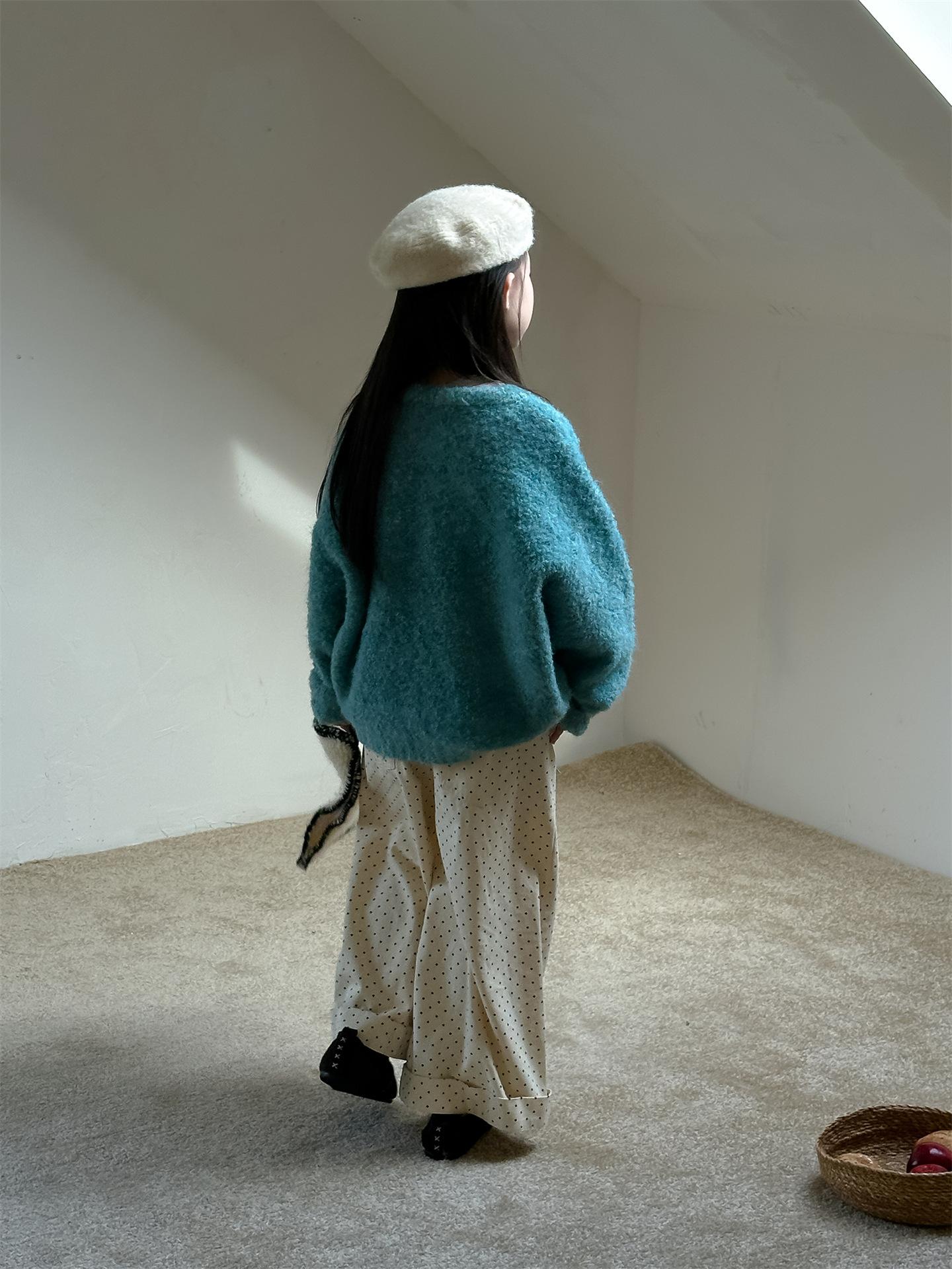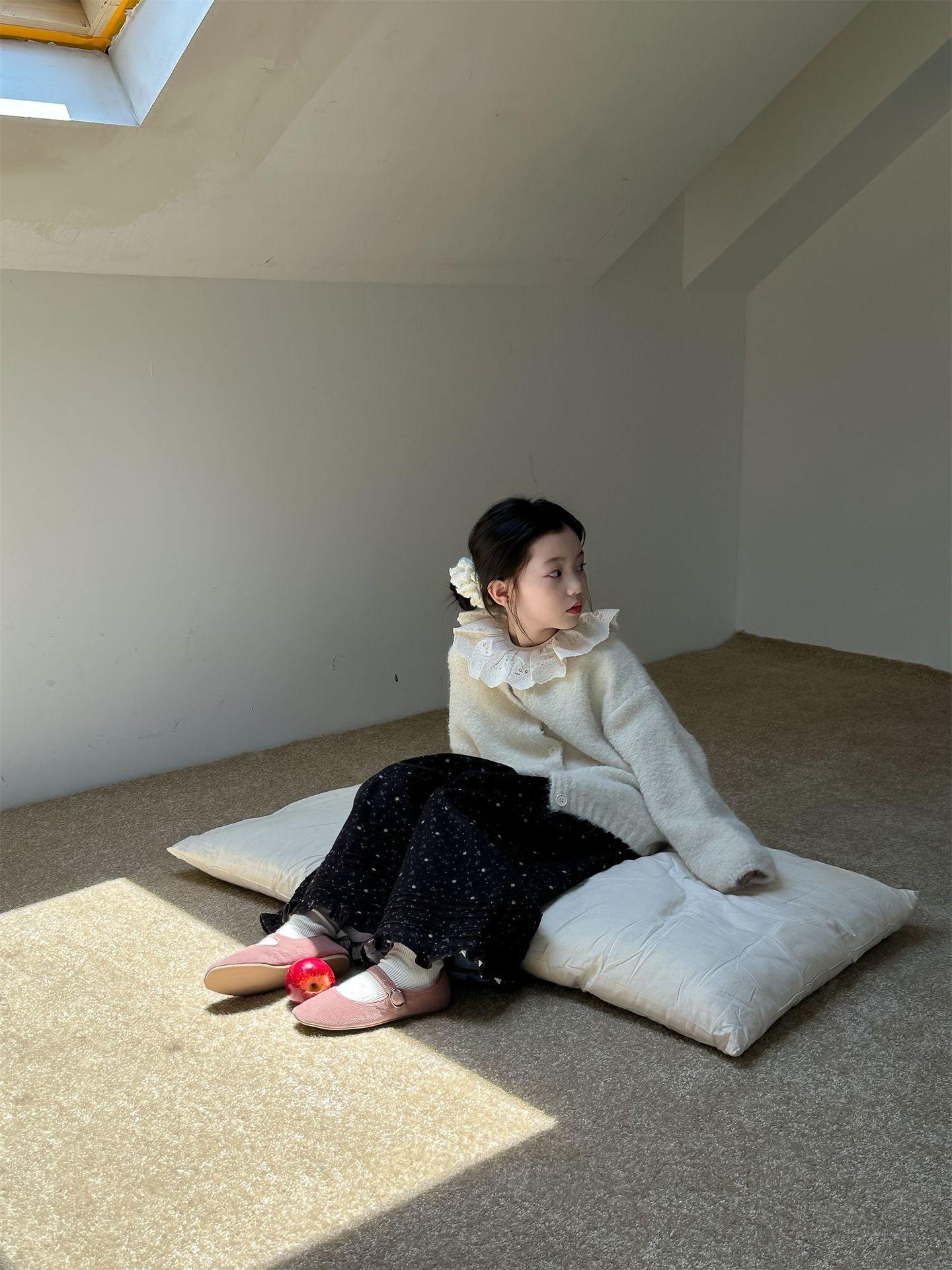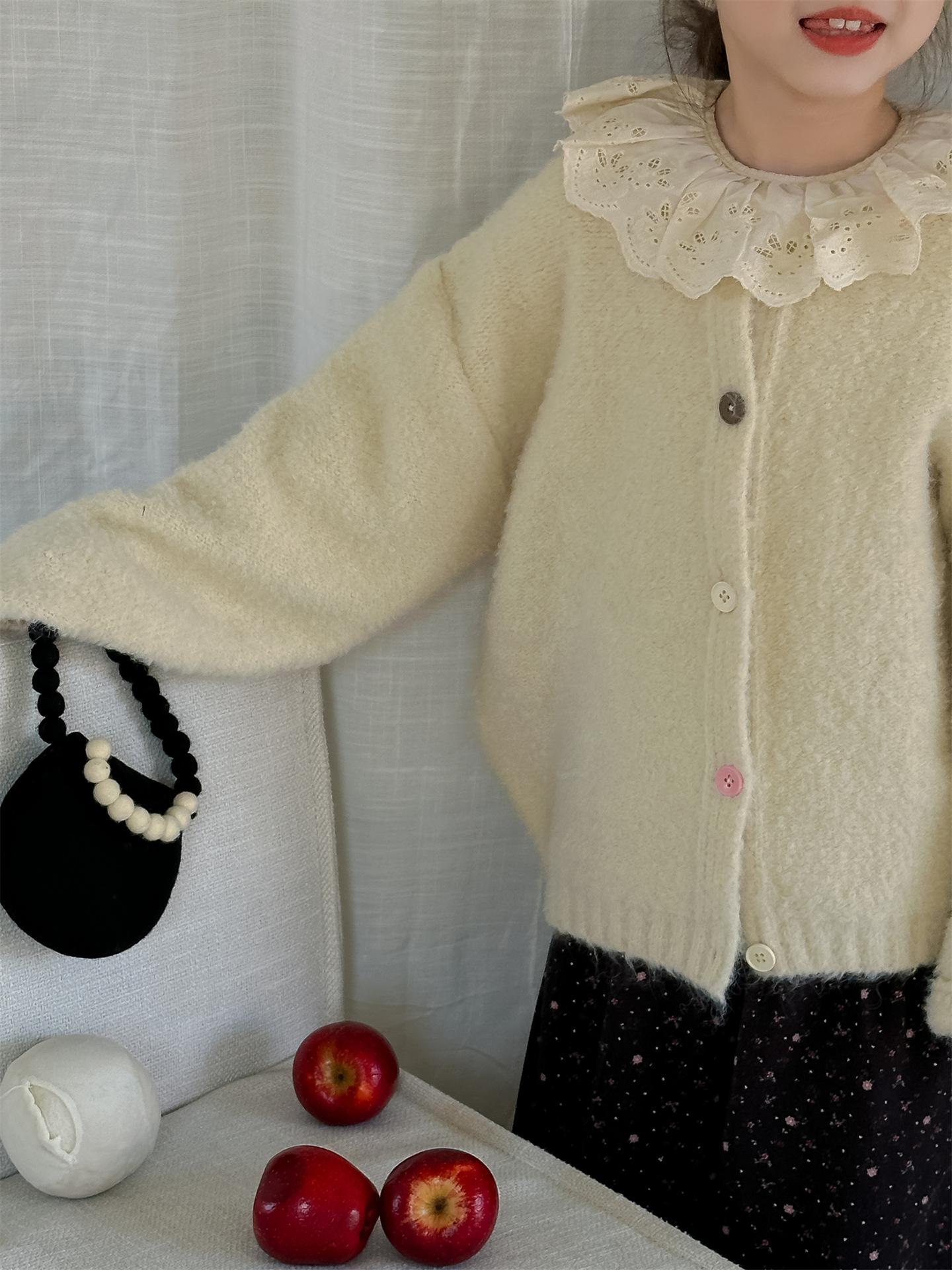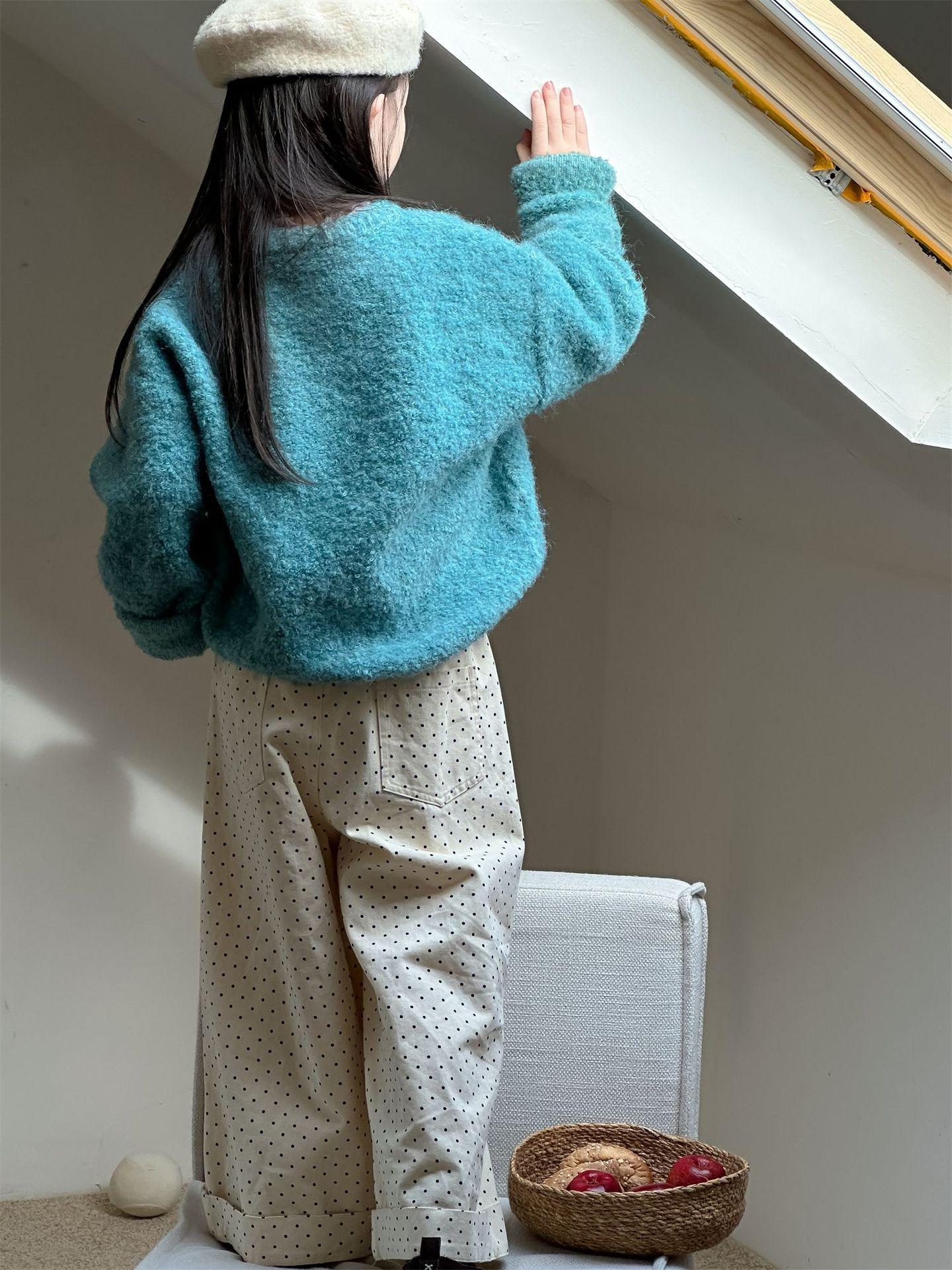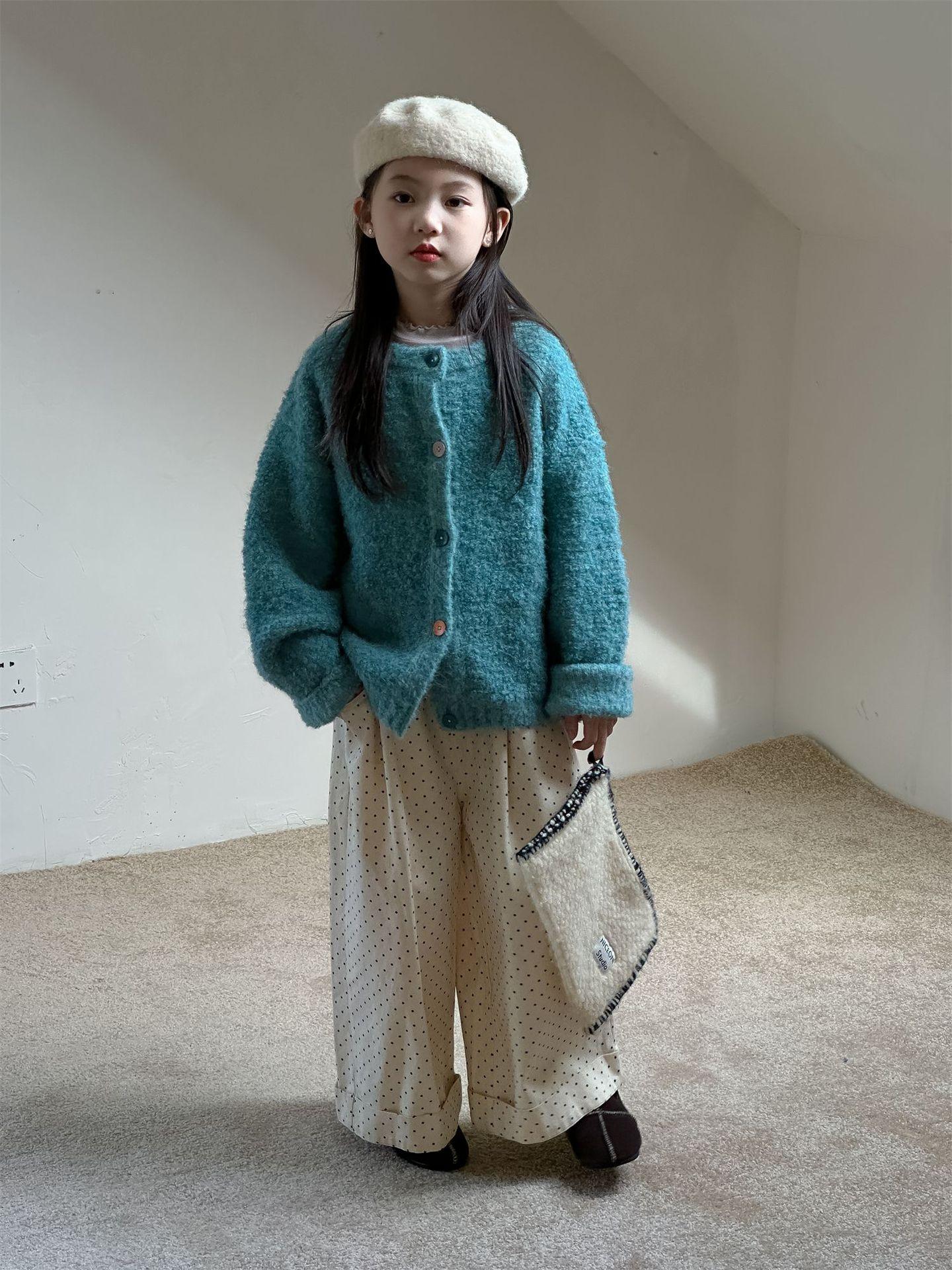 Flor y Ropa Infantil de Aspecto Cárdigan de Mohair para Niñas Otoño 2024 Nuevo Estilo Coreano Suéter Suave y Ceroso para Niños Bebés