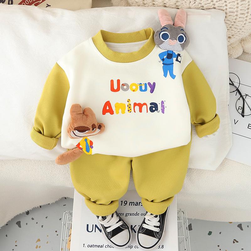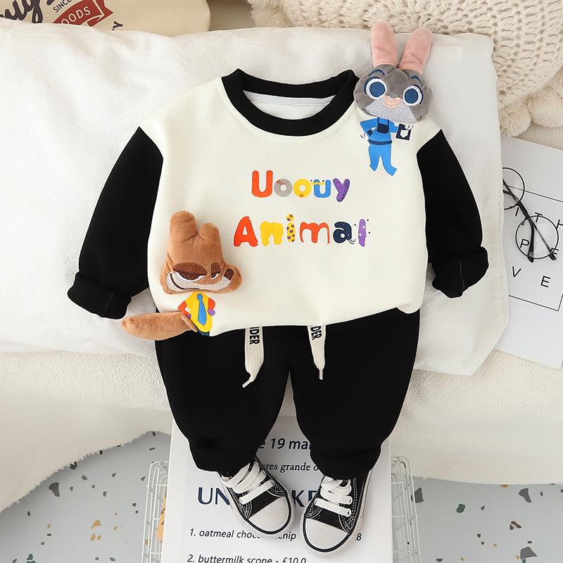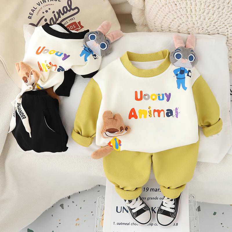 Conjunto de sudadera de otoño para niño 2024, nuevo conjunto de dos piezas de manga larga a juego para bebé, ropa de paseo para bebé a la moda y actual.