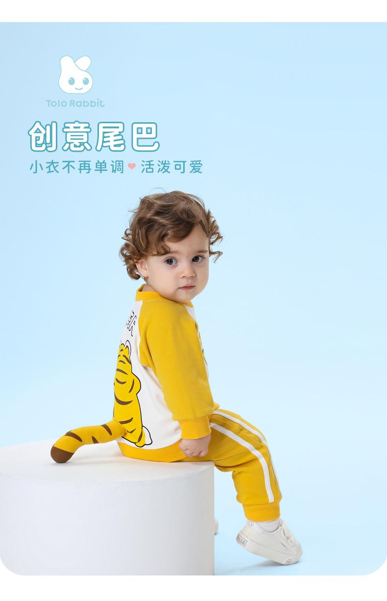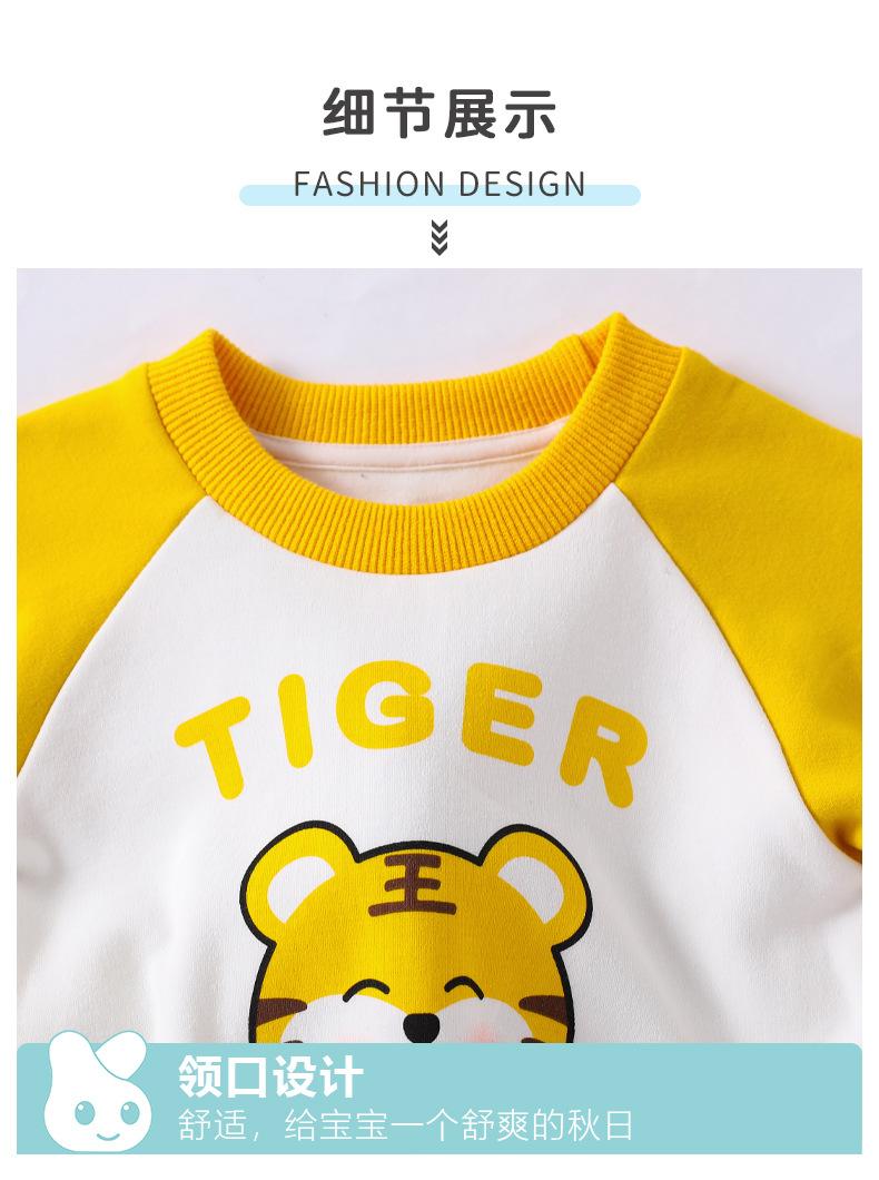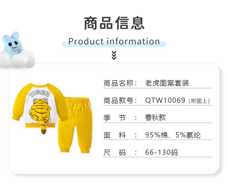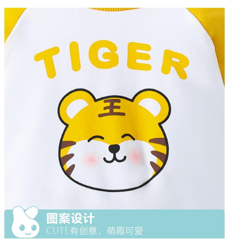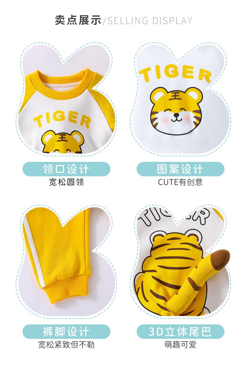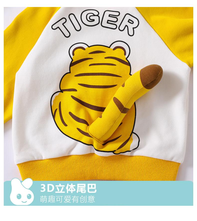 Traje nuevo de primavera para niños y niñas, lindo tigre gordo con cola tridimensional, amarillo, informal y cómodo para salir.