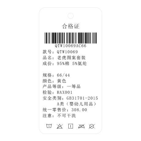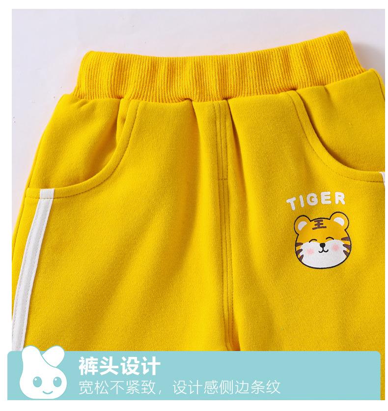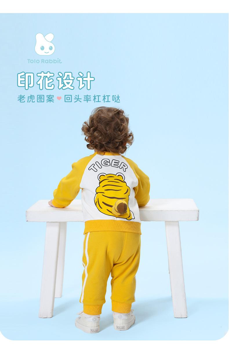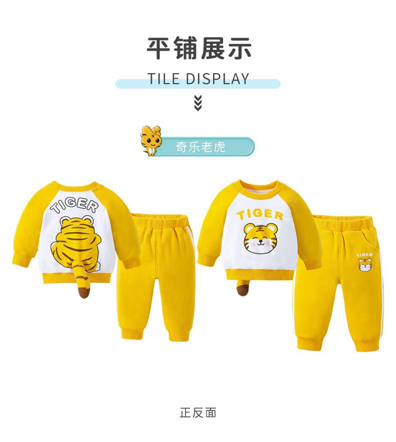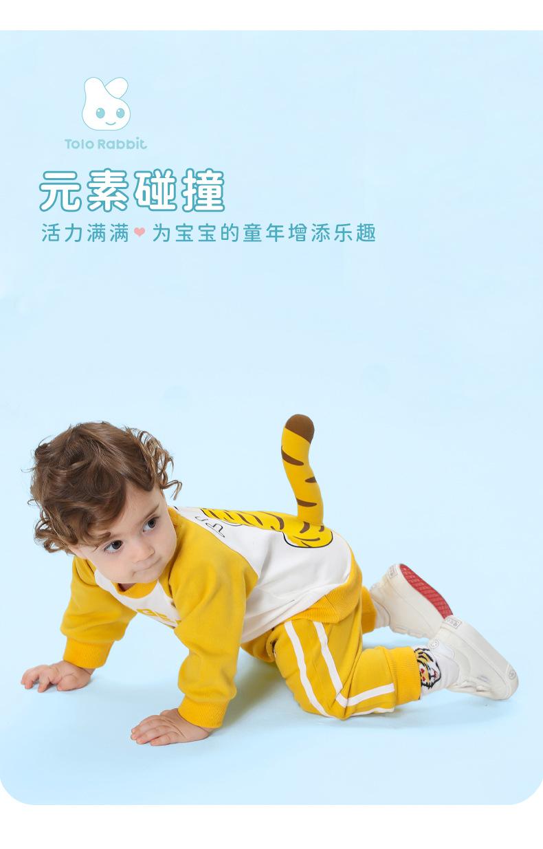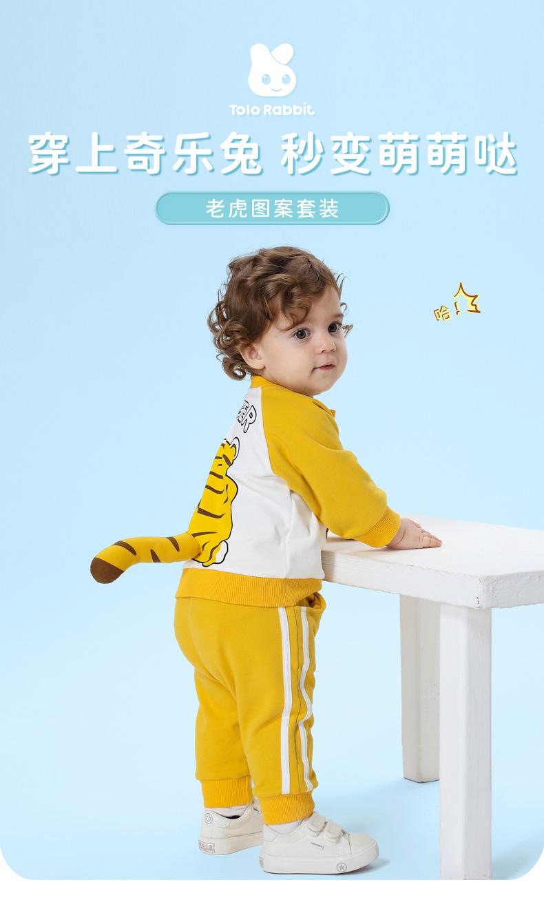 Traje nuevo de primavera para niños y niñas, lindo tigre gordo con cola tridimensional, amarillo, informal y cómodo para salir.
