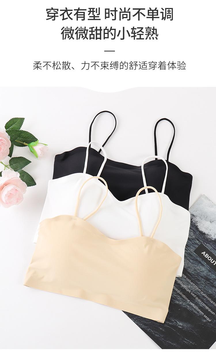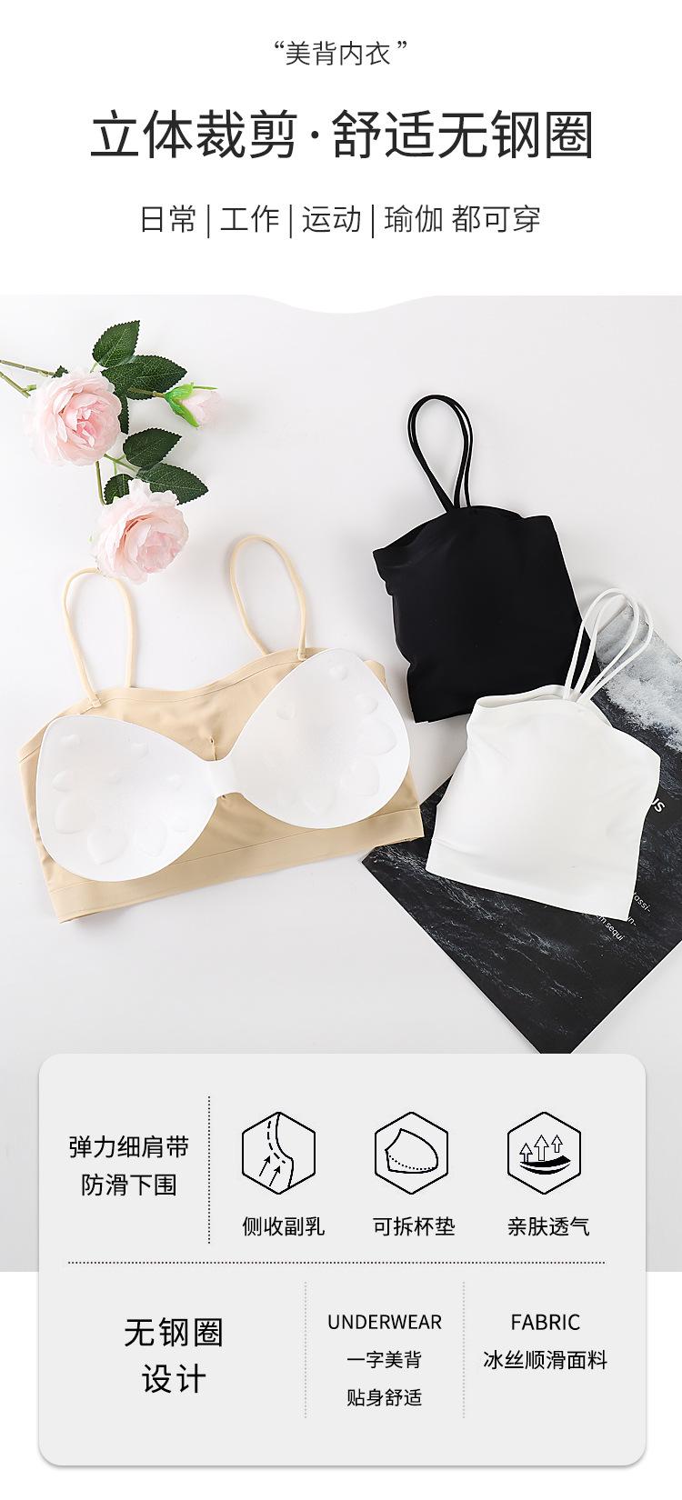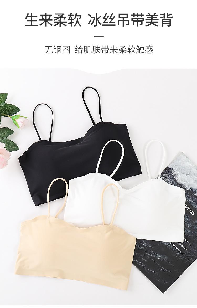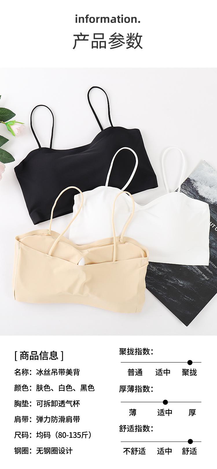 Top de tubo con tirantes en la espalda de seda de hielo sin costuras con almohadilla para el pecho, transpirable, cómodo y antiexposición, ropa interior exterior que envuelve el pecho para mujer