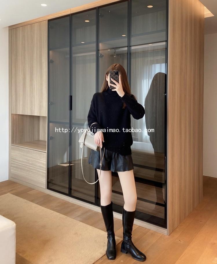 Muy a la moda otoño e invierno con falda corta y botas altas