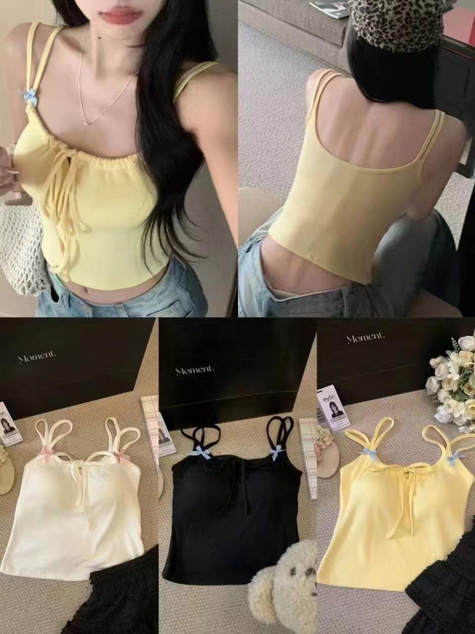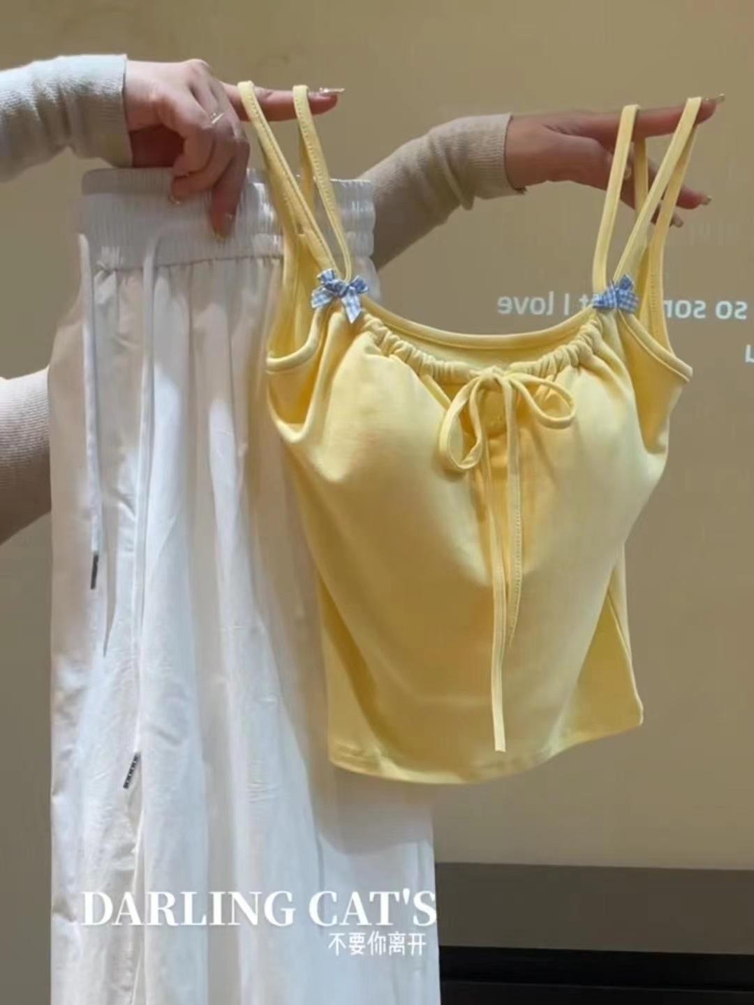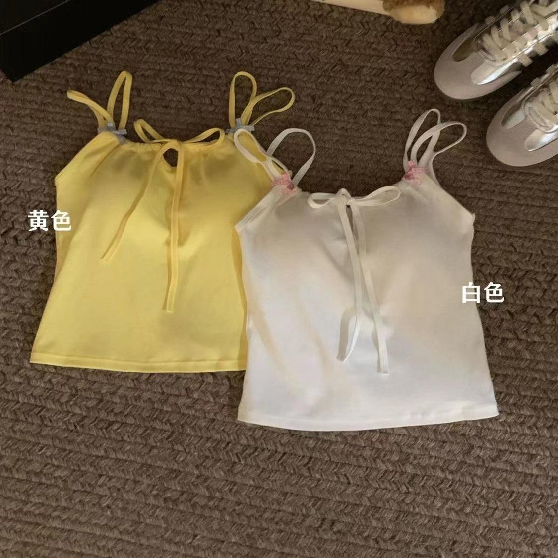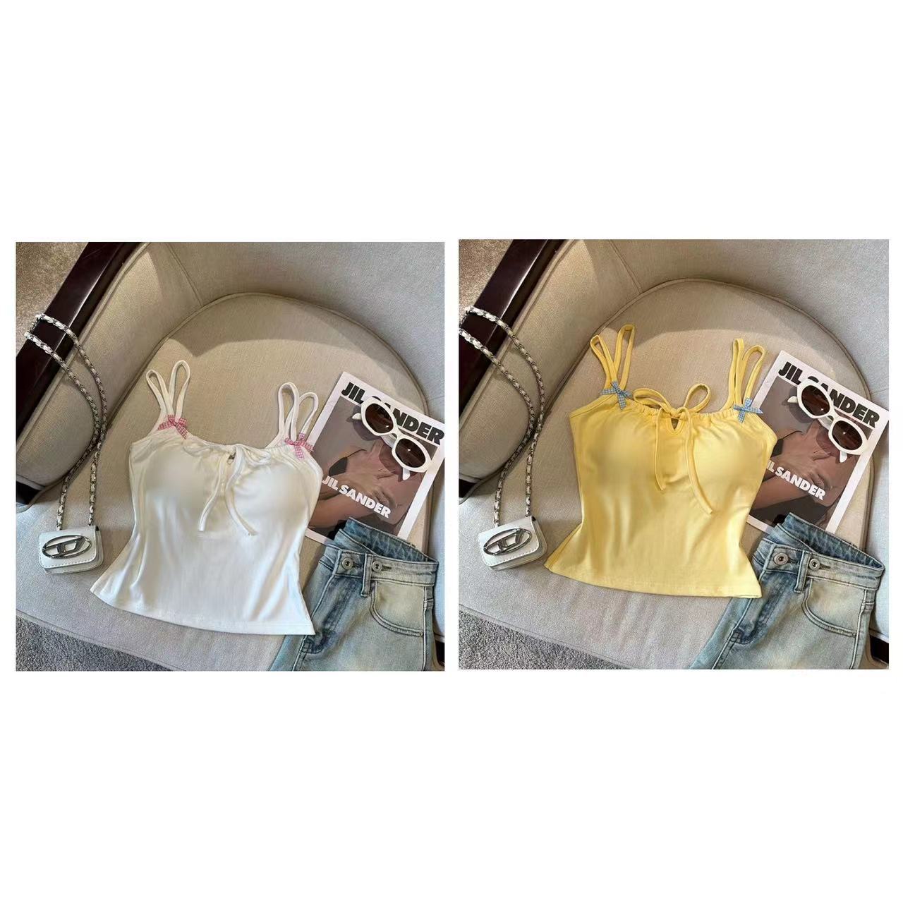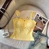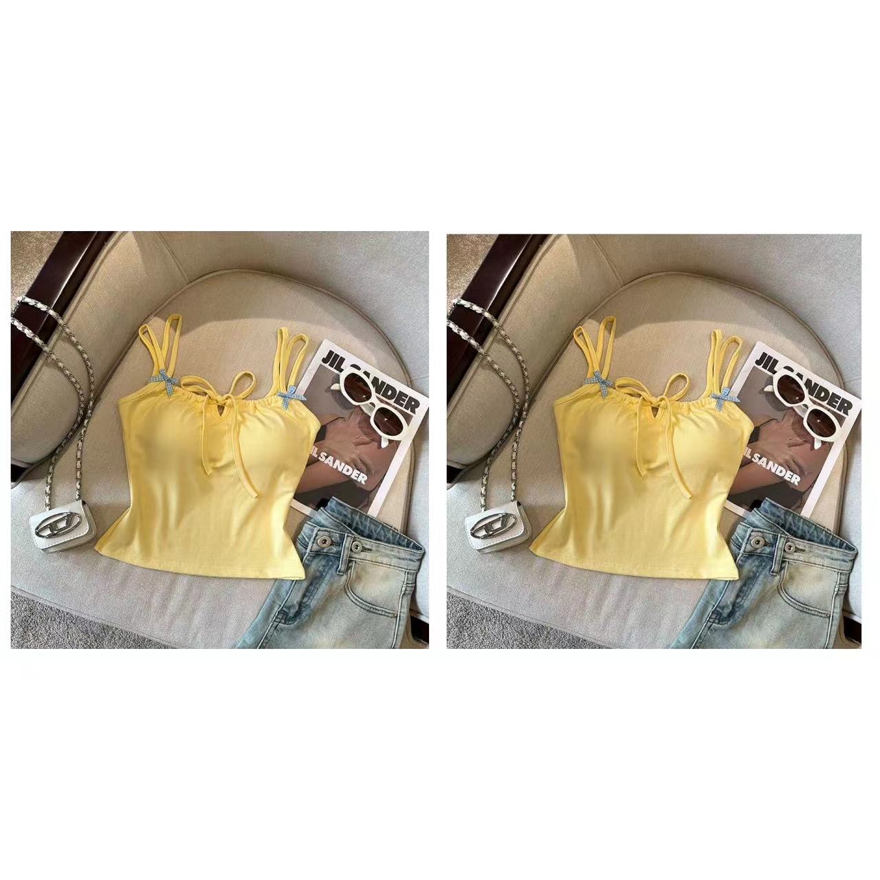 Lazo de Chica Caliente Estilo Americano con Camisola con Almohadilla en el Pecho Ropa Interior para Cubrir la Carne de Verano para Mujer Hermosa Espalda Top Amarillo Explosivo