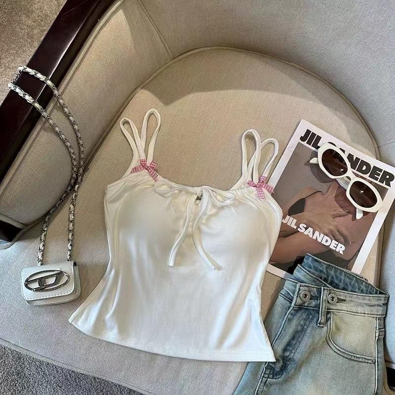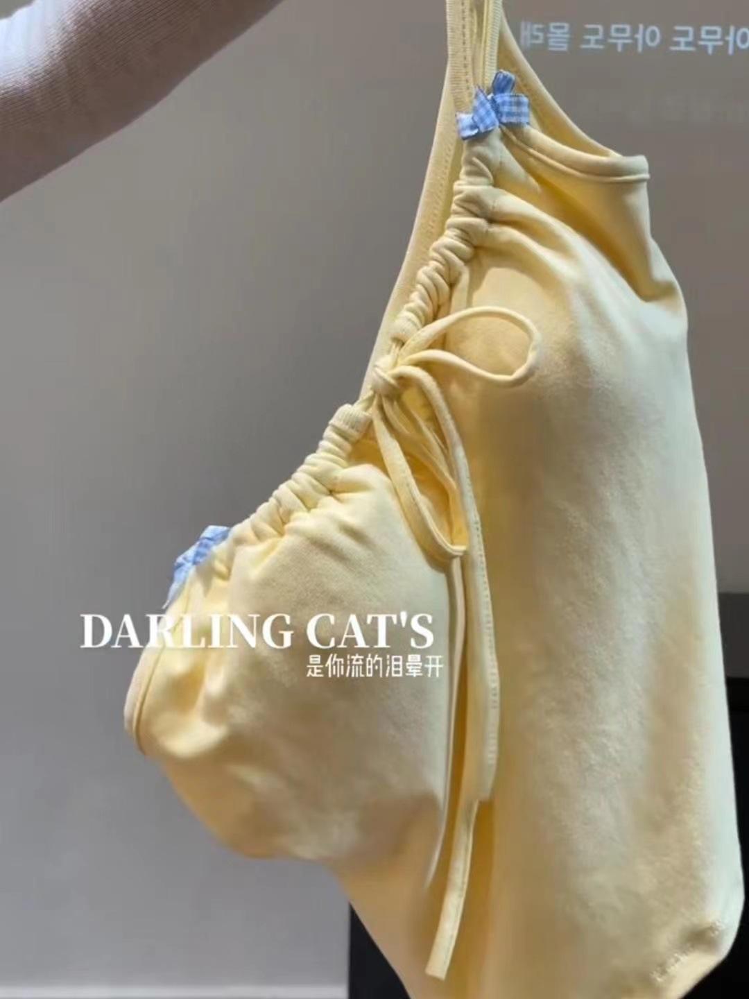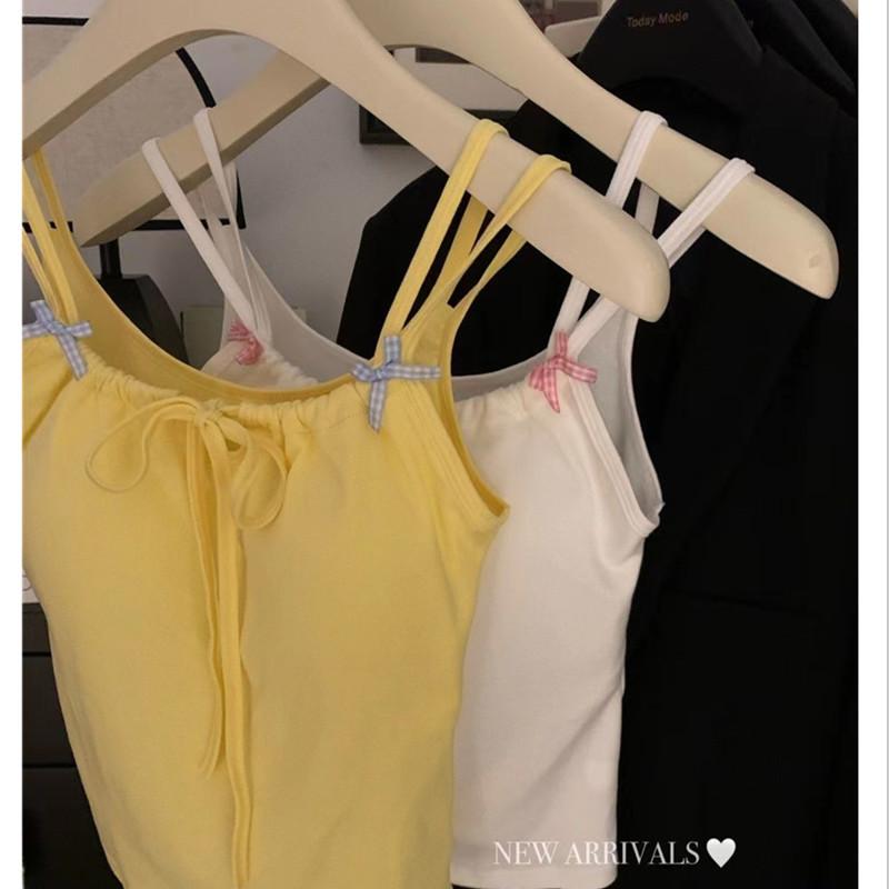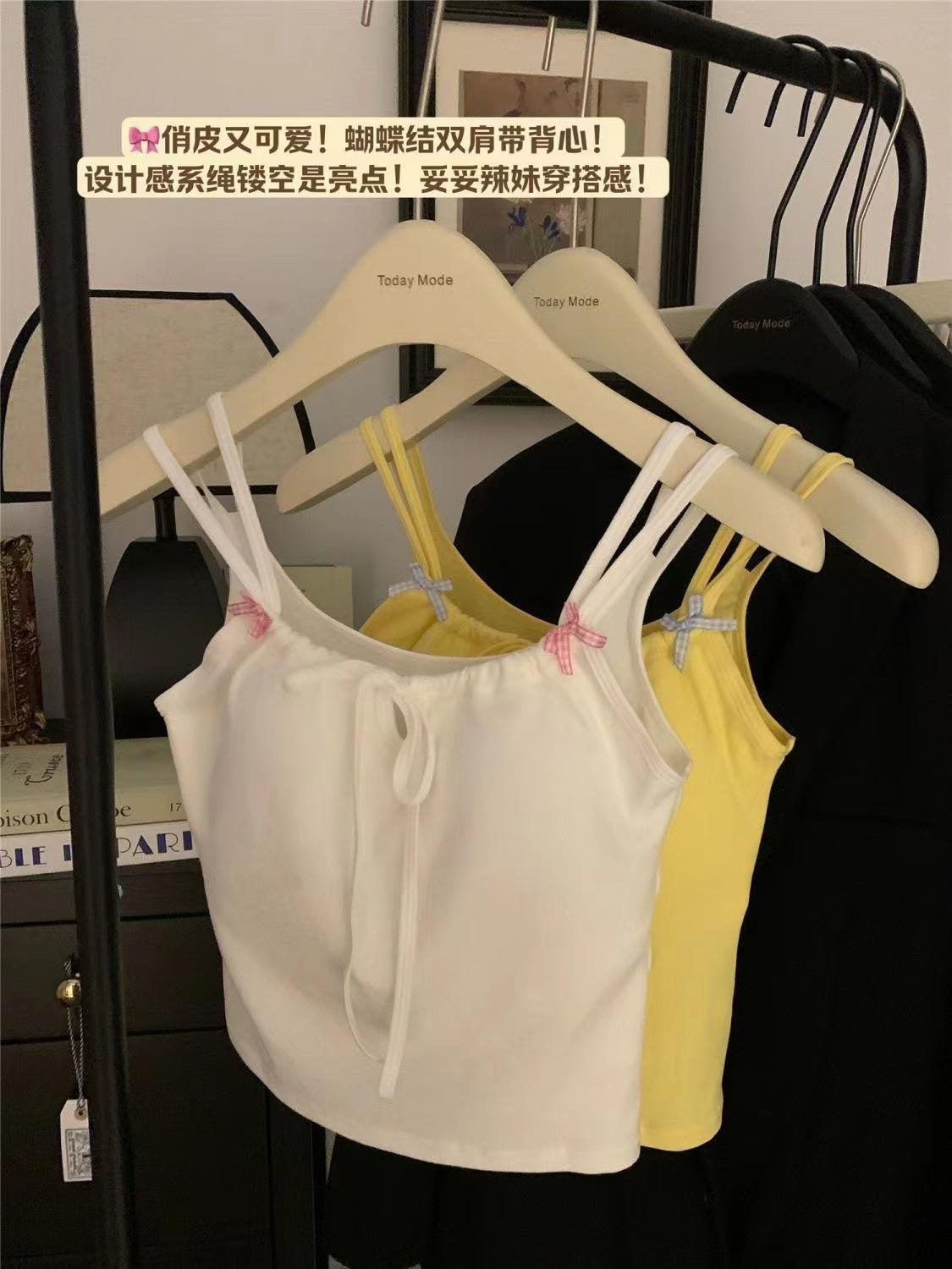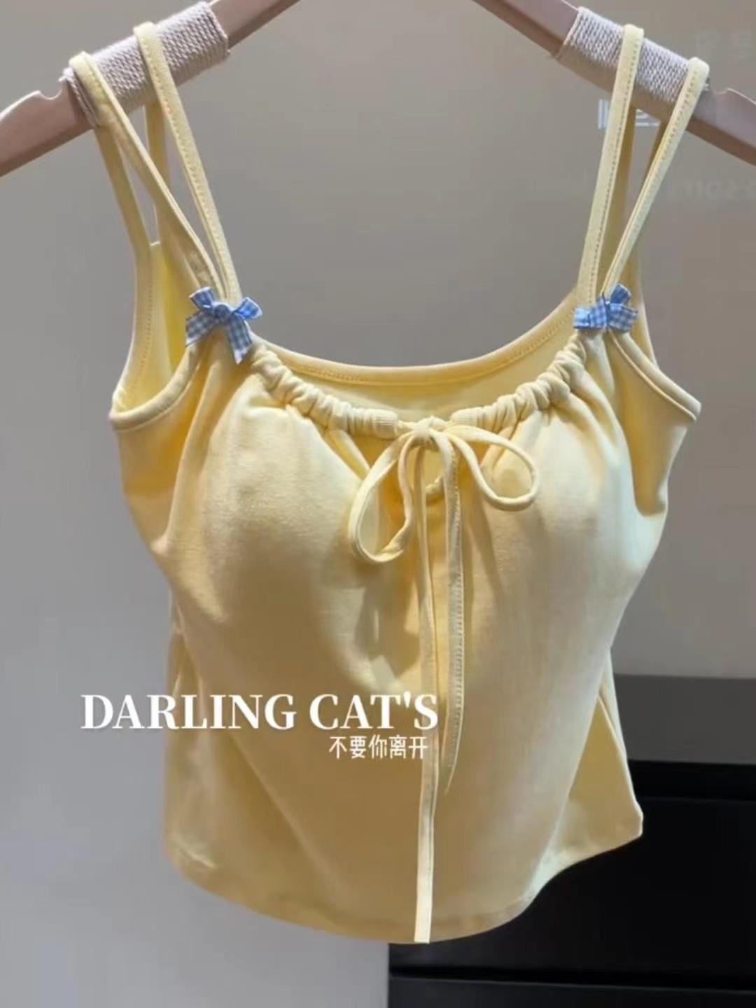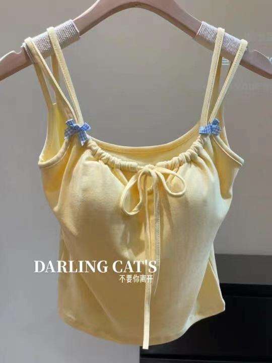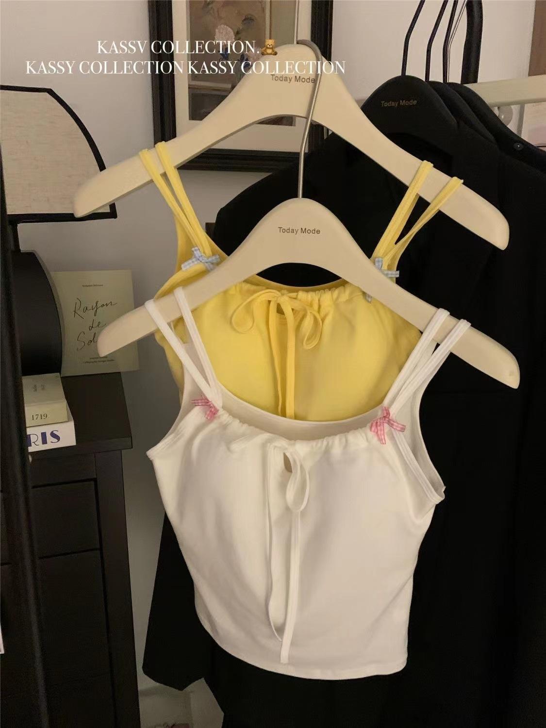 Lazo de Chica Caliente Estilo Americano con Camisola con Almohadilla en el Pecho Ropa Interior para Cubrir la Carne de Verano para Mujer Hermosa Espalda Top Amarillo Explosivo