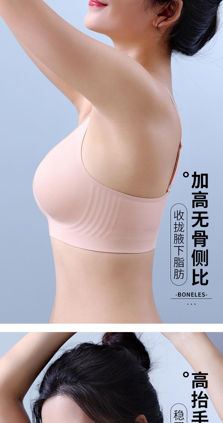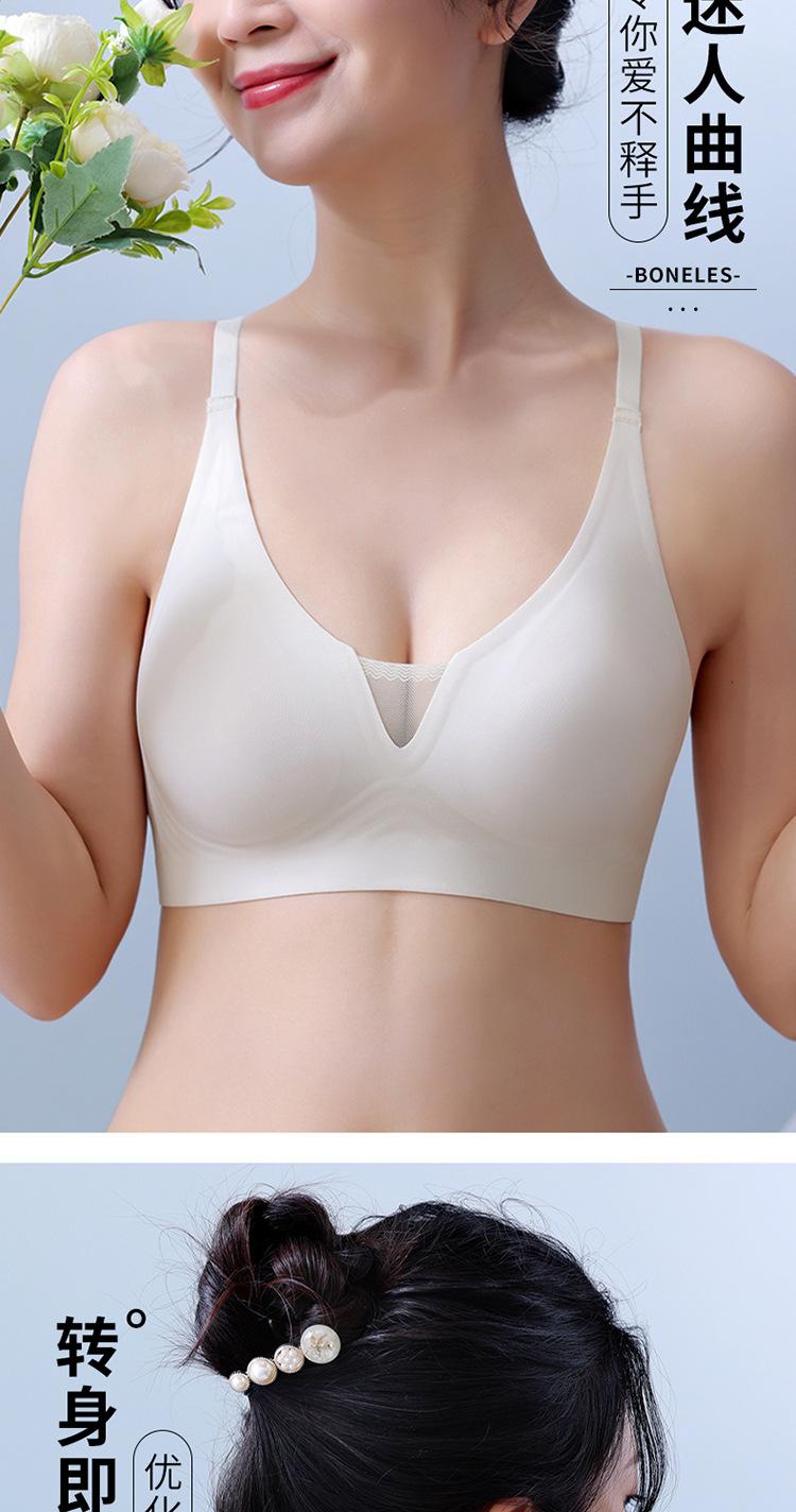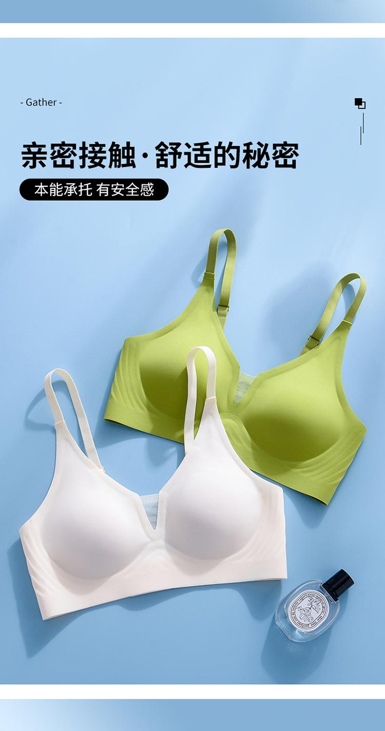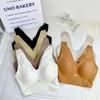 Sostén liso de jalea muscular con copa fija, soporte suave, encaje sexy, escote en V profundo, recogido, de dos filas, sin costuras, ropa interior, nuevo