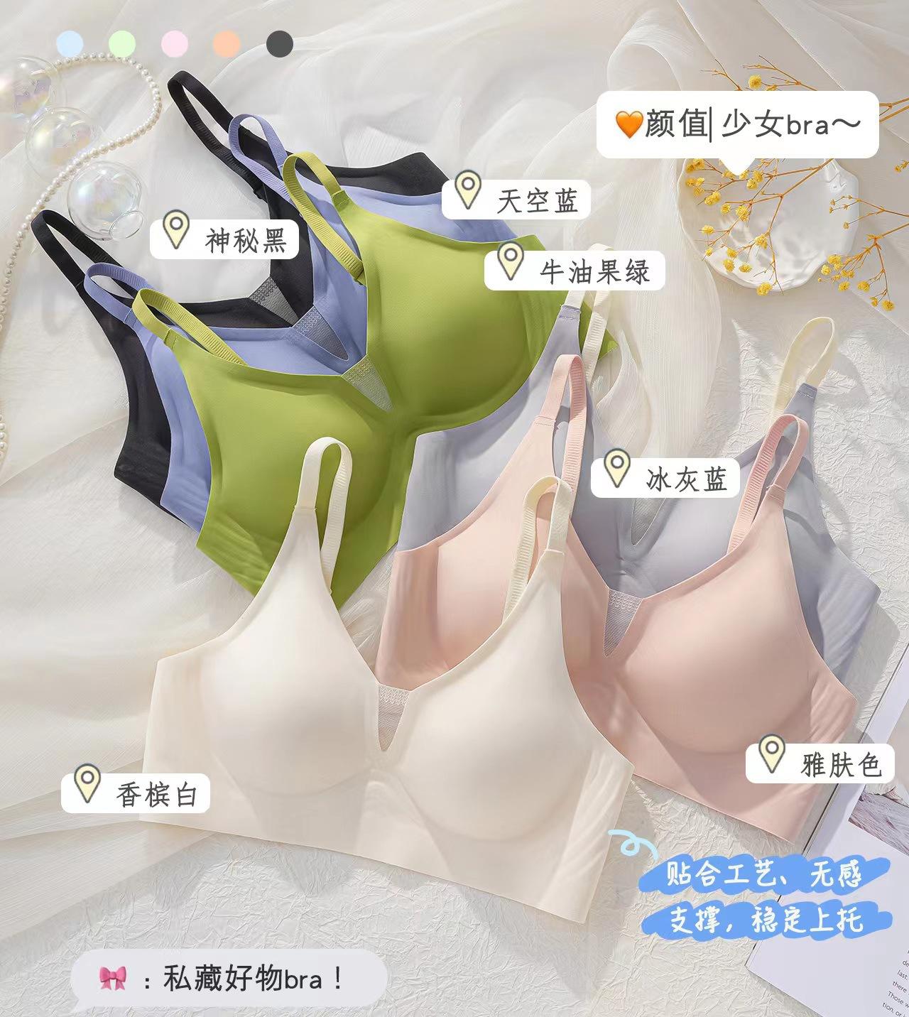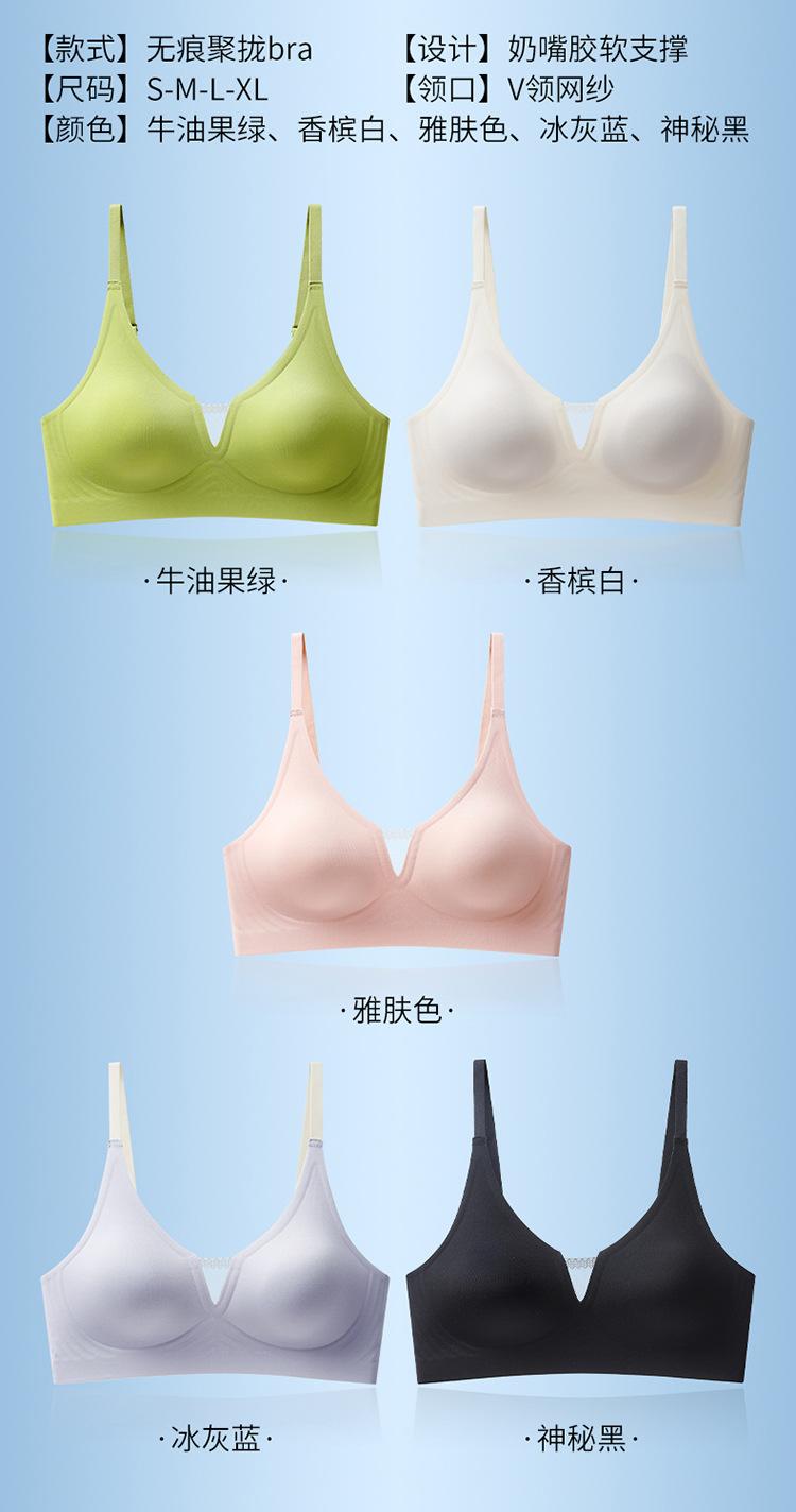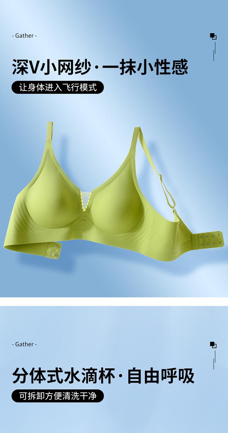 Sostén liso de jalea muscular con copa fija, soporte suave, encaje sexy, escote en V profundo, recogido, de dos filas, sin costuras, ropa interior, nuevo