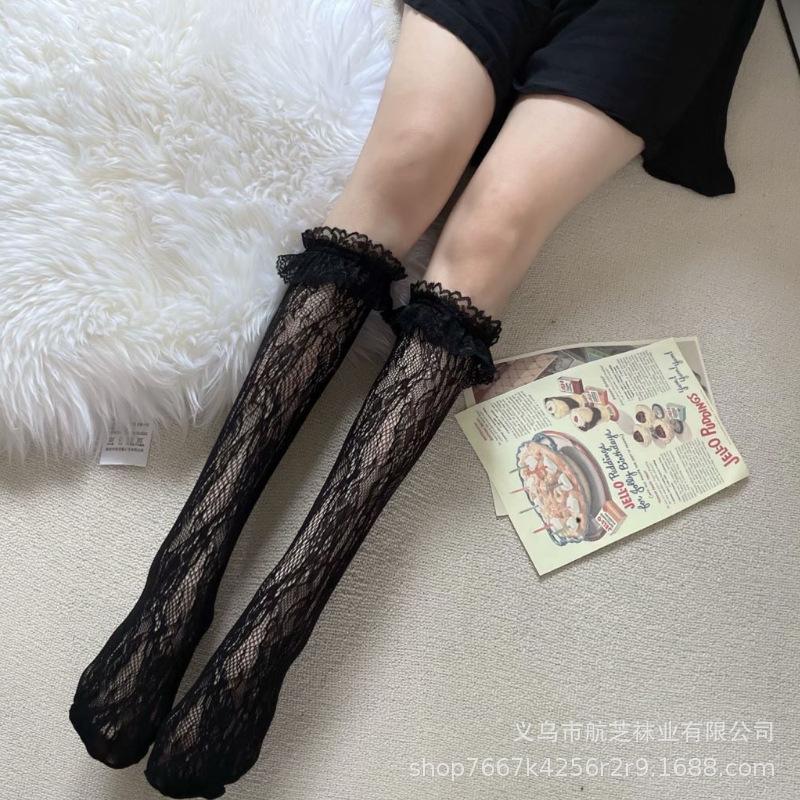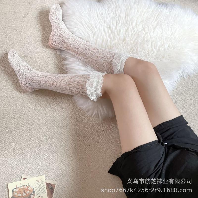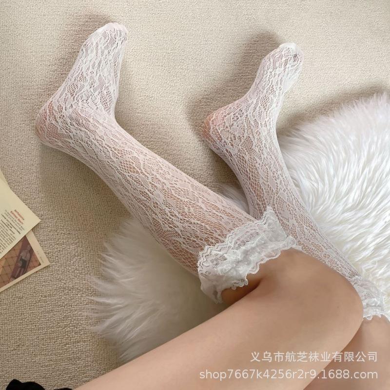 Calcetines de felpa blancos para mujer calcetines de encaje hasta la pantorrilla medias hasta media pierna calcetines Lolita calcetines de tubo medio Magnolia jk