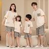 Pijamas de algodón de manga corta para padres e hijos, ropa de casa para parejas, de algodón, para verano, en vivo, para celebrar en línea, para niños, niñas, madre e hija.