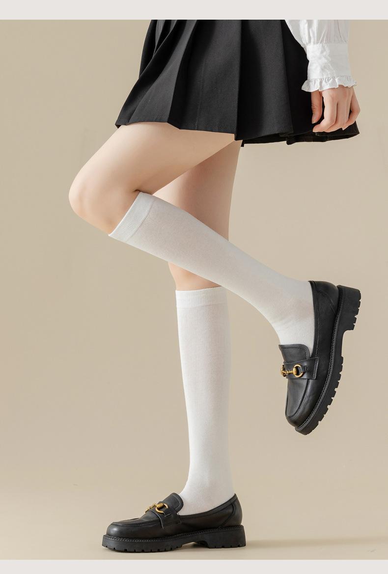 Calcetines para Mujer para las Cuatro Estaciones de Algodón Puro de Media Caña Largos Hasta la Rodilla Estilo Japonés JK Calcetines Cub Blancos y Negros de Presión Skinny Stylik
