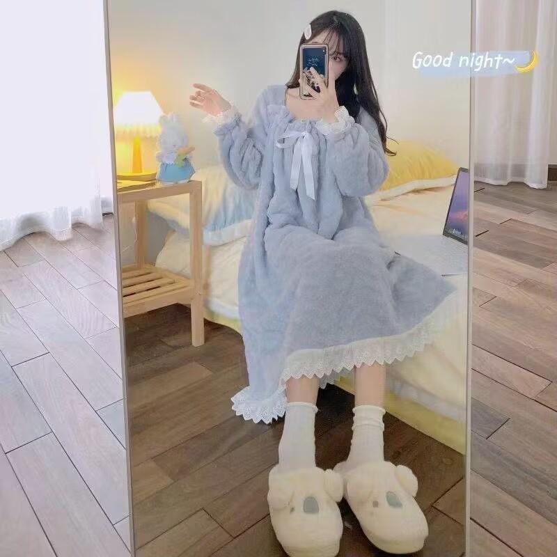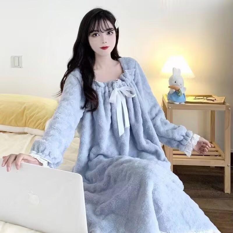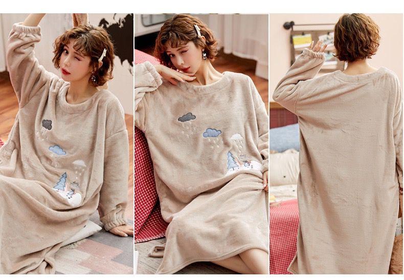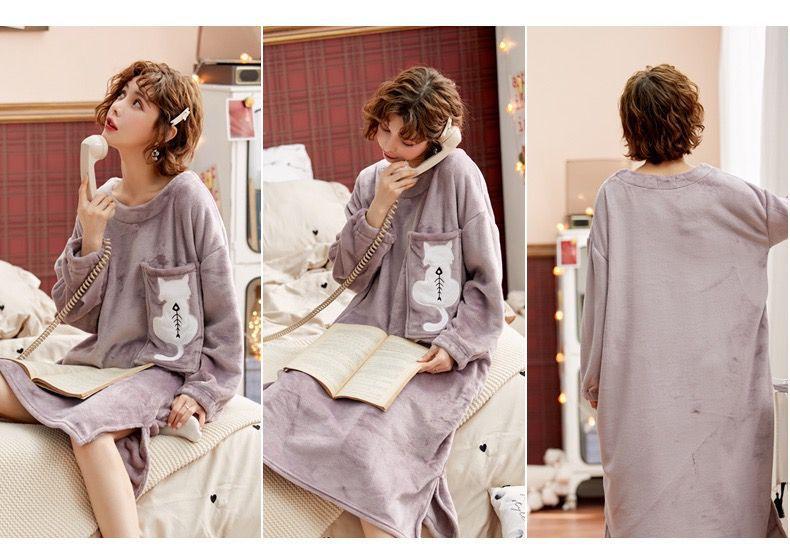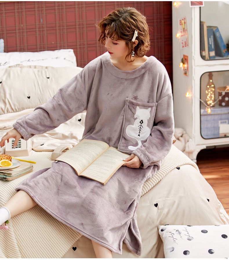 Camisón de forro polar coral para mujer, invierno, largo, pijama de forro polar coral, franela, forrado de forro polar, grueso, talla extra, vestido para estar en casa