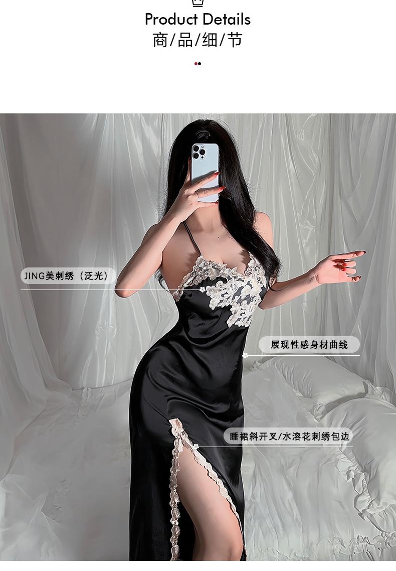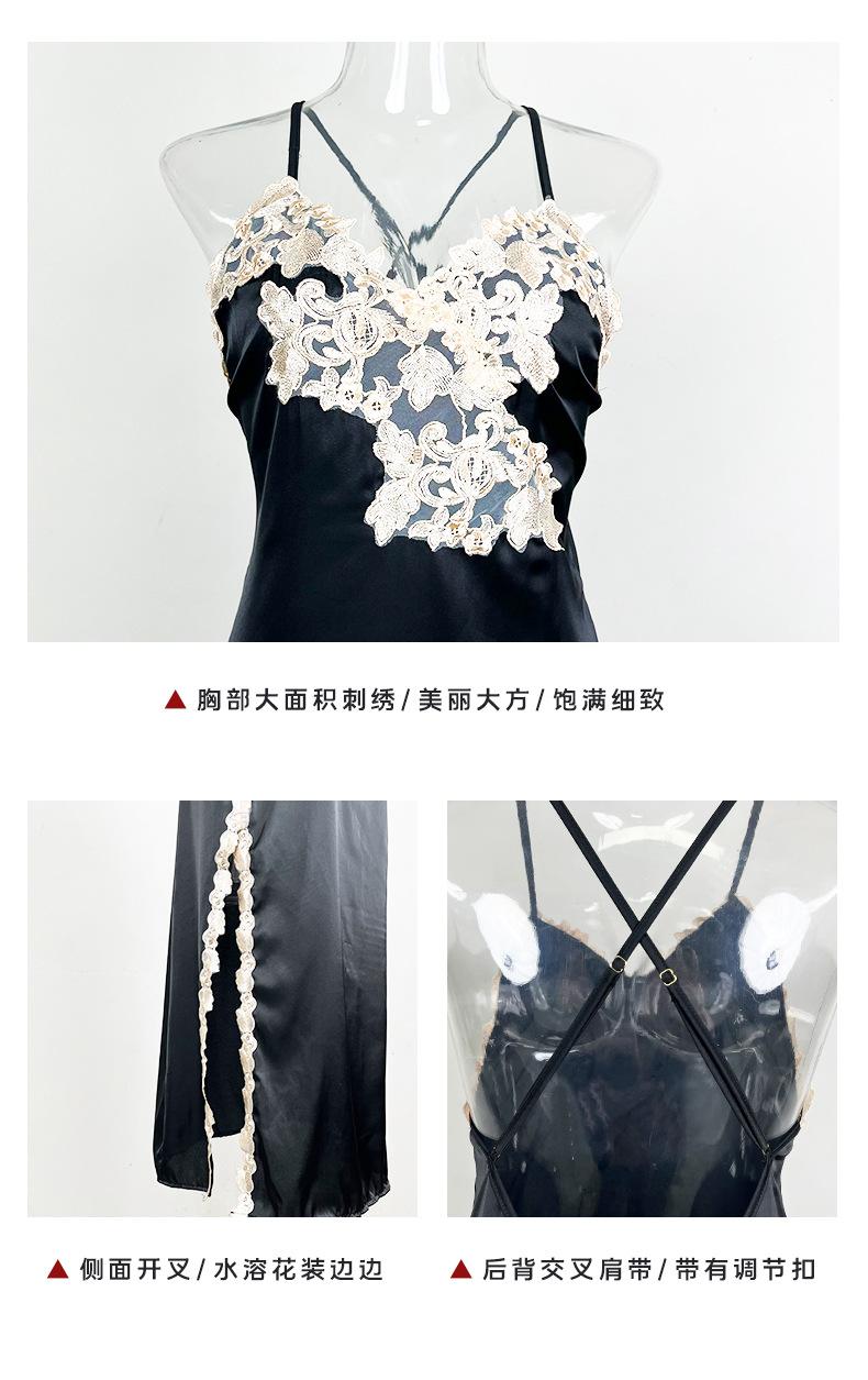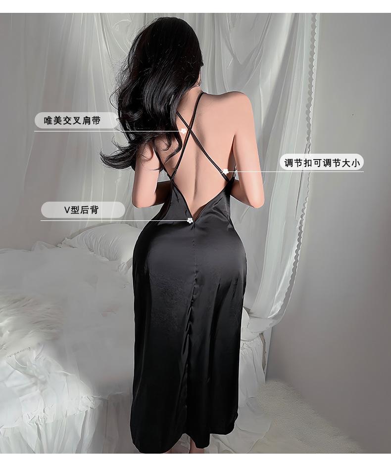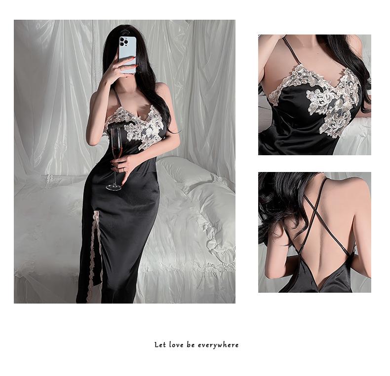 Camisón sin espalda, ropa interior sexy de satén soluble en agua, pijama bordado para mujer, falda dividida, ropa interior transparente para el hogar 629