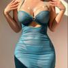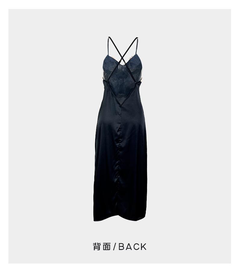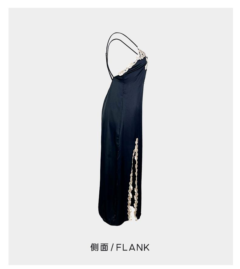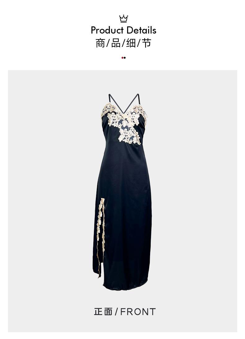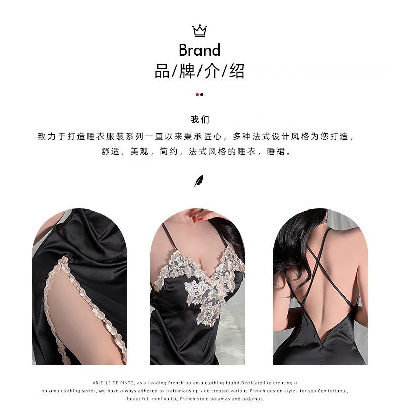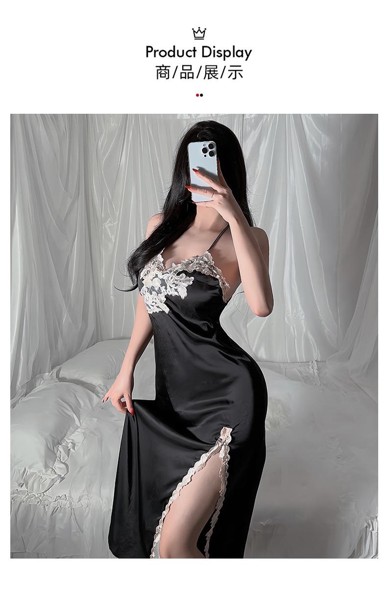 Camisón sin espalda, ropa interior sexy de satén soluble en agua, pijama bordado para mujer, falda dividida, ropa interior transparente para el hogar 629