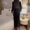 Pijama largo de terciopelo estilo francés cómodo de talla grande, camisón con tirantes y cordones, traje de ropa de casa para mujer 232